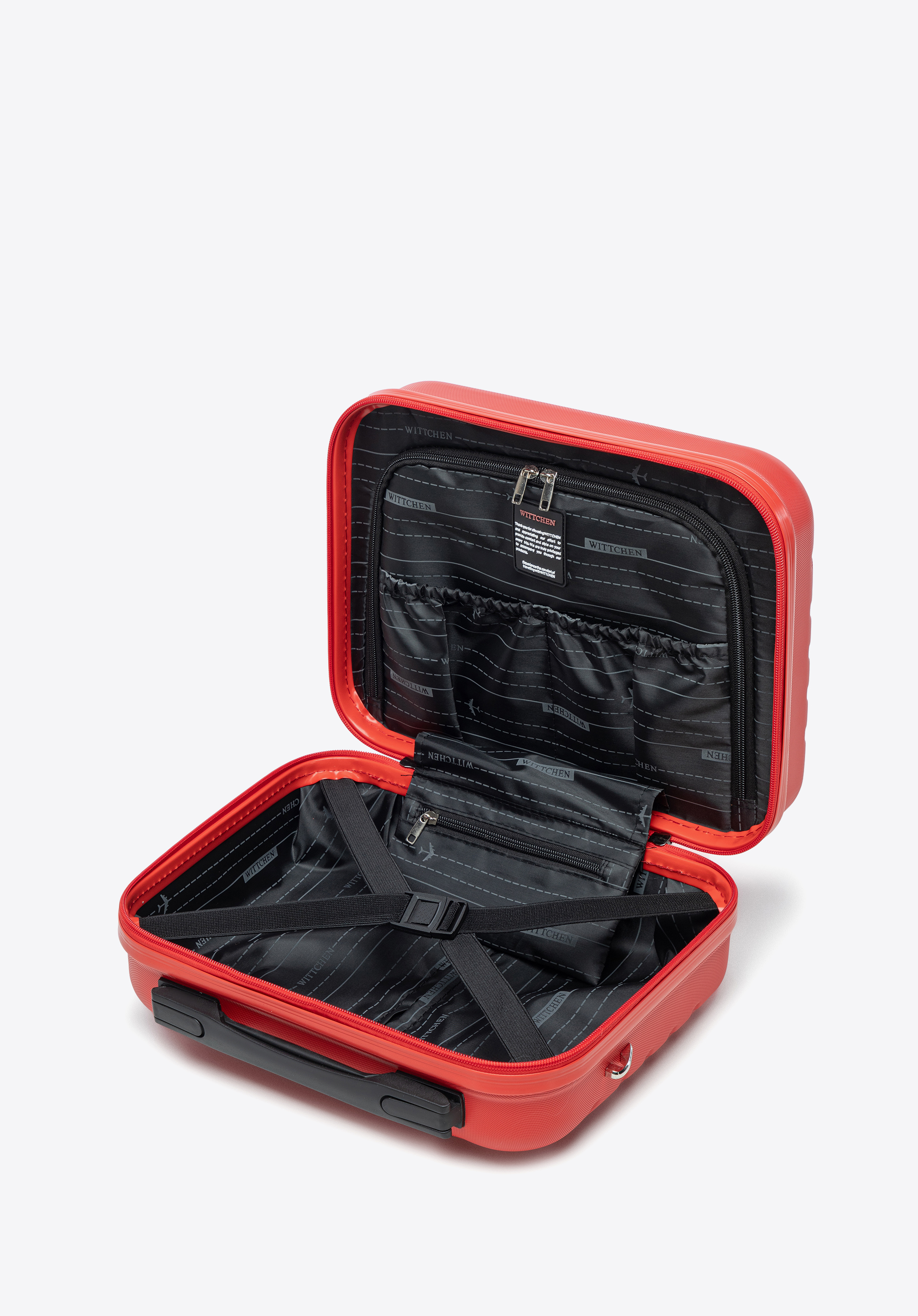 - Kozmetický kufrík: Má popruh na ruku, odnímateľný a nastaviteľný ramenný popruh a elastický popruh na pripevnenie k rukoväti kufra.