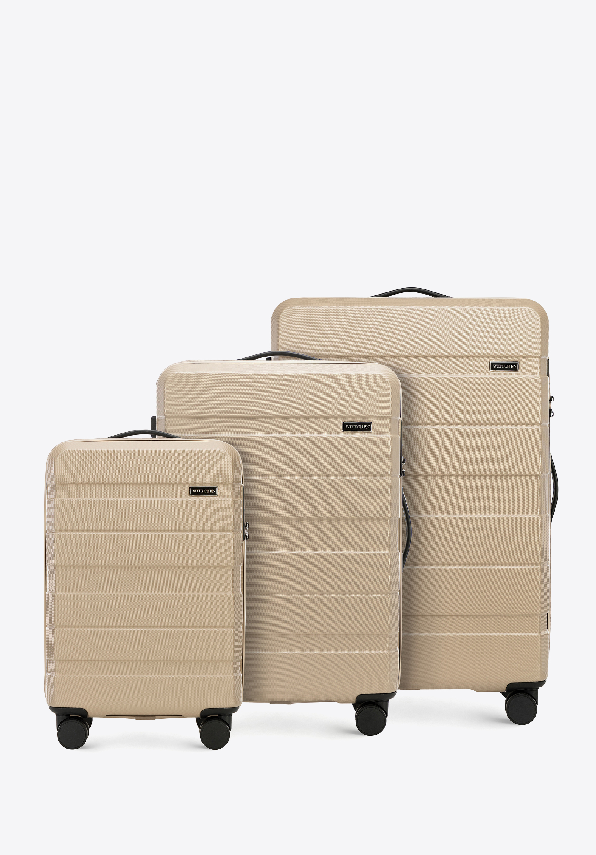 Batožinový set z ABS materiálu s horizontálnymi pruhmi Farba: béžová