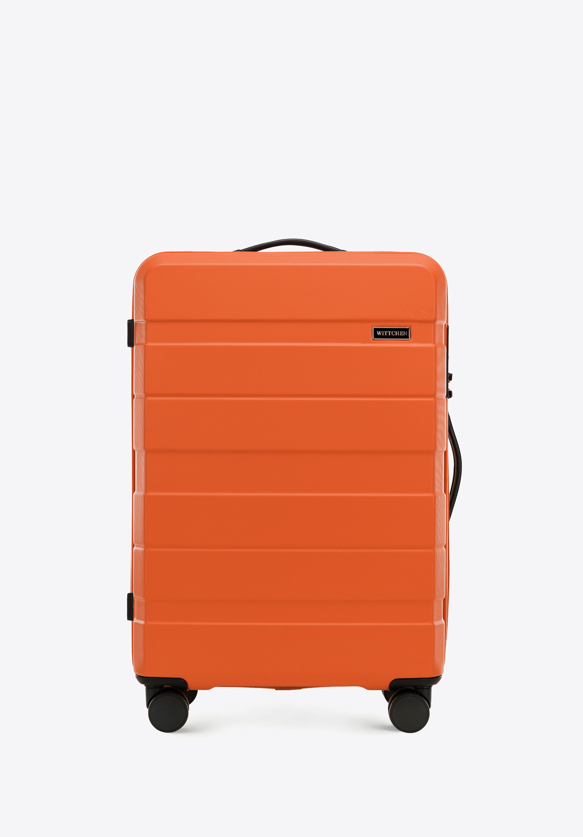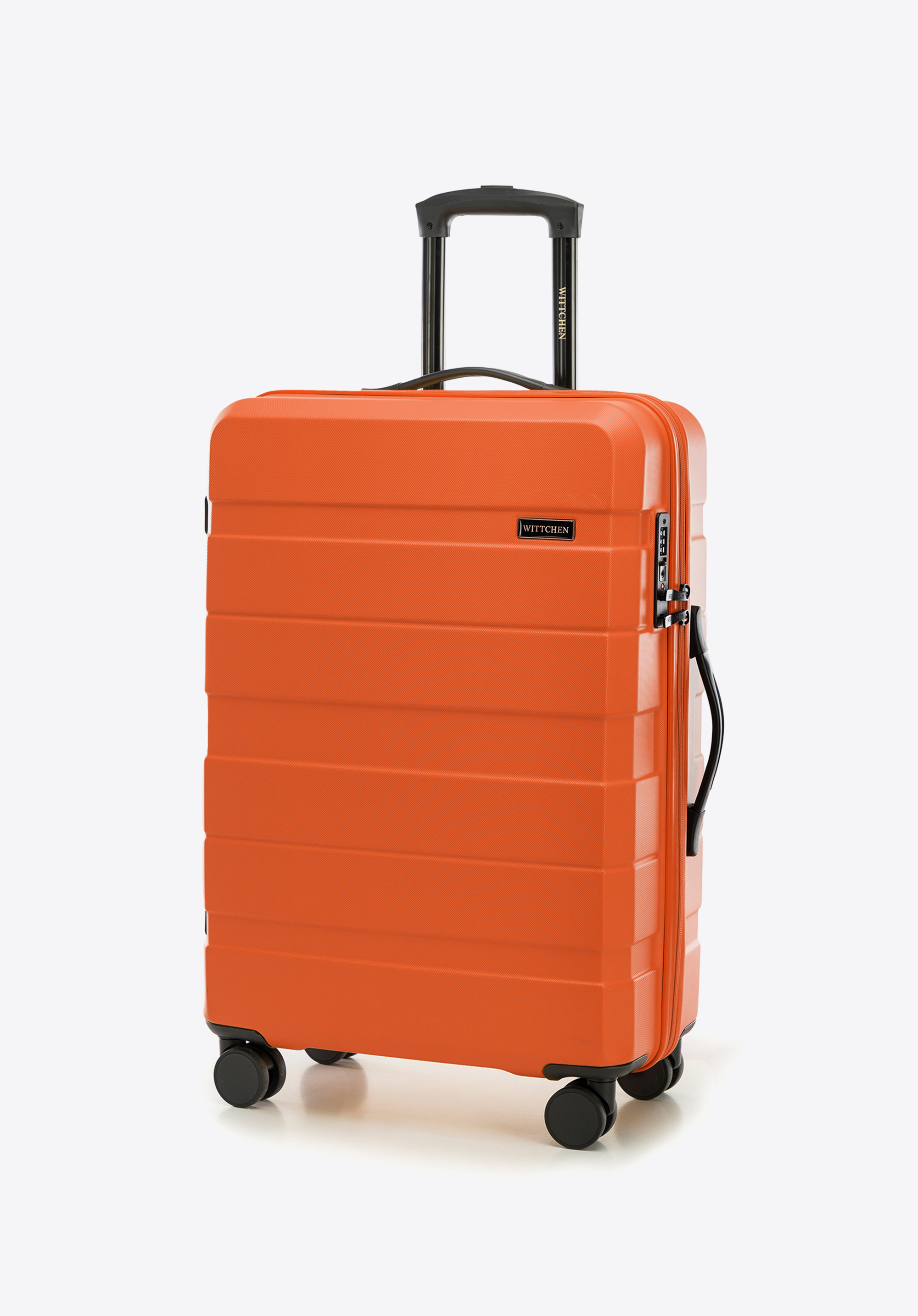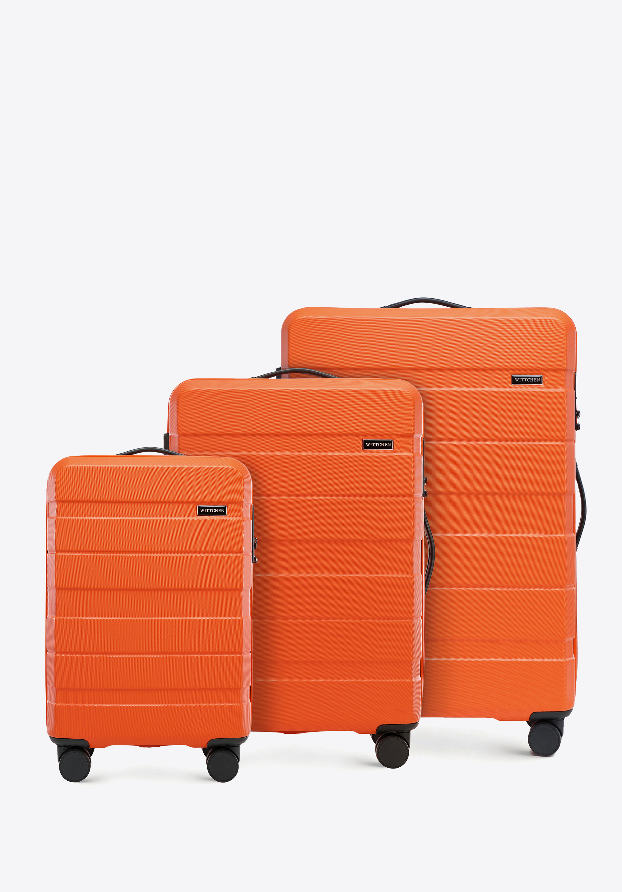 Batožinový set z ABS materiálu s horizontálnymi pruhmi Farba: oranžová