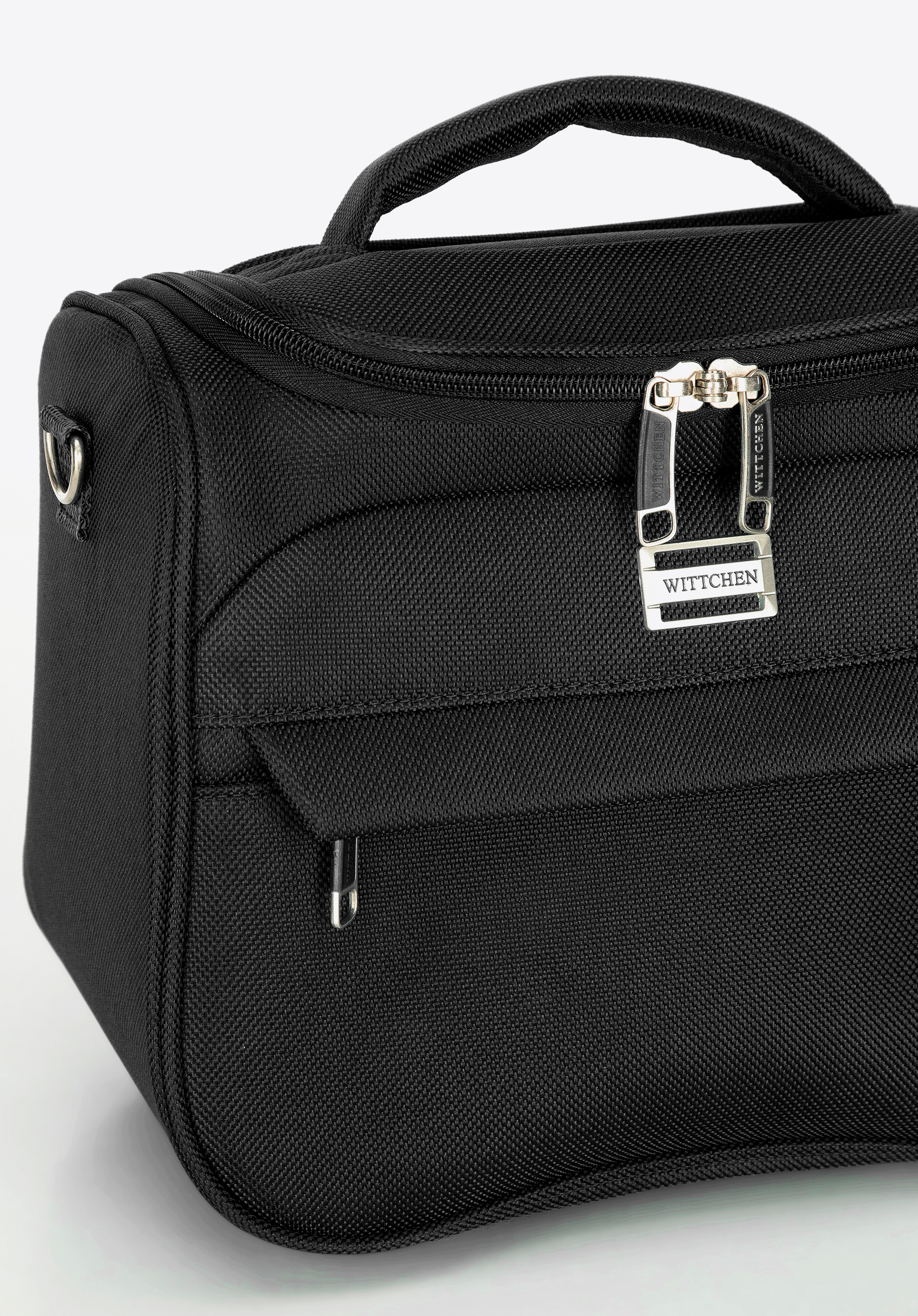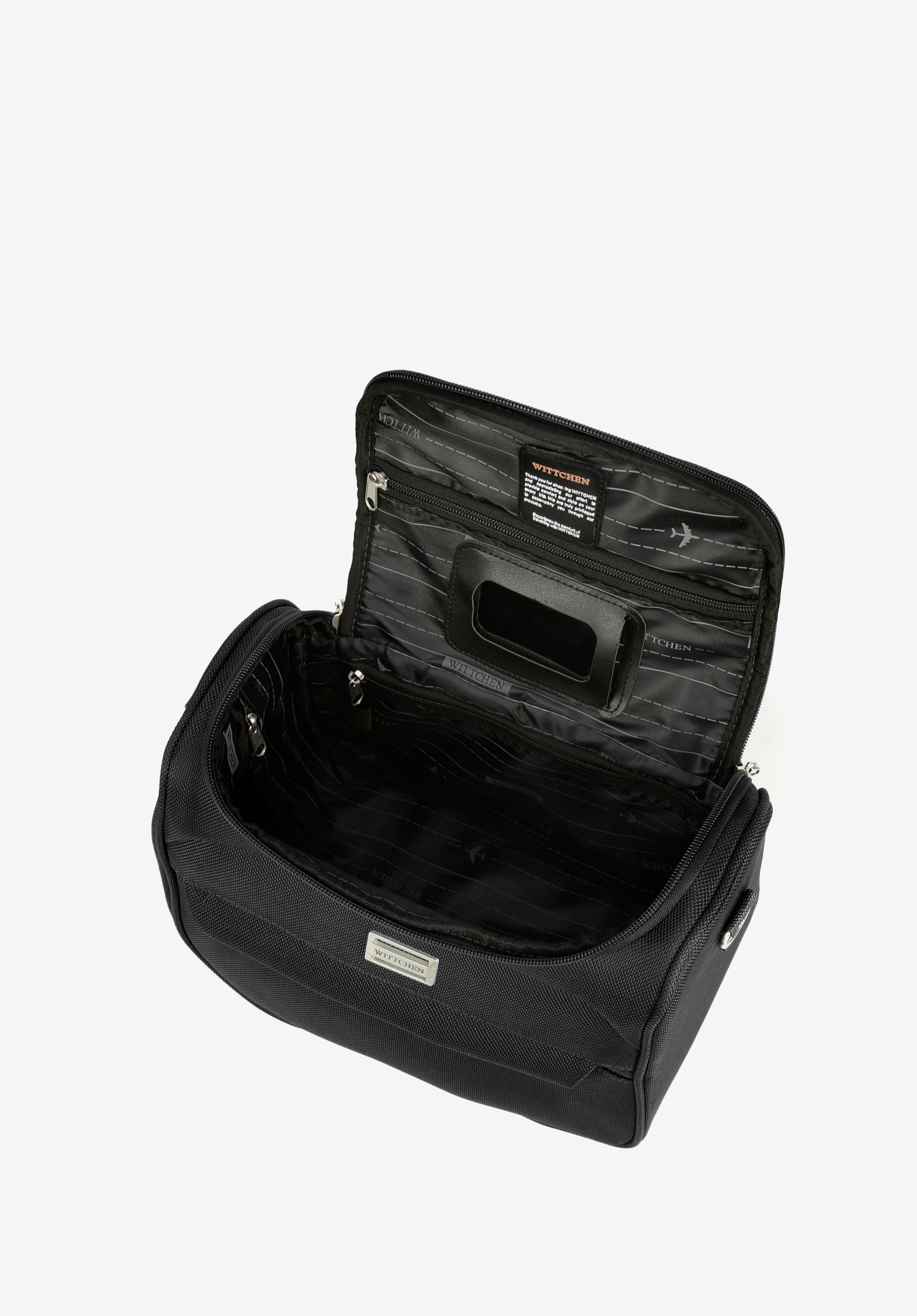 dve vrecká na zips, odnímateľné zrkadlo a veľa miesta na osobné veci. Tento model môžete kombinovať s kuframi z kolekcie, aby ste si zachovali elegantný vzhľad na každej ceste. Jednofarebná