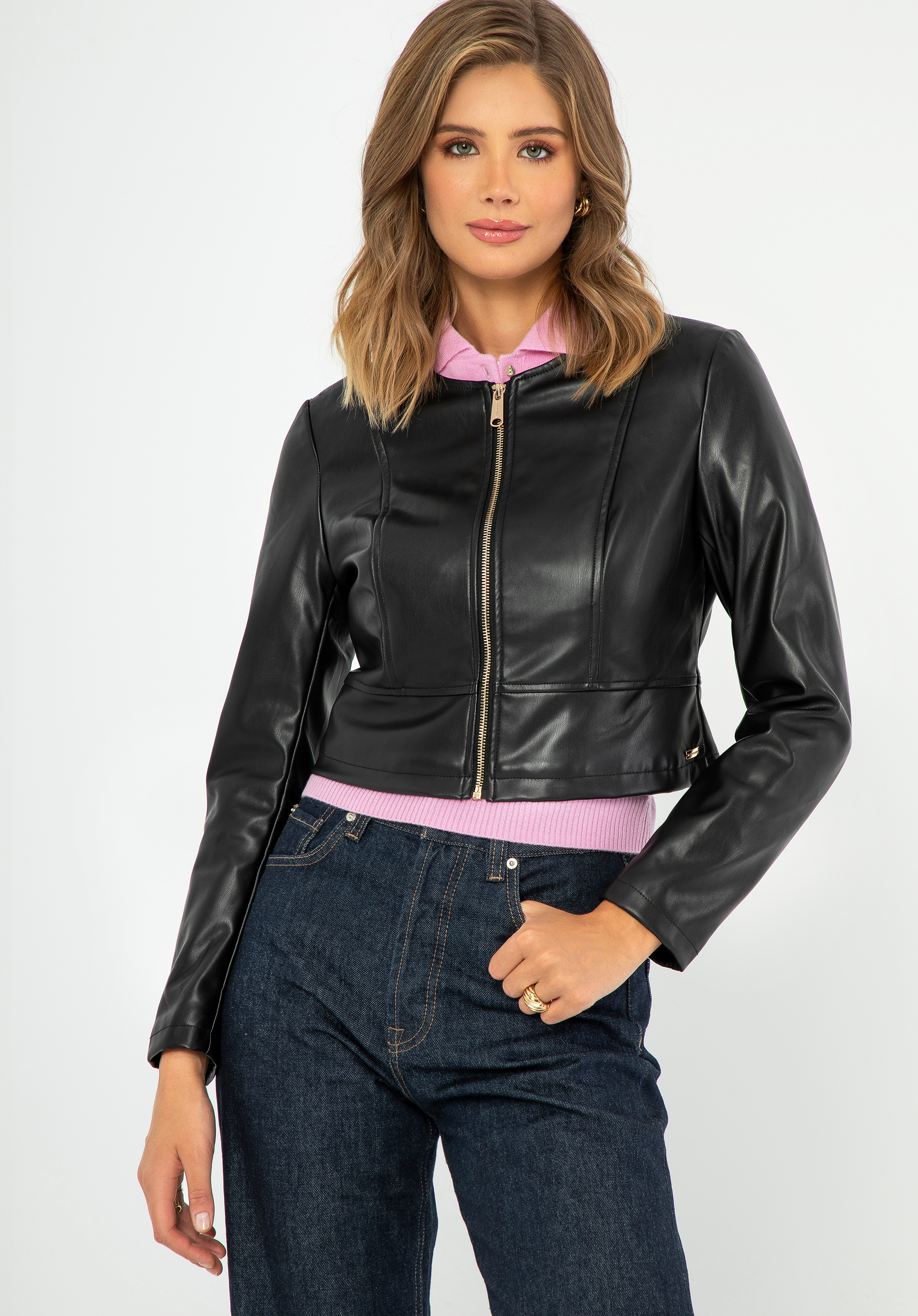 Objavte novú definíciu štýlu a pohodlia s touto dámskou bundou z ekologickej kože. Tento vrchný odev je dokonalou kombináciou klasiky a moderny, ktorá ľahko zapadne do každého šatníka. Či už idete na schôdzku, alebo sa prechádzate po meste, v tejto bunde budete vždy vyzerať štýlovo a cítiť sa pohodlne. Minimalistické prevedenie bez vreciek a diskrétne detaily poskytujú moderný nádych, a pritom zdôrazňujú jednoduchosť a eleganciu.