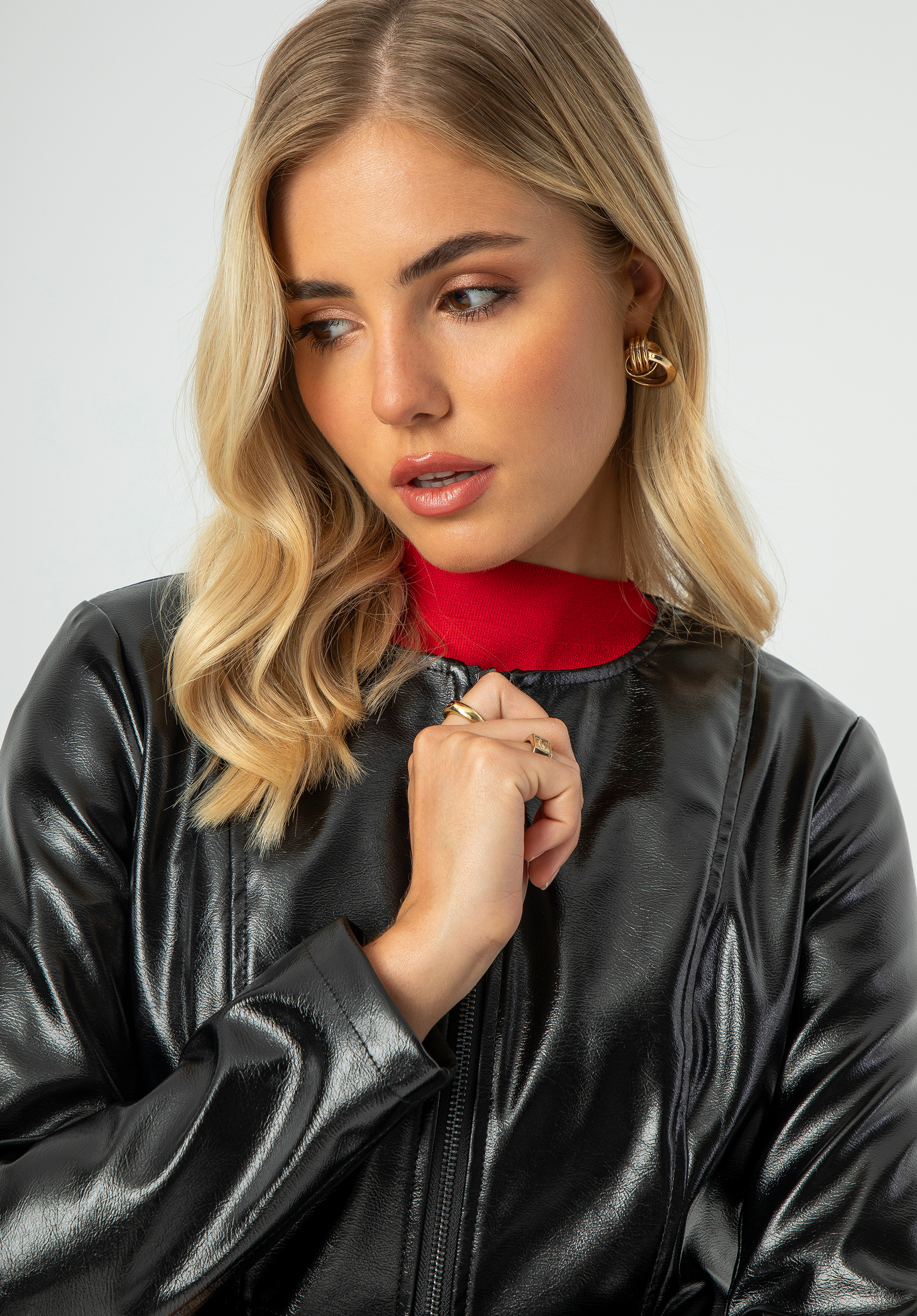 Objavte novú definíciu štýlu a pohodlia s touto dámskou bundou z ekologickej kože. Tento vrchný odev je dokonalou kombináciou klasiky a moderny, ktorá ľahko zapadne do každého šatníka. Či už idete na schôdzku, alebo sa prechádzate po meste, v tejto bunde budete vždy vyzerať štýlovo a cítiť sa pohodlne. Minimalistické prevedenie bez vreciek a diskrétne detaily poskytujú moderný nádych, a pritom zdôrazňujú jednoduchosť a eleganciu.