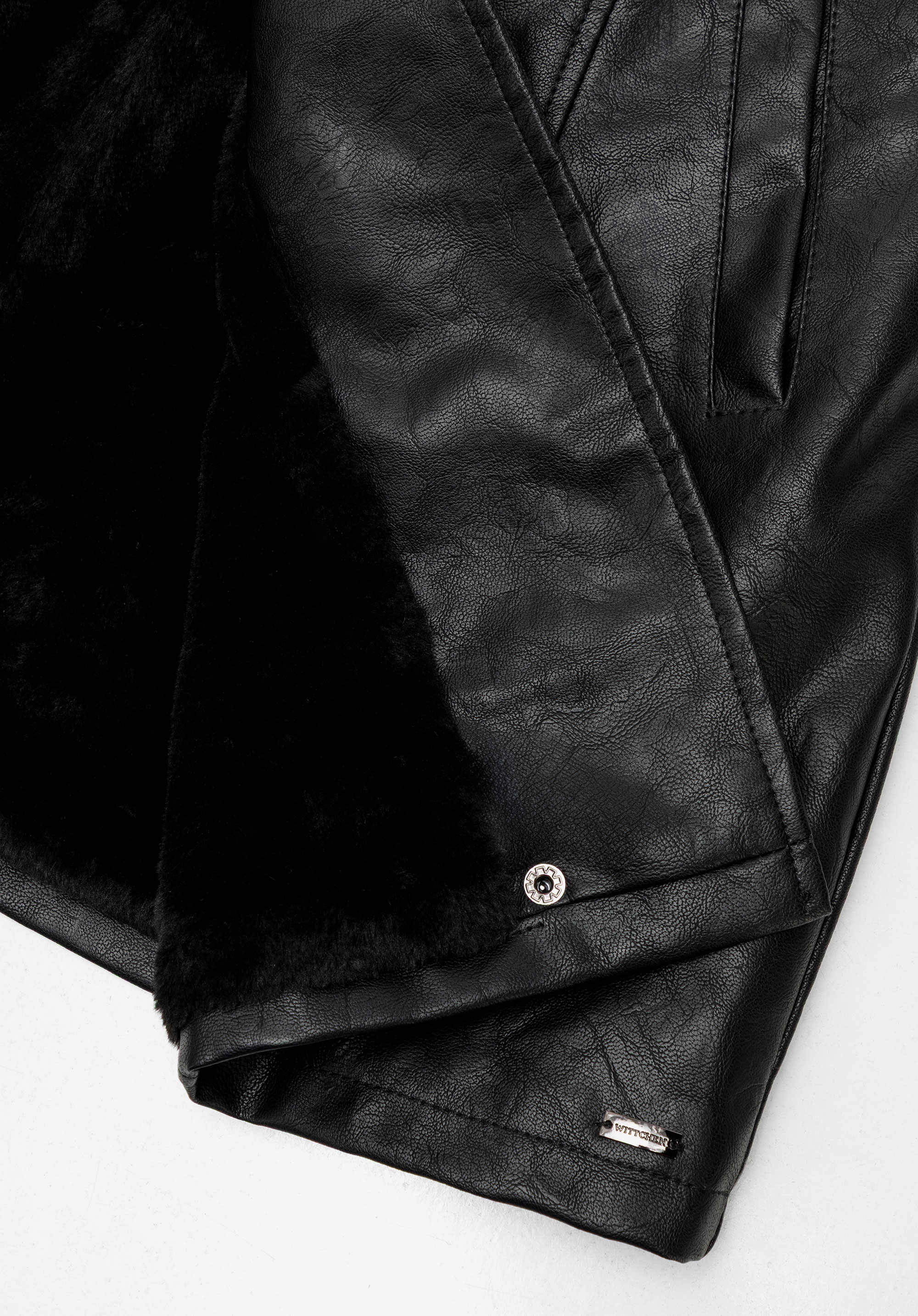 Táto dámska bunda z umelej kože s mäkkou umelou kožušinou je dokonalou zmesou nadčasovej elegancie a praktickosti. Úzky strih a pás krásne zvýrazňujú ženskú siluetu a dodávajú jej nádych ľahkosti a moderného charakteru. Jemné šitie na rukávoch dodáva jemnú textúru a osobitý štýl. Šikmé vrecká nielen skvele vyzerajú, ale sú aj praktické – ideálne na uloženie drobností alebo rýchle zohriatie rúk. Ďalšie vnútorné zapínanie na patentné gombíky pozdĺž zipsu zaisťuje lepšie prispôsobenie a spoľahlivú ochranu pred chladom.
