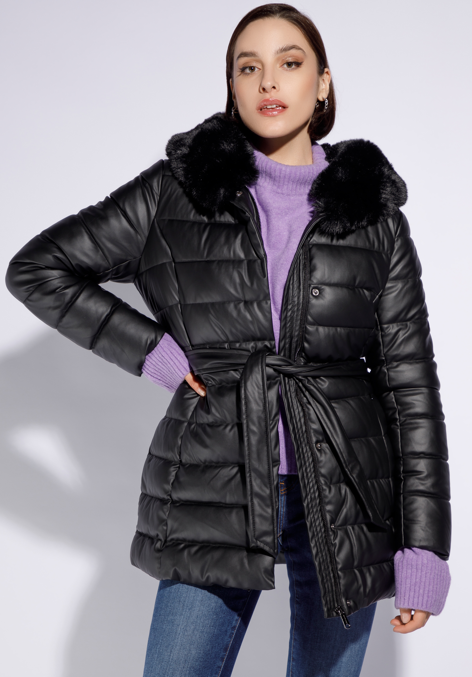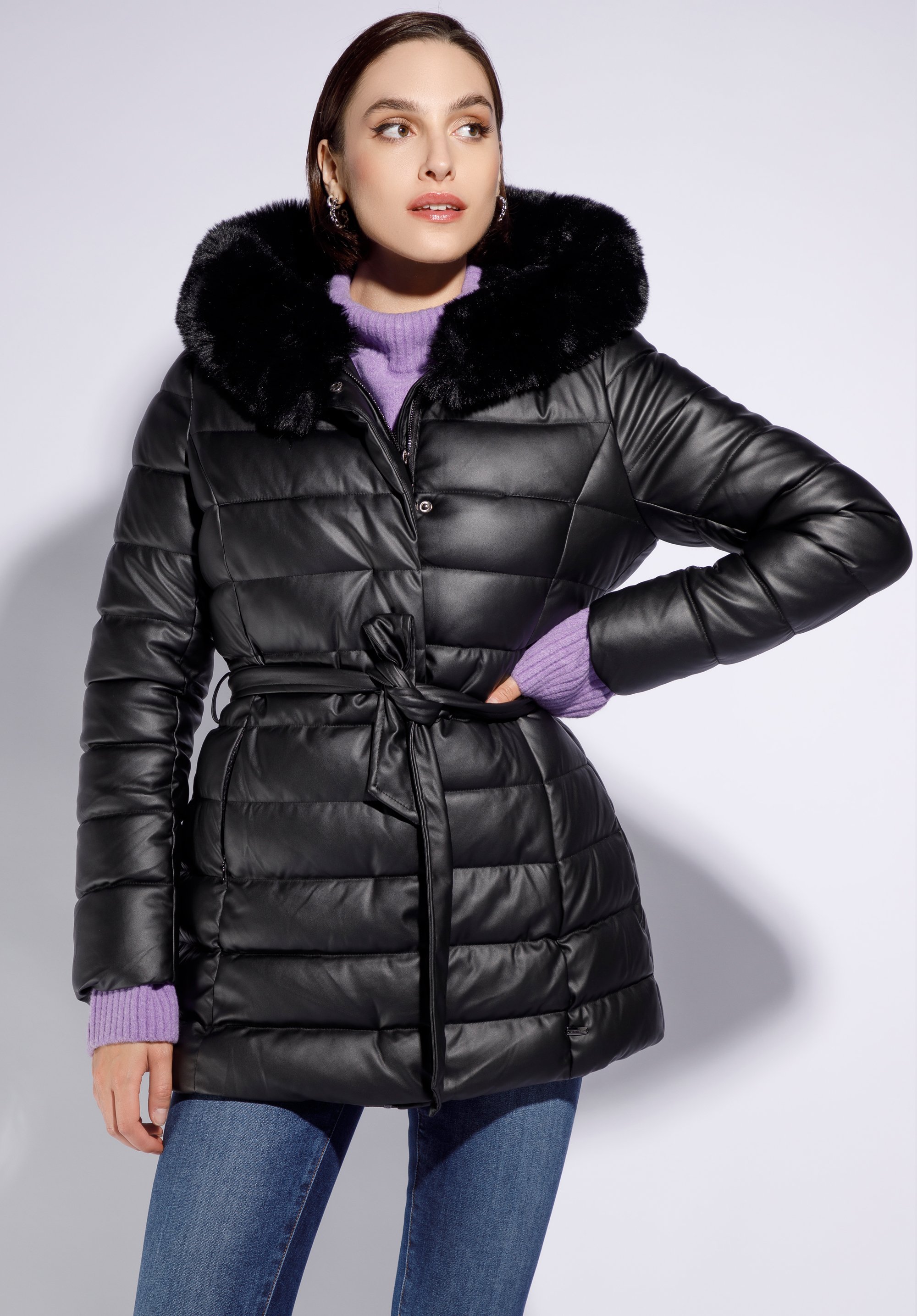 dámska bunda v prešívanej ekokože s opaskom je skvelou voľbou na každý zimný deň. Hodí sa k šatám aj nohaviciam – budete vyzerať výnimočne v každom oblečení!