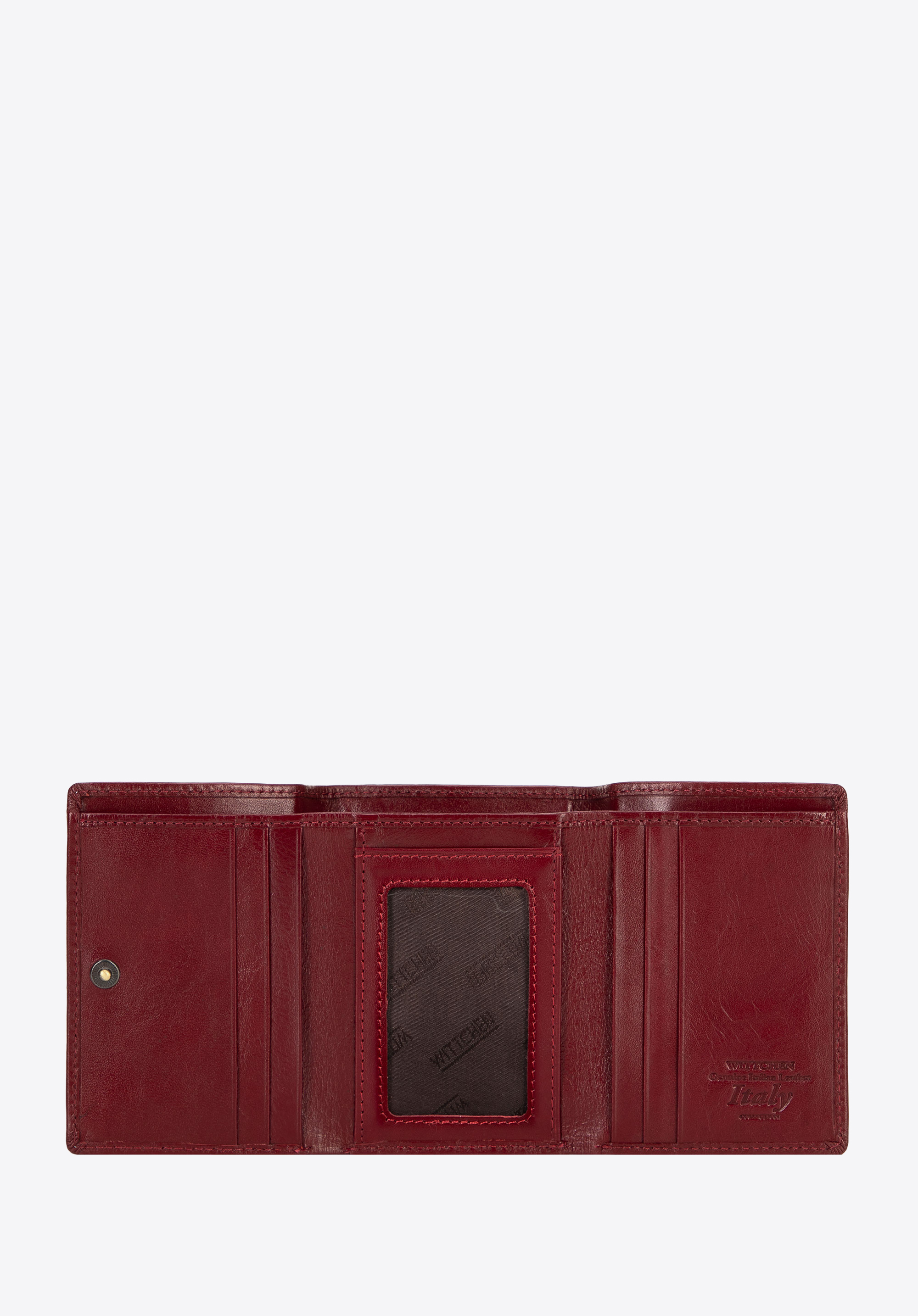 - Funkčný interiér: Dve priehradky na bankovky, vrecko na mince so zipsom, štyri priehradky na kreditné karty a štyri otvorené vrecká vrátane jednej priehľadnej priehradky.