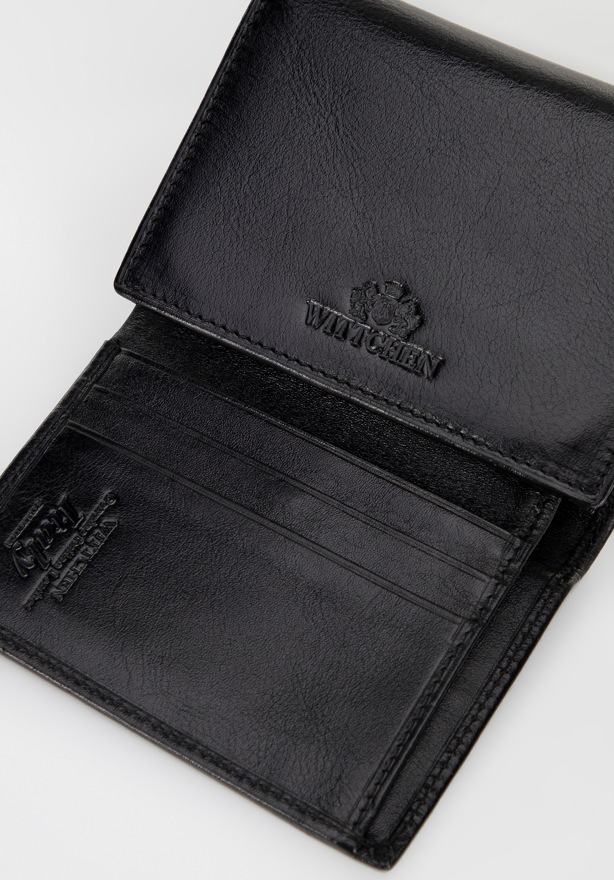 - Funkčný interiér: Dve priehradky na bankovky, vrecko na mince so zipsom, štyri priehradky na kreditné karty a štyri otvorené vrecká vrátane jednej priehľadnej priehradky.