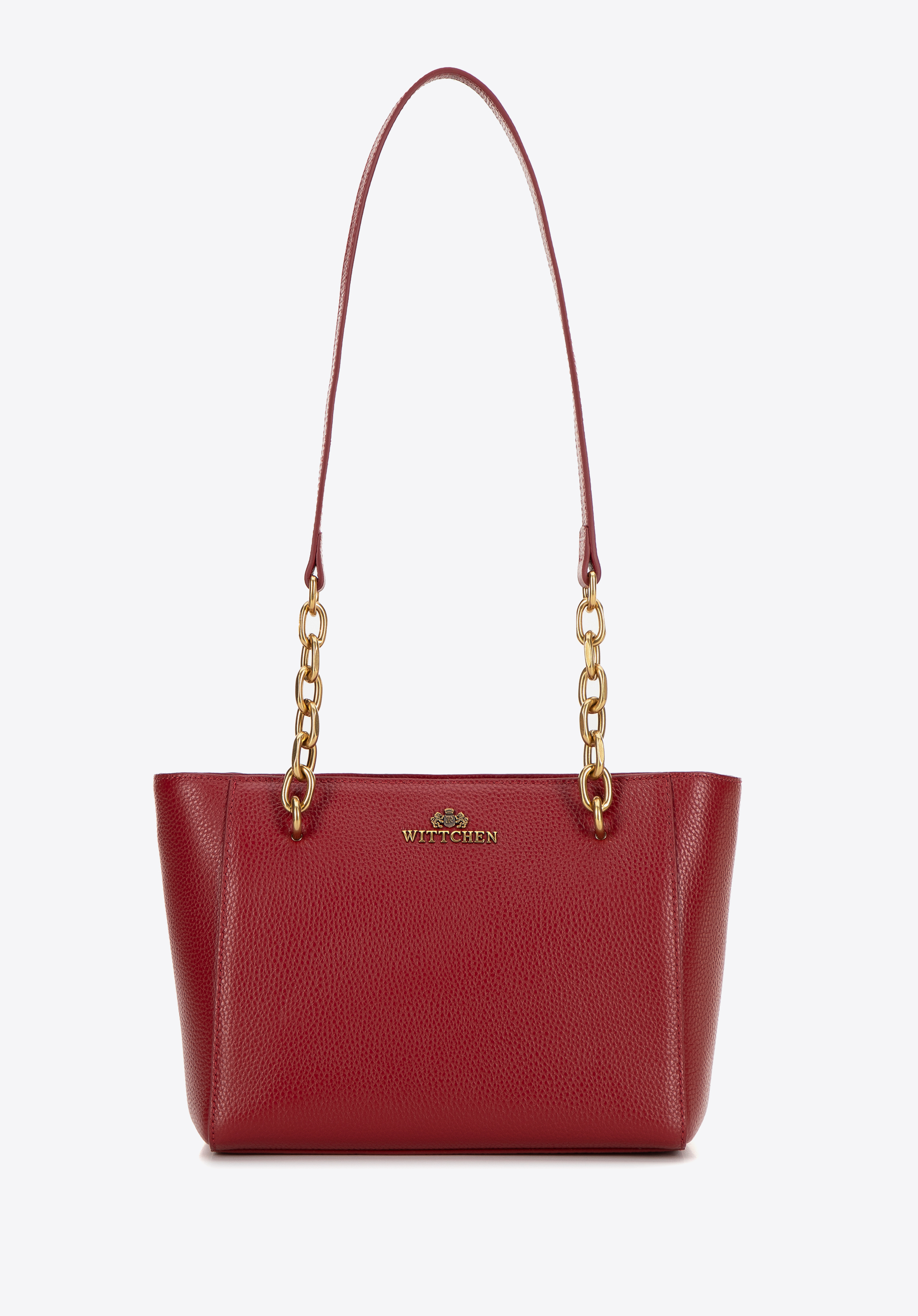 Táto dámska kabelka vyrobená z vysoko kvalitnej prírodnej kože je dokonalou voľbou pre ženu, ktorá oceňuje eleganciu a praktickosť. Decentné logo na prednej strane dodáva nádych luxusu, zatiaľ čo robustné zapínanie na zips zaisťuje bezpečnosť vašich vecí. Dve retiazkové rúčky nielen zvýrazňujú jeho štýl, ale ponúkajú aj pohodlie pri nosení na ramene alebo v ruke.