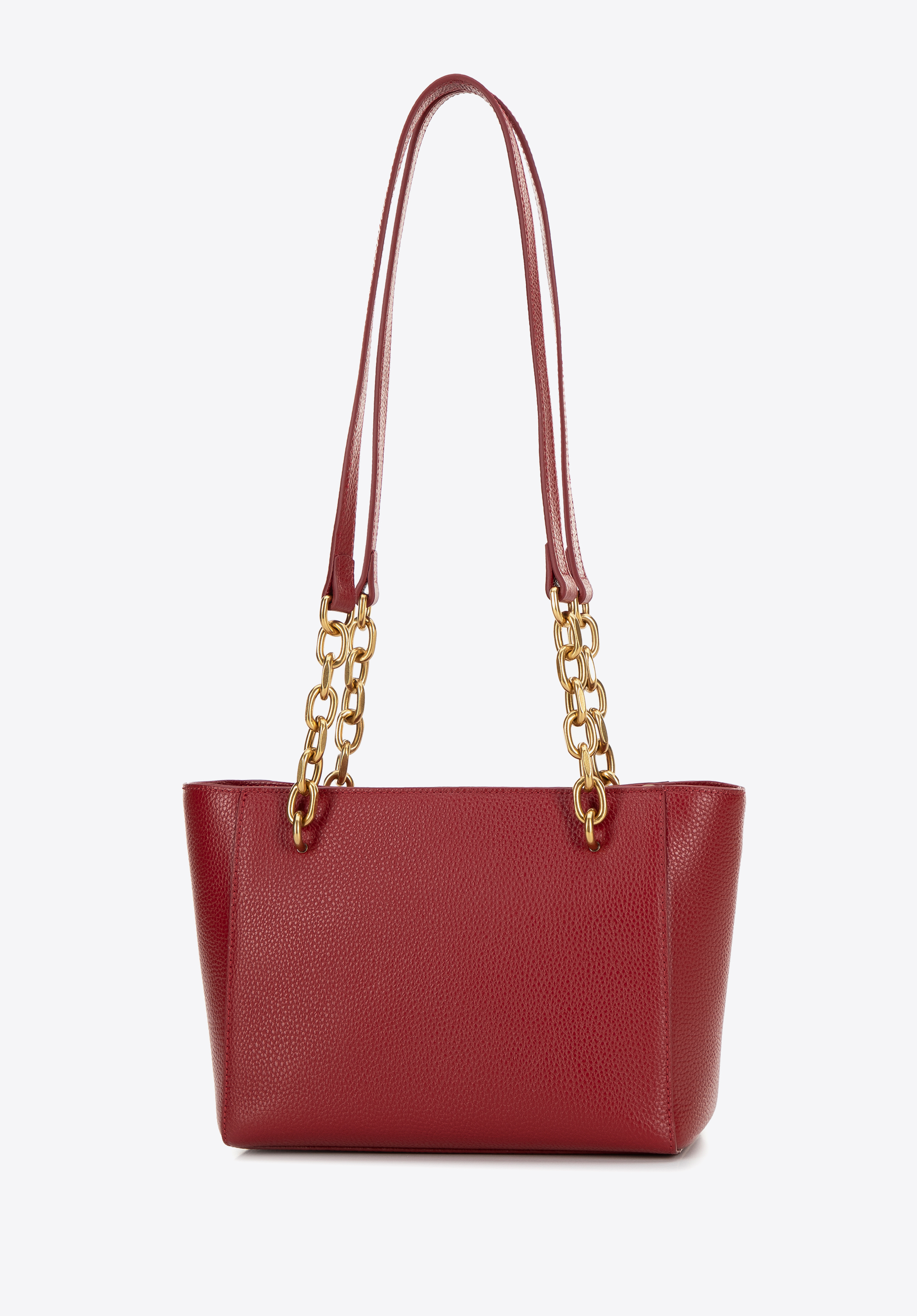 Elegantná kožená kabelka s retiazkovými rúčkami