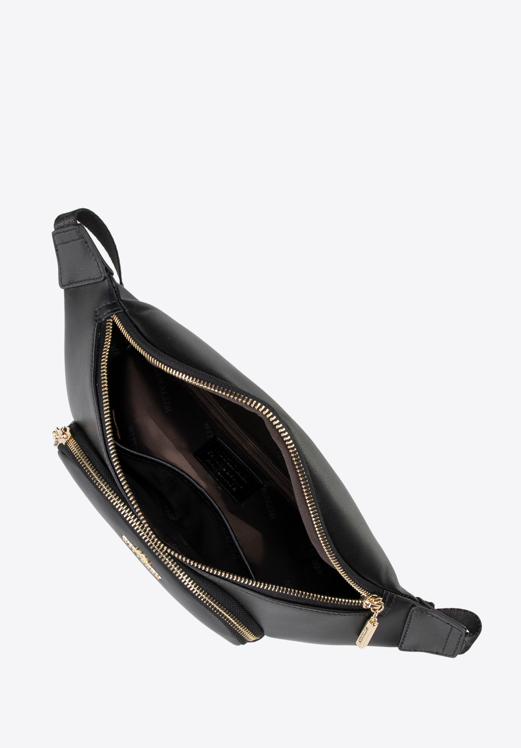 Táto elegantná dámska kabelka je vyrobená z prírodnej kože , ktorá zaisťuje odolnosť a jedinečný vzhľad. Zaistený bezpečným zipsovým uzáverom je dokonalým každodenným riešením, ktoré vám umožní bezpečne uložiť všetky vaše potreby. Vnútro opasku obsahuje dve praktické vrecká, z toho jedno na zips. Nastaviteľný popruh zdobený logom zaručuje pohodlie a ďalšie vrecká na zips na prednej a zadnej strane poskytujú ľahký prístup k vašim najpotrebnejším veciam.