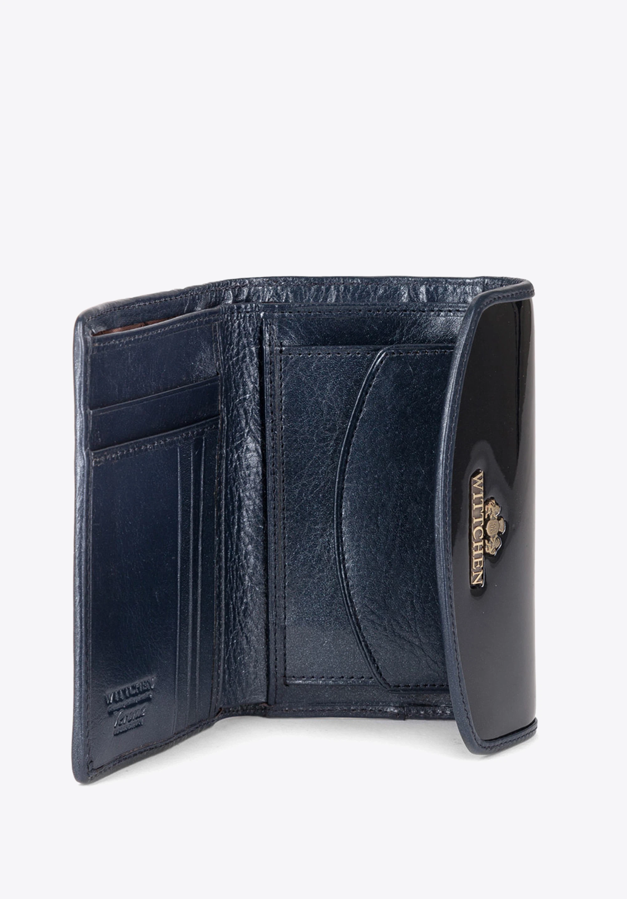 Štýlová dámska peňaženka z nádherne hladkej lakovanej kože bude praktickou pomôckou a ozdobou každého outfitu. Peňaženka je vybavená priehradkou na mince a množstvom vreciek na bankovky a drobné doklady. Ideálna pre ženy, ktoré oceňujú jedinečnú precíznosť spracovania a zaujímavý dizajn.