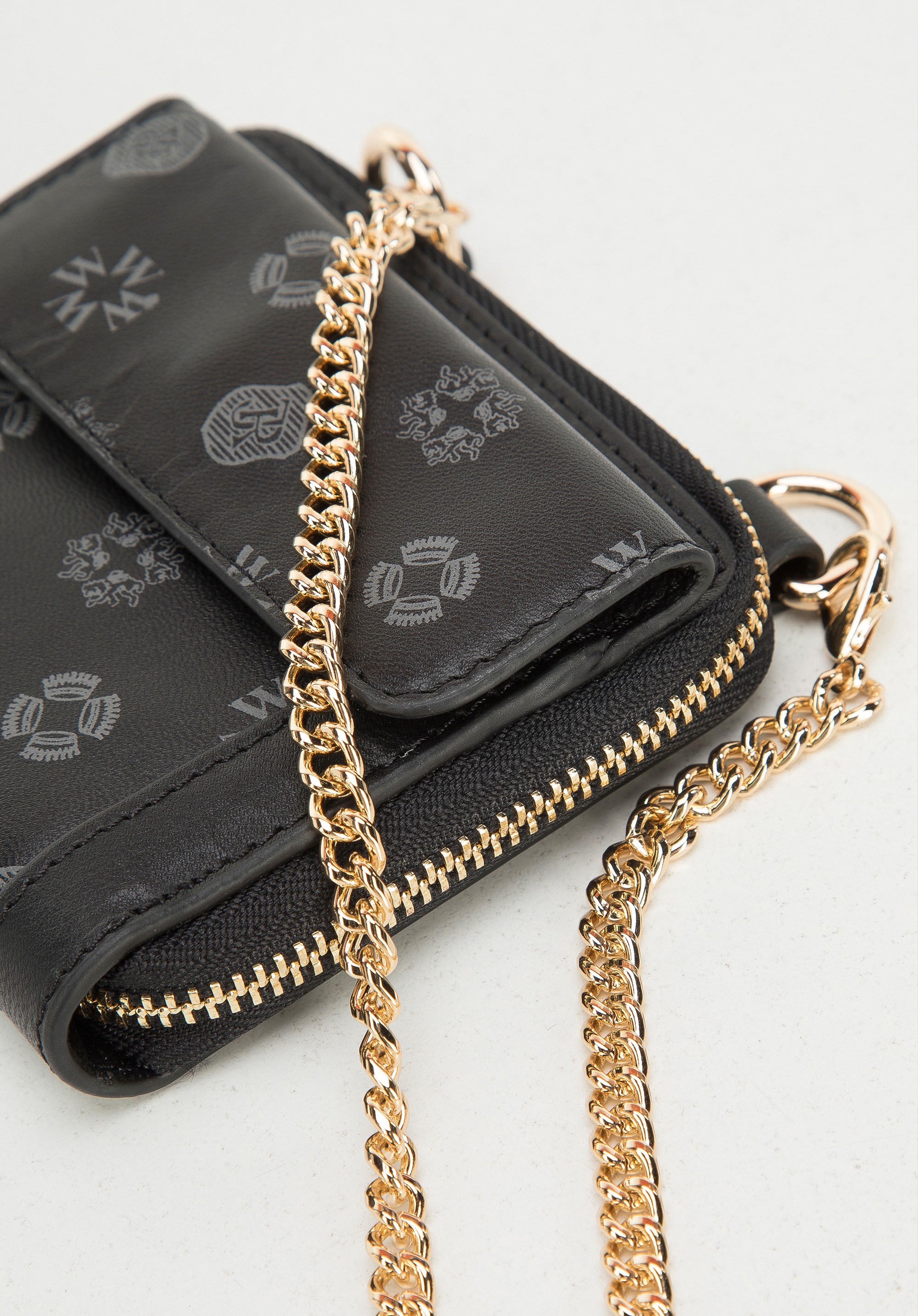 zlaté kovanie a retiazka, vďaka čomu získava celok nový výraz. Dovnútra sa vám zmestia mince a dve karty a do vonkajšieho vrecka zapínaného na magnet môžete uložiť napríklad cestovný lístok. Peňaženku môžete nosiť každý deň a ako kabelku si ju môžete vziať aj na večer alebo do kina.