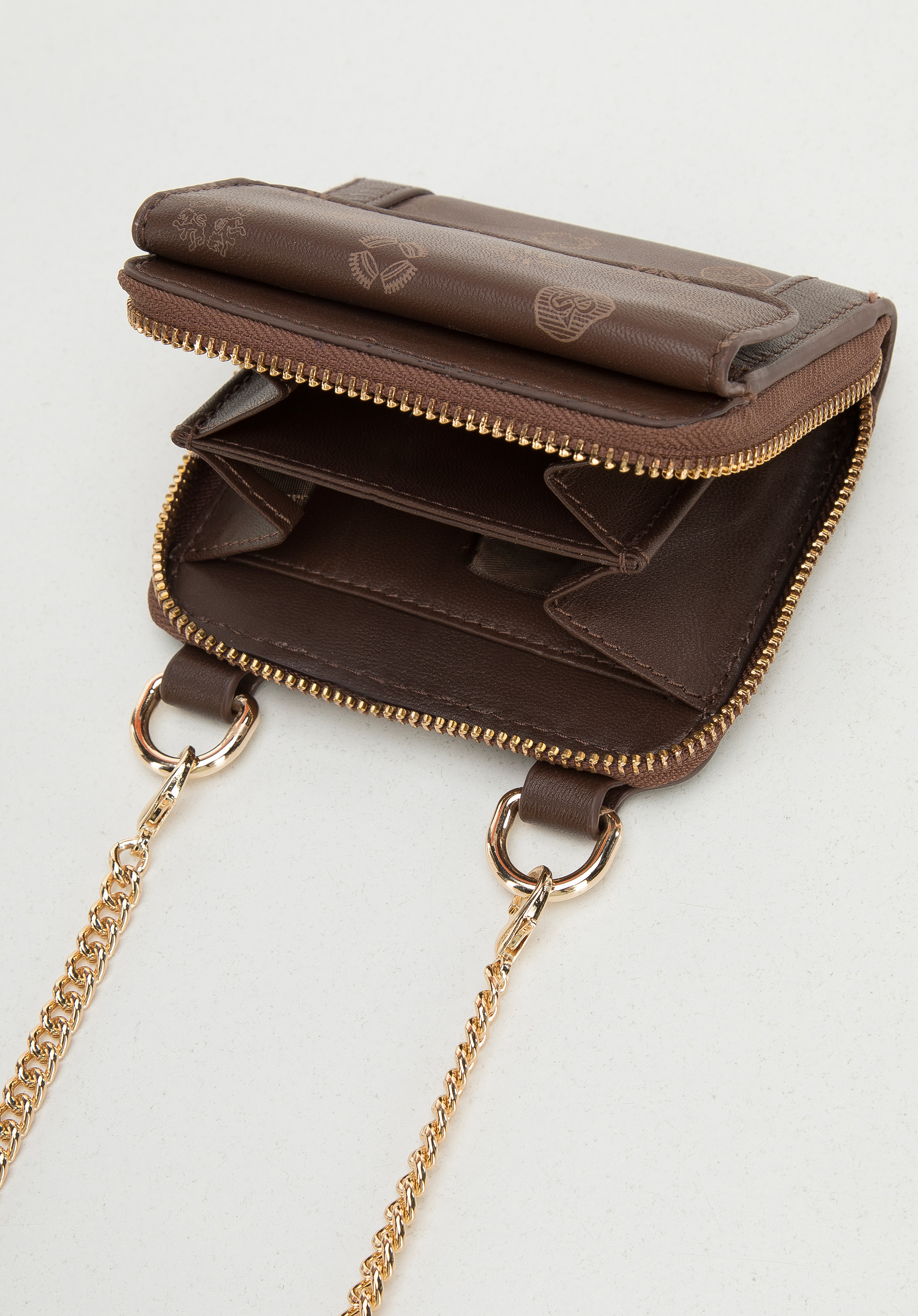 zlaté kovanie a retiazka, vďaka čomu získava celok nový výraz. Dovnútra sa vám zmestia mince a dve karty a do vonkajšieho vrecka zapínaného na magnet môžete uložiť napríklad cestovný lístok. Peňaženku môžete nosiť každý deň a ako kabelku si ju môžete vziať aj na večer alebo do kina.