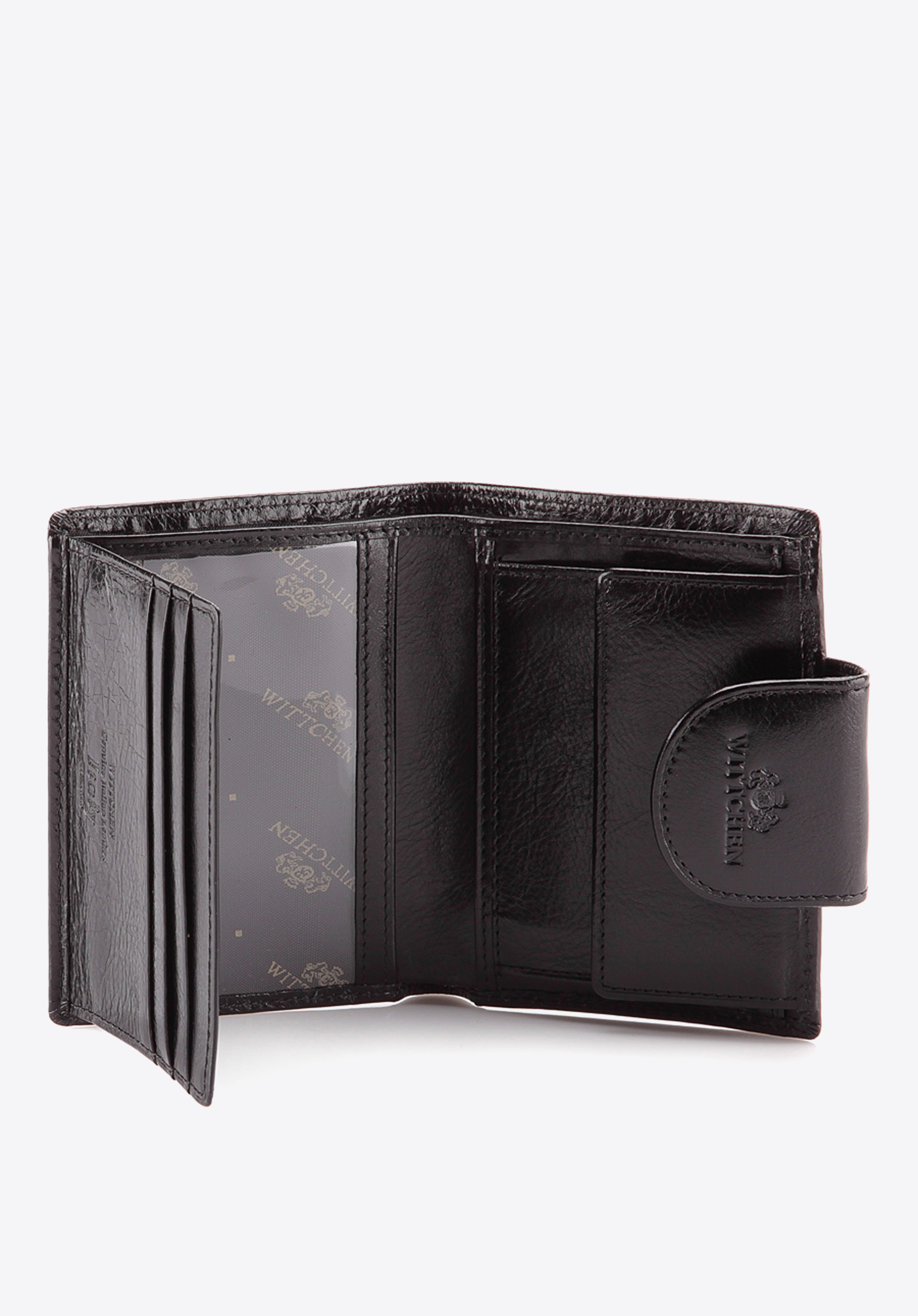 Elegantná dámska peňaženkaa vyrobená z vysokokvalitnej teľacej kože so zrnitou textúrou. Model vybavený priehradkou na mince, tromi priehradkami na kreditné karty, tromi vreckami, z ktorých dve sú priehľadné, a dvoma vreckami na bankovky. Peňaženka je kombináciou klasickej elegancie a výnimočnej funkčnosti. Je zabalená do obalu s logom WITTCHEN, takže je ideálnym darčekom.