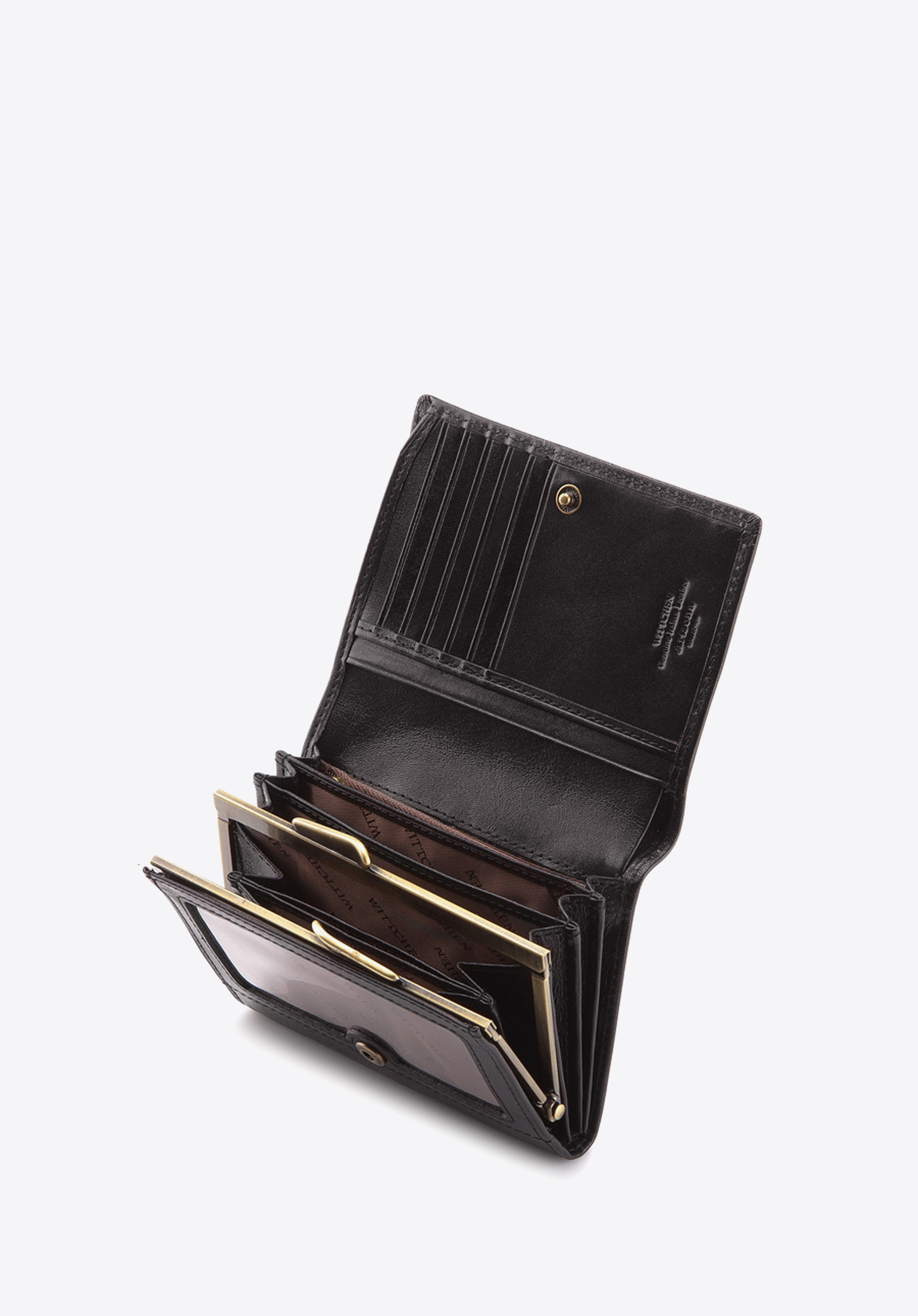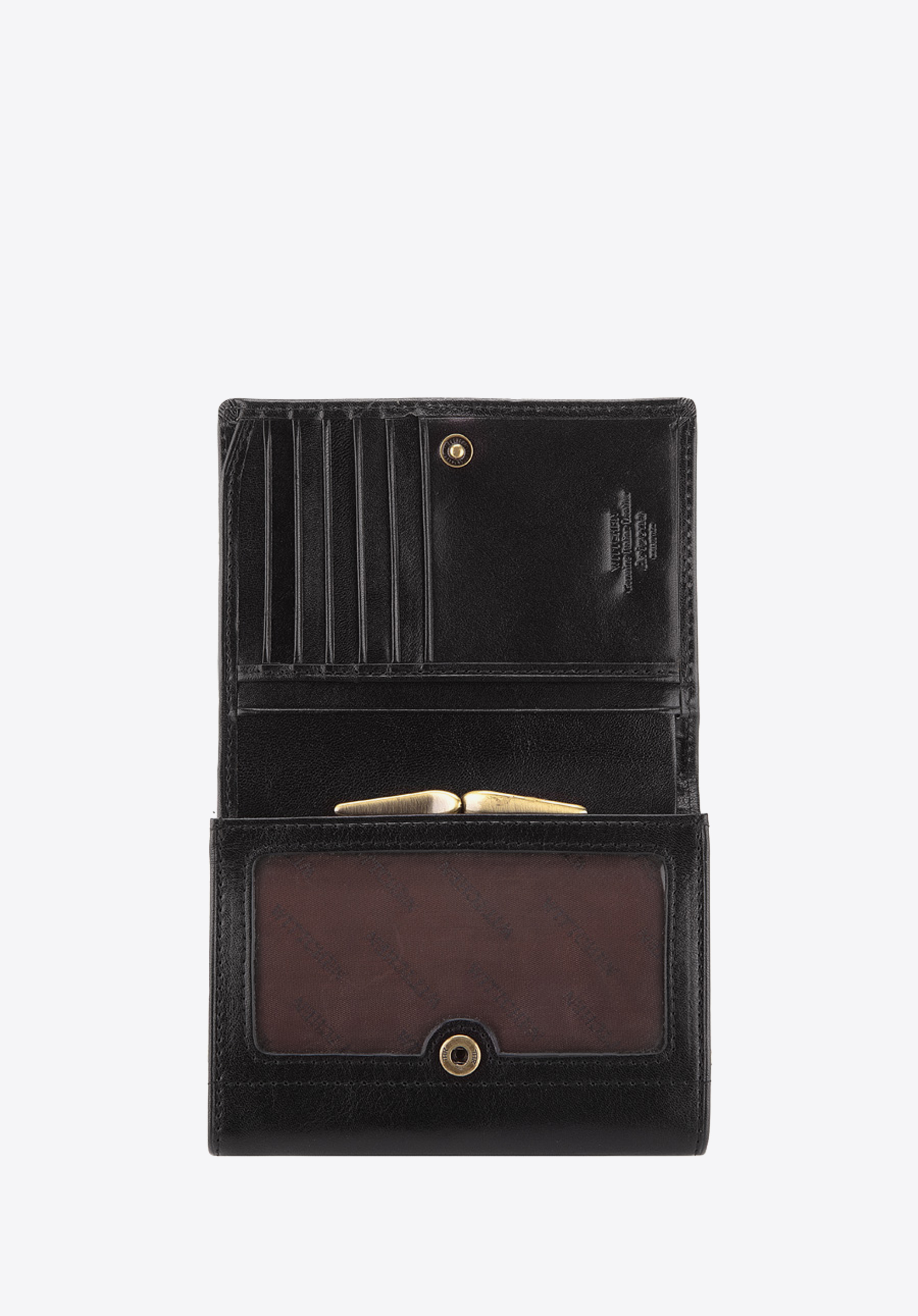 Dámska kožená peňaženka s erbom na patentný gombík čierna