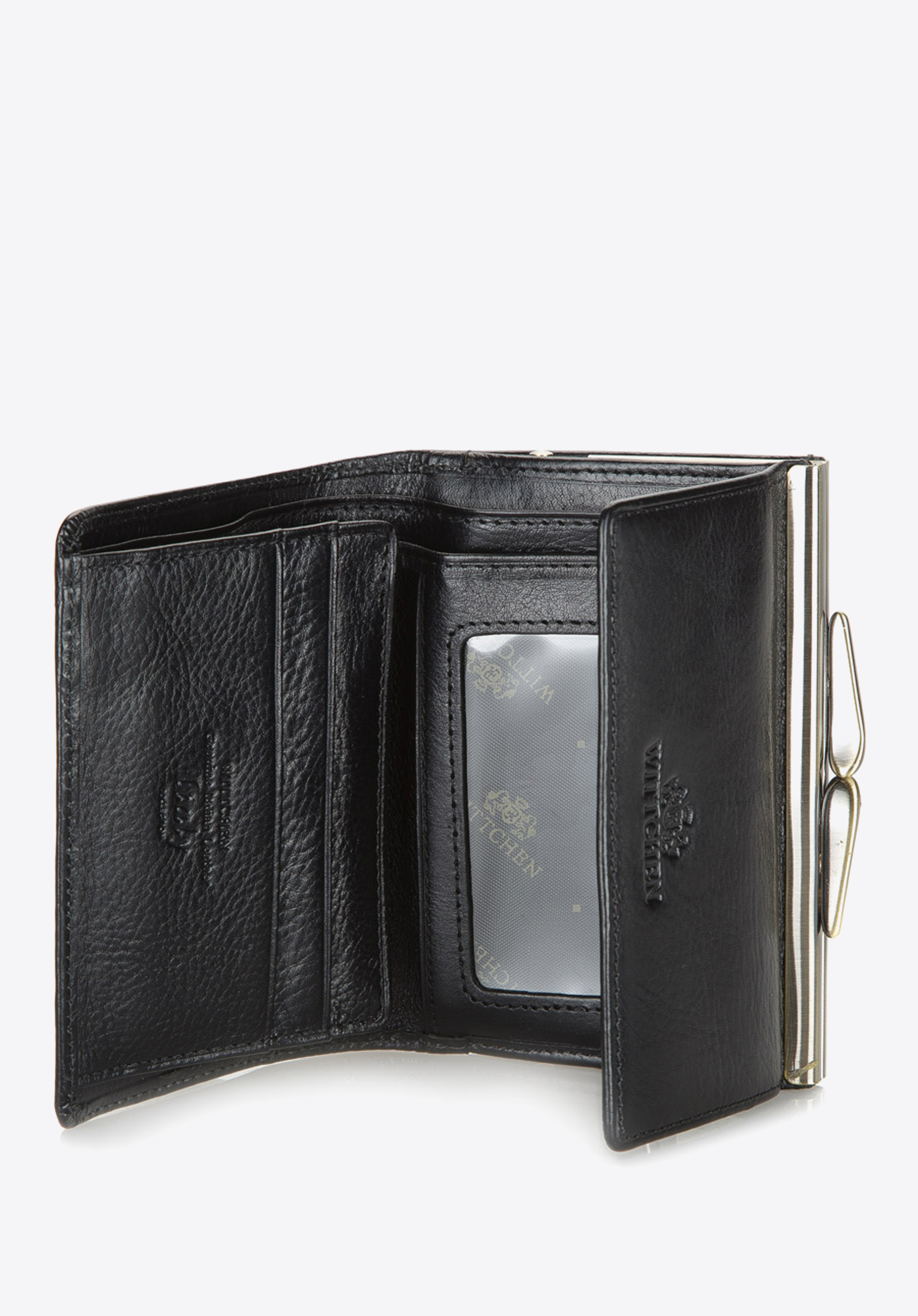 viacero priehradiek, vďaka ktorým sa do peňaženky zmestia všetky potrebné veci. Nájdete tu vrecká na bankovky, miesta na karty a priehľadné miesta na cestovné lístky alebo fotografie. Táto malá dámska kožená peňaženka zatváraná na háčik je elegantným a veľmi pohodlným modelom, ktorý je vhodný na každú príležitosť.