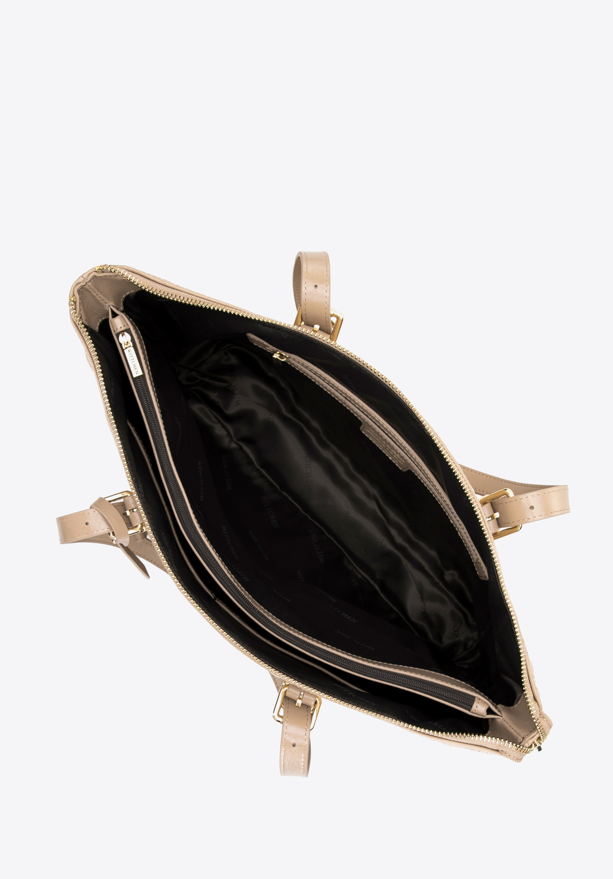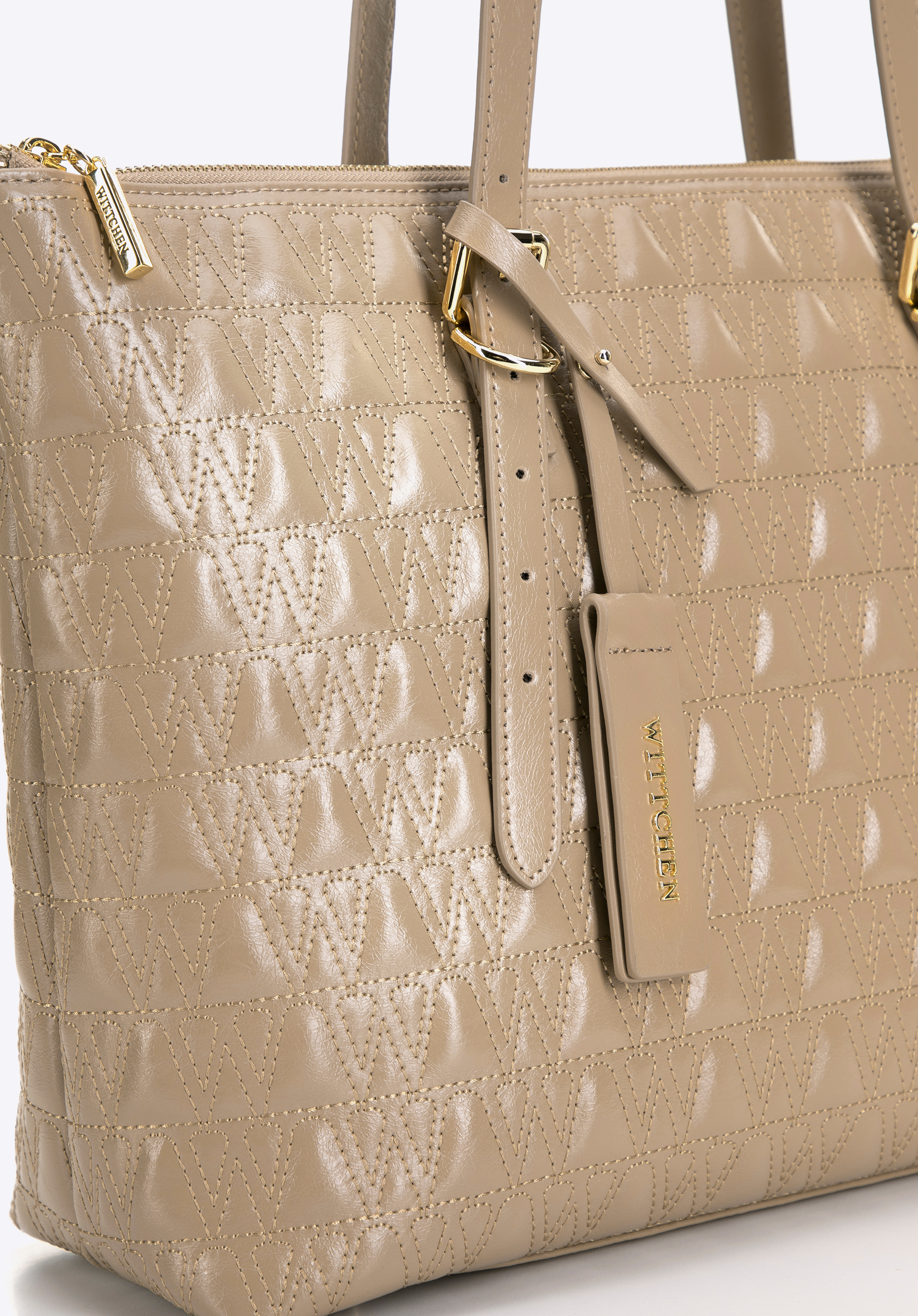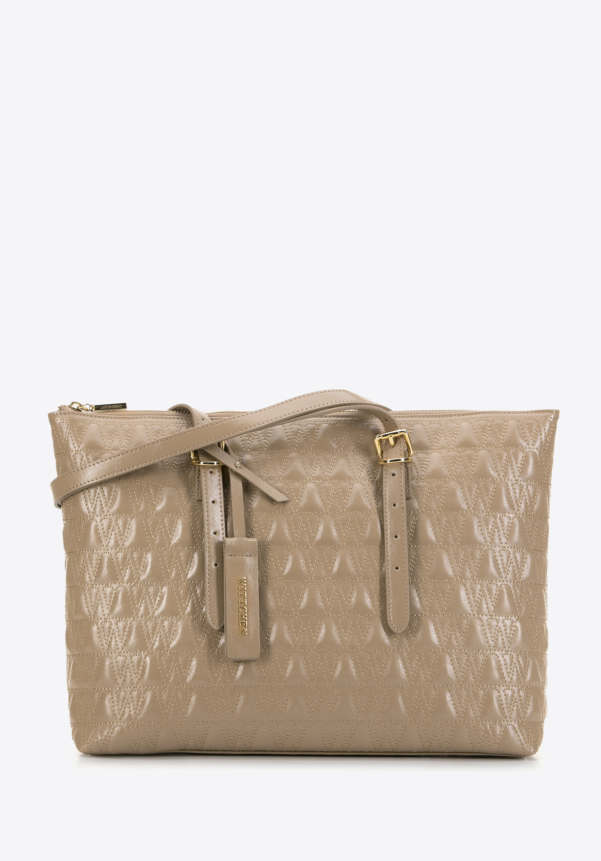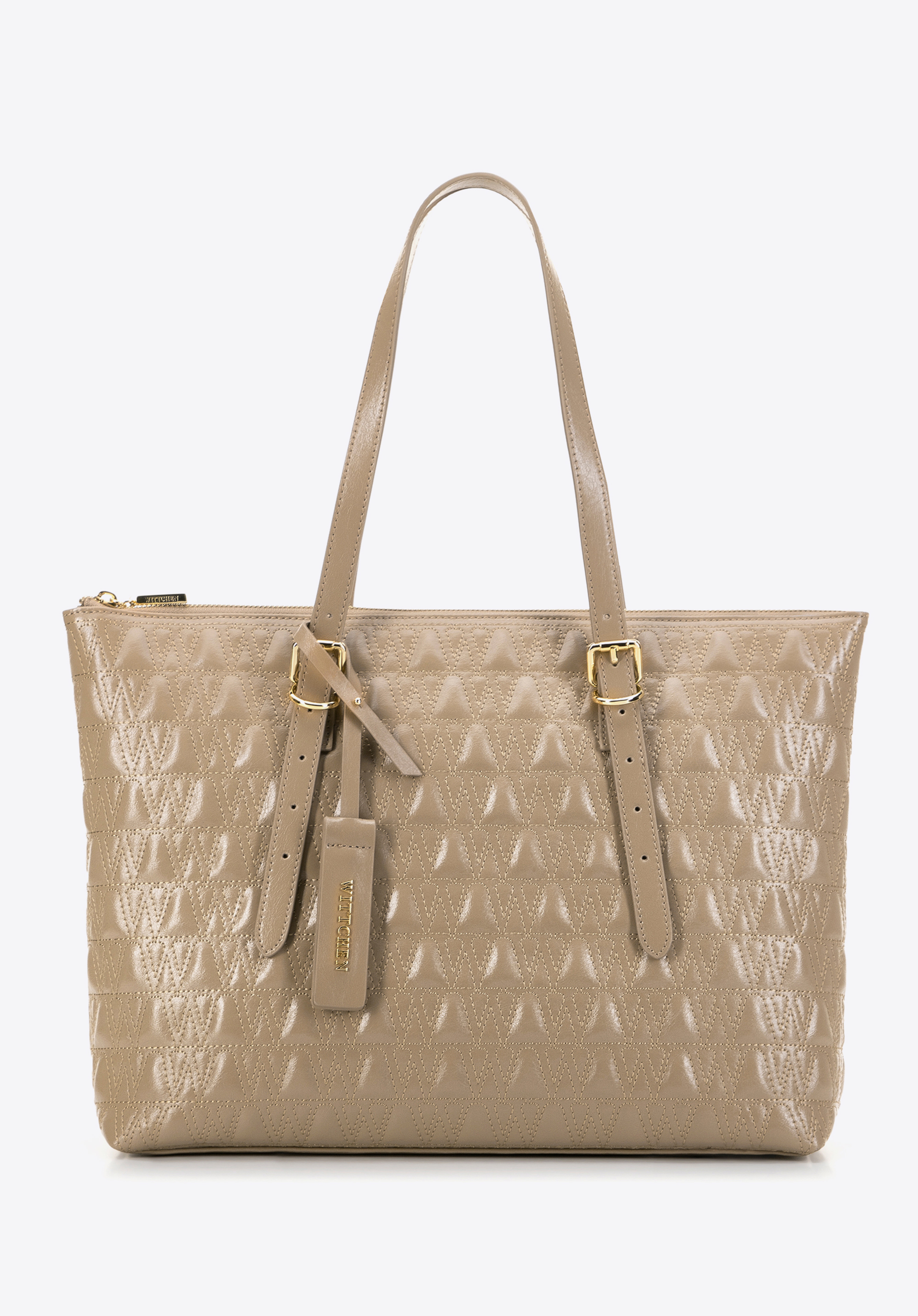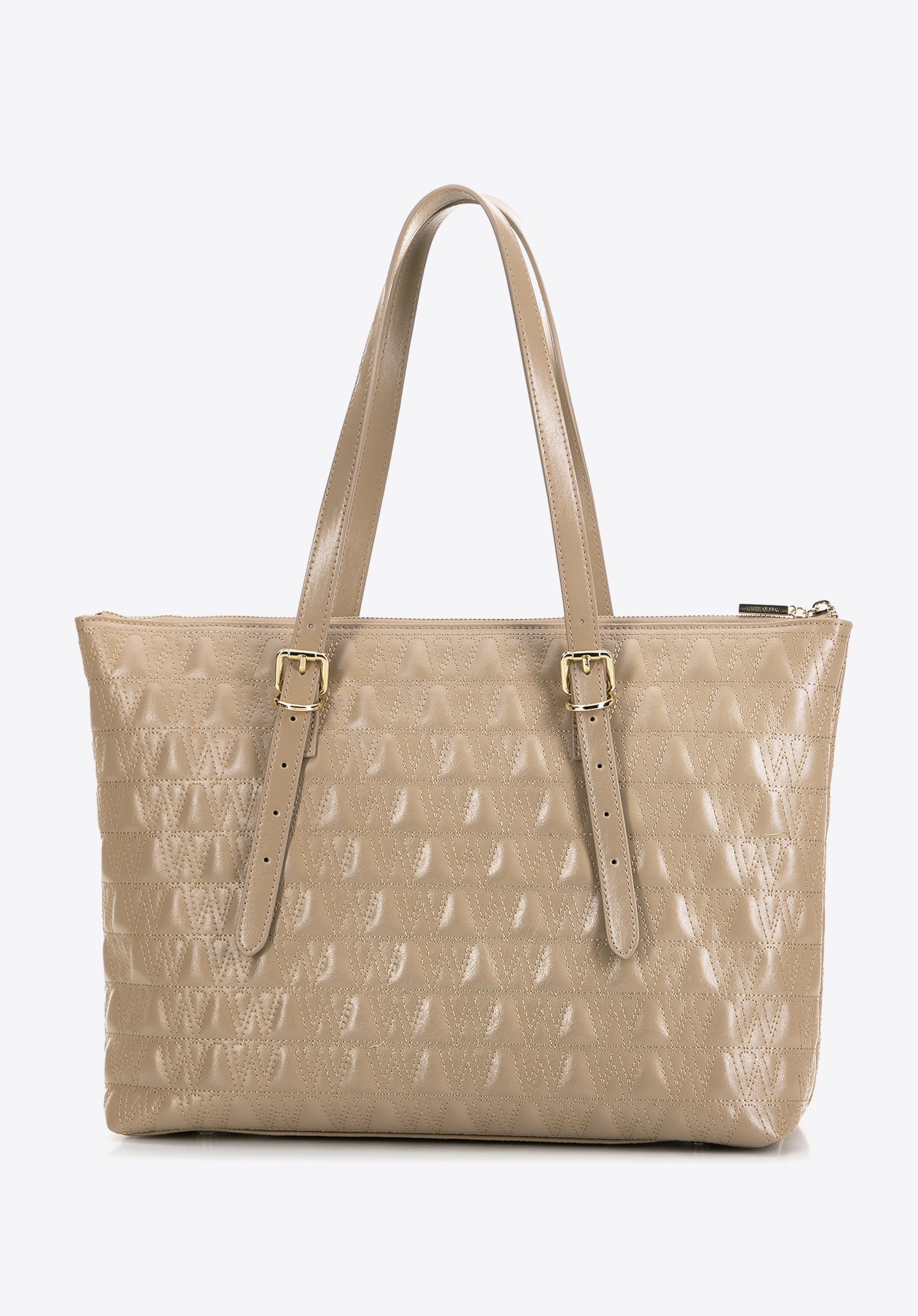 Dodajte eleganciu a štýl vášmu každodennému životu s touto jedinečnou shopper taškou vyrobenou z prírodnej kože. Táto kabelka, zdobená prešitím so vzorom "W", kombinuje luxusný vzhľad a praktické riešenia, ideálne pre modernú ženu.