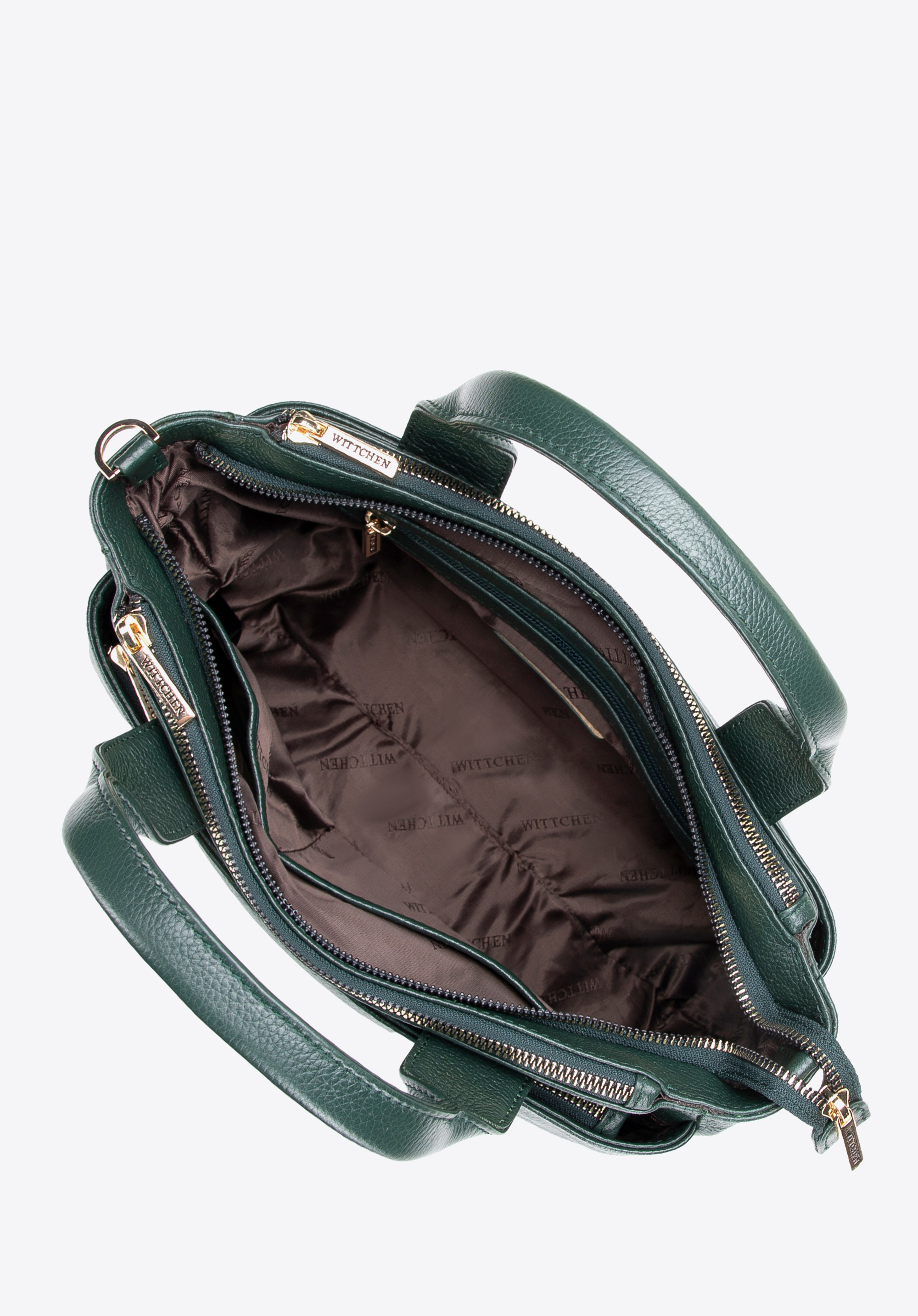 Obohaťte si šatník nadčasovým doplnkom, ktorý dokonale kombinuje klasickú eleganciu s funkčnosťou. Taška vyrobená z kože s kamienkovou textúrou vyniká robustným spracovaním a prepracovaným dizajnom. Vďaka horným rúčkam a odnímateľnému , nastaviteľnému popruhu ju môžete nosiť podľa svojich predstáv. Priestranná hlavná priehradka s tromi vreckami (vrátane jedného na zips) a štyrmi praktickými vonkajšími vreckami zaisťuje vynikajúci poriadok a rýchly prístup k nevyhnutnostiam.
