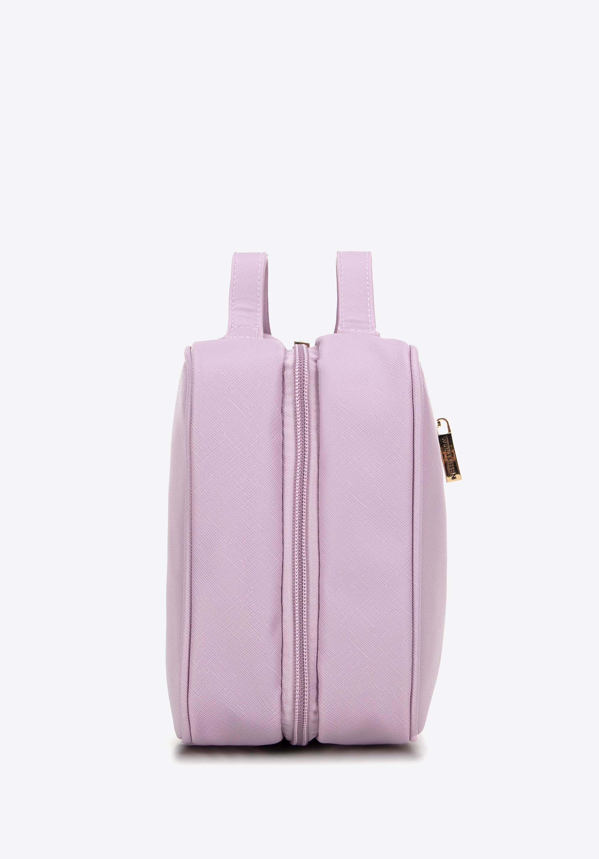 Priestranná kozmetická taška, ktorá dokonale spája eleganciu s praktickosťou, je ideálnou voľbou pre ženy, ktoré oceňujú štýl a poriadok. Je vyrobená z ekologickej kože a spája v sebe moderný dizajn a odolnosť. Do dvoch priestranných priehradiek na zips sa zmestia všetky vaše obľúbené kozmetické potreby, doplnky na líčenie a iné drobnosti. Praktický držiak s vešiakom vám umožní kozmetickú tašku pohodlne zavesiť v kúpeľni, šatníku alebo počas cestovania.