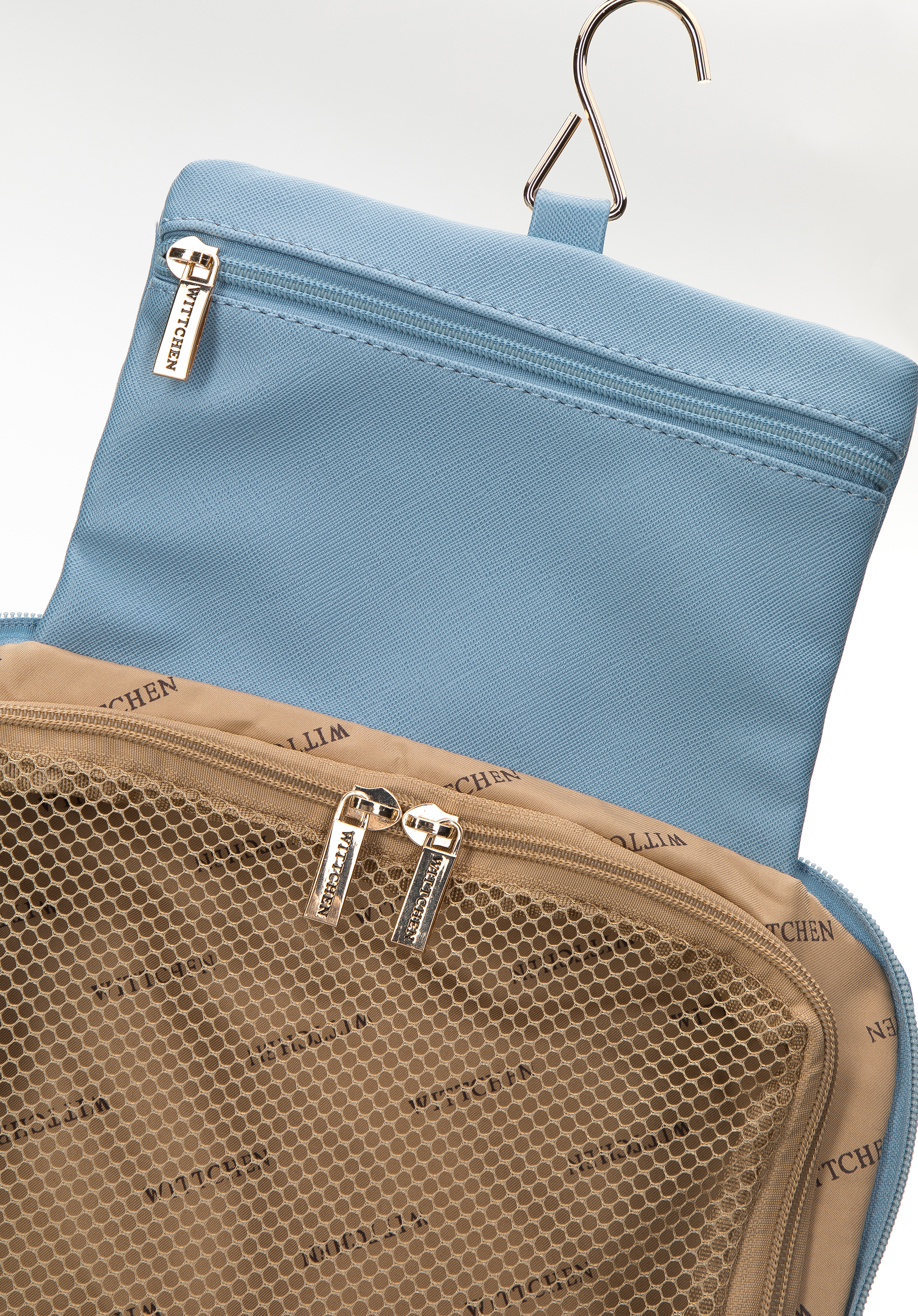 - Praktický držiak s vešiakom: Umožňuje zavesiť kozmetickú tašku kamkoľvek, čím poskytuje ľahký prístup k obsahu bez nutnosti rozbaľovania.