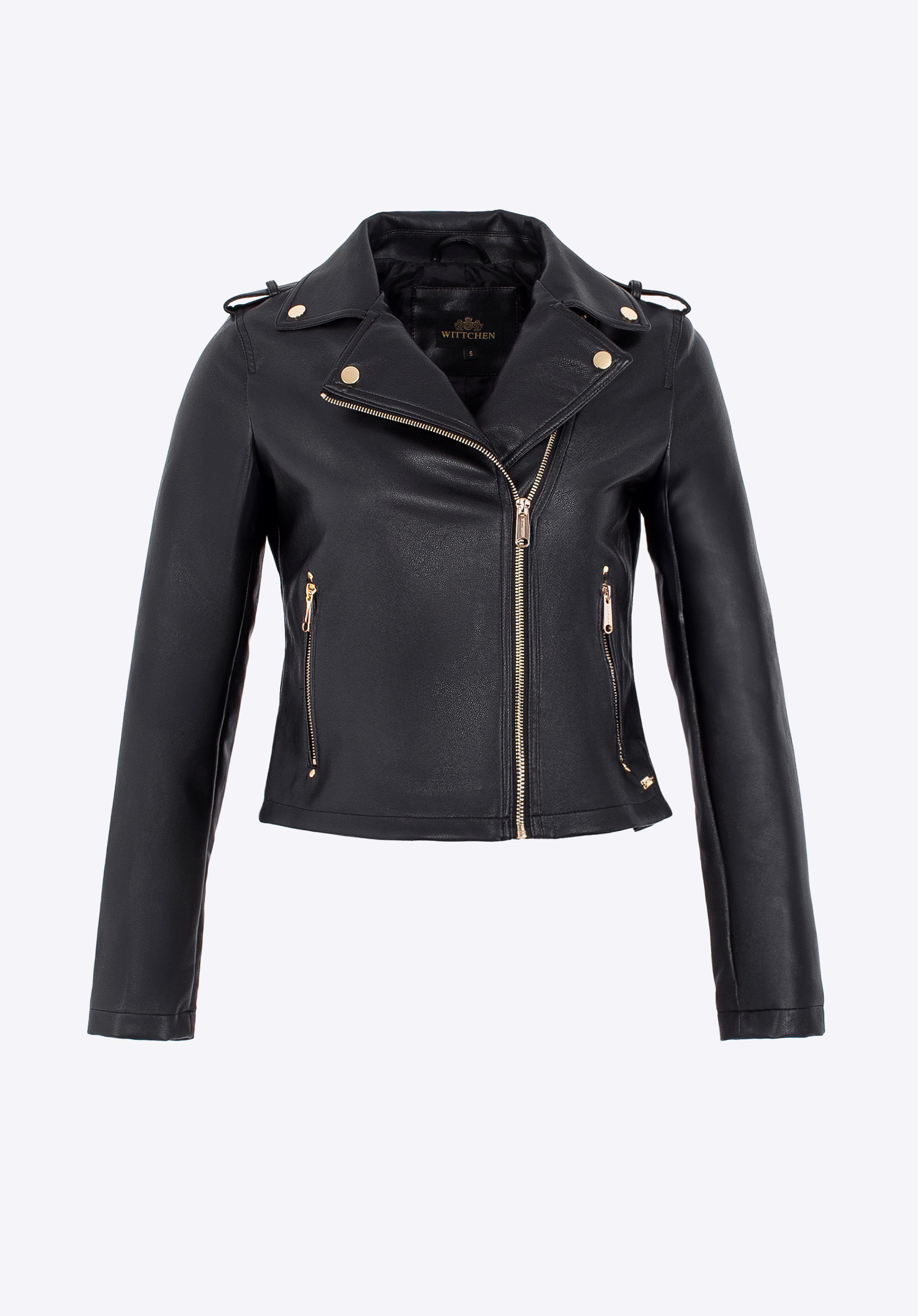 Táto bunda je dokonalou kombináciou nadčasovej elegancie a moderného strihu – skutočná módna ikona! Vyrobené z umelej kože , zaujme nielen vzhľadom, ale aj komfortom, ktorý ponúka. Prispôsobený strih dokonale zvýrazňuje siluetu, zatiaľ čo kovové detaily vrátane loga na boku a zipsov dodávajú jemnú eleganciu. Asymetrický zips , nárameníky na pleciach s patentkami a cvočky na vreckách a golieri mu dodávajú jedinečný charakter a nádych rockovej elegancie.