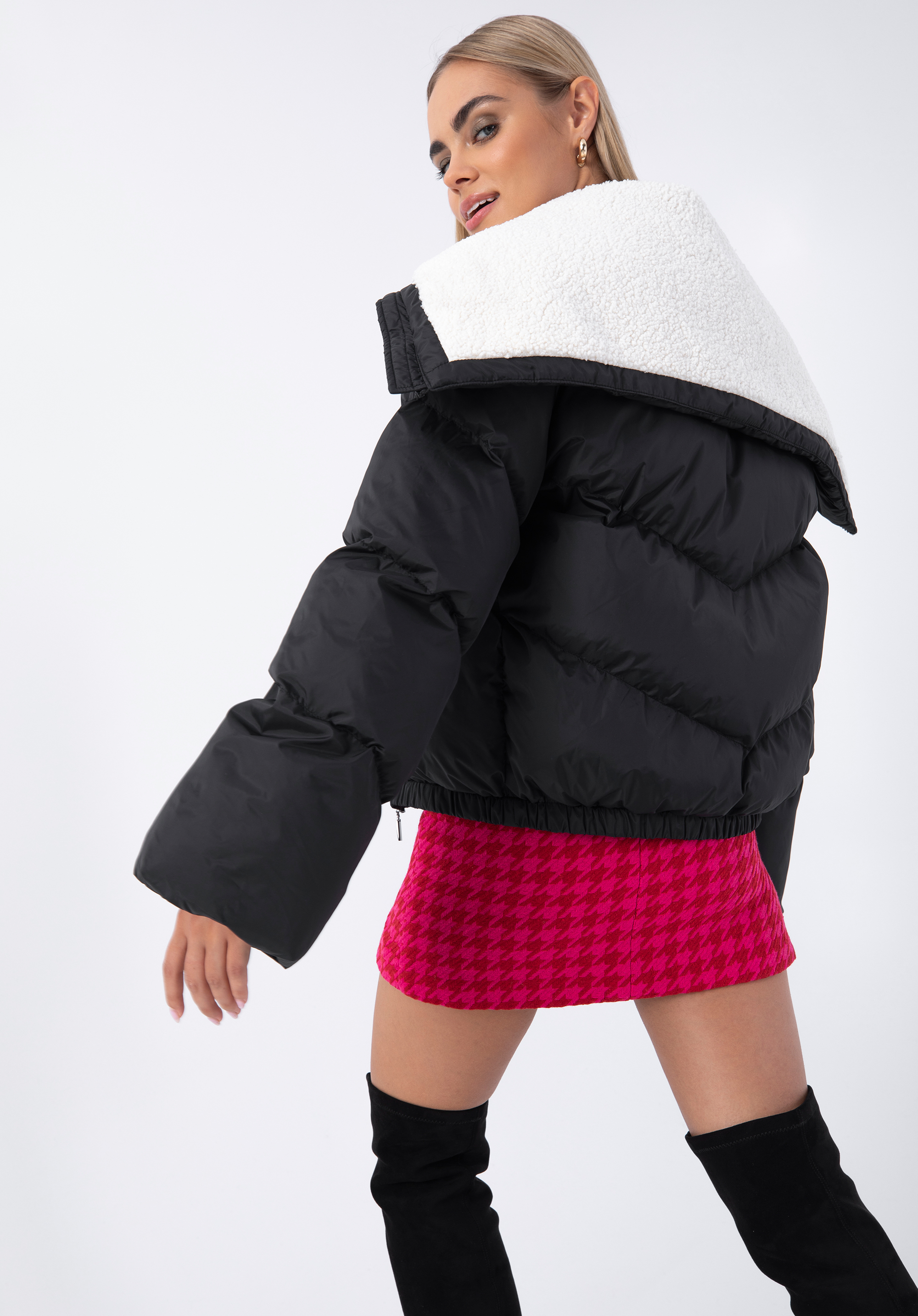 - veľký golier podšitý umelou kožušinou;