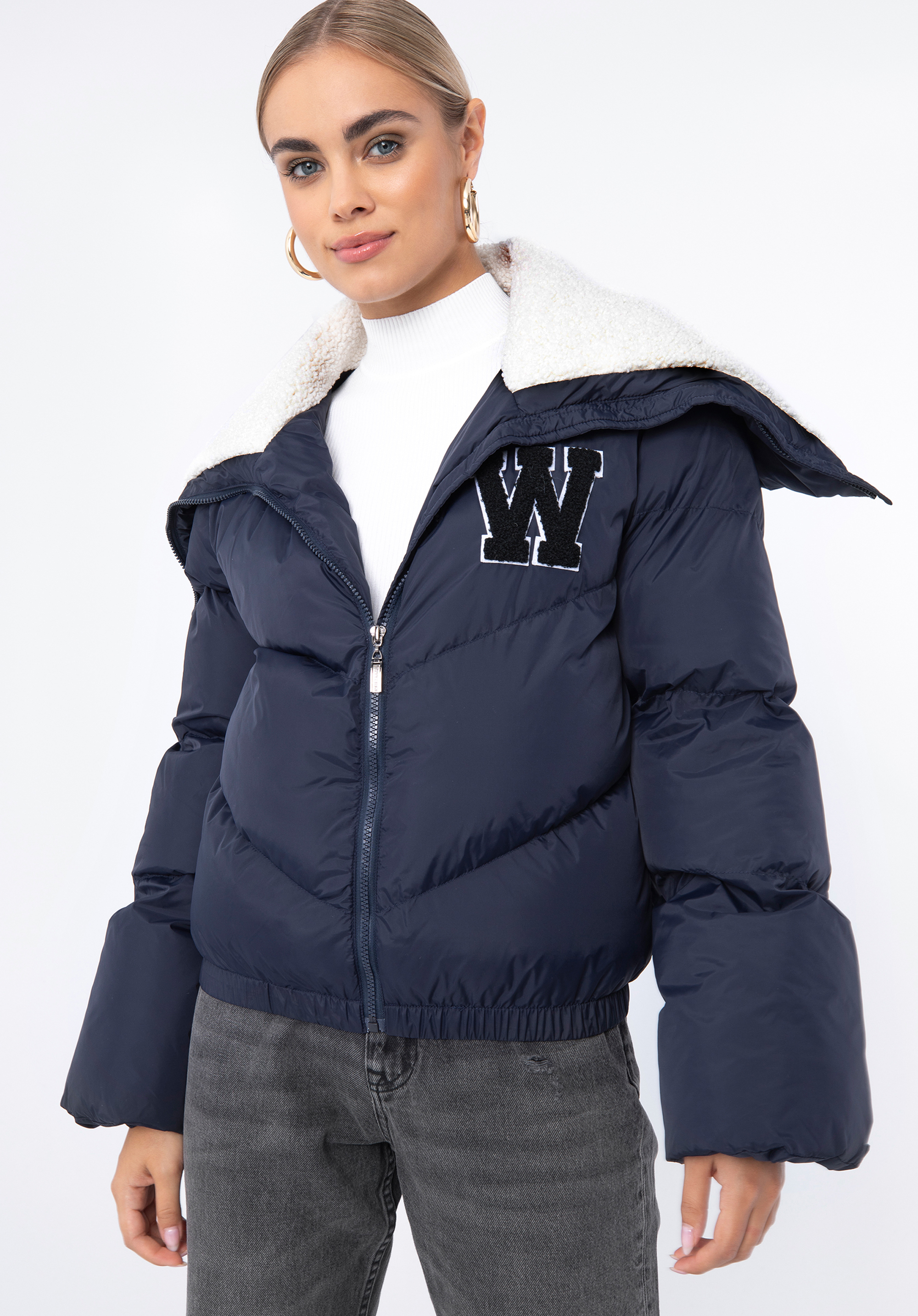 Veľký golier podšitý umelým baránkom a vyšívané písmeno „W” dodajú celku jedinečný charakter. Tento model je