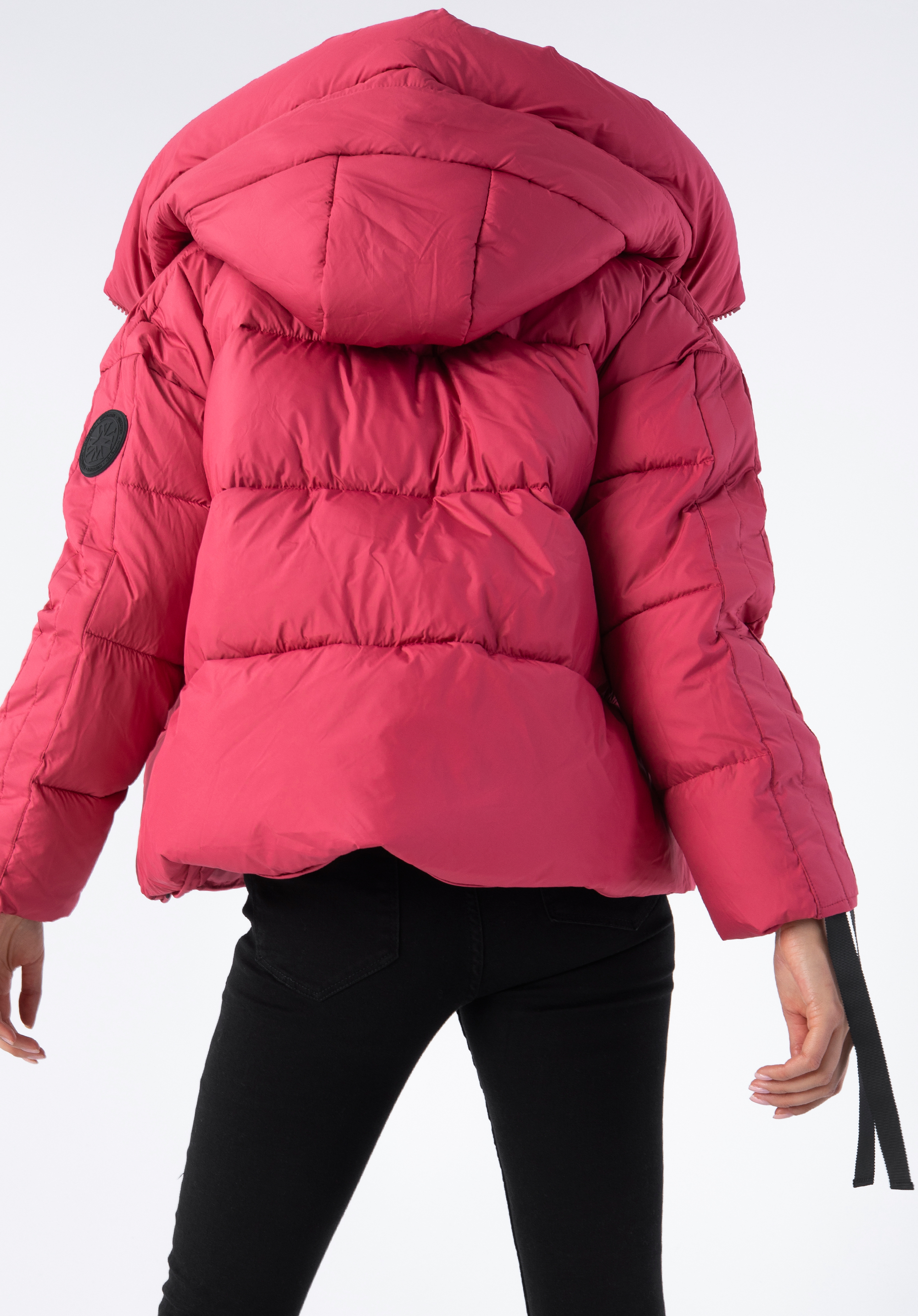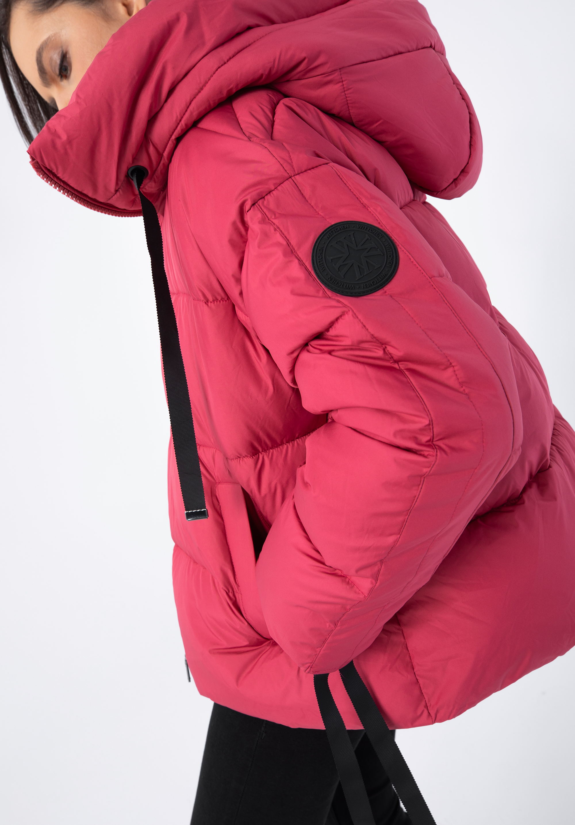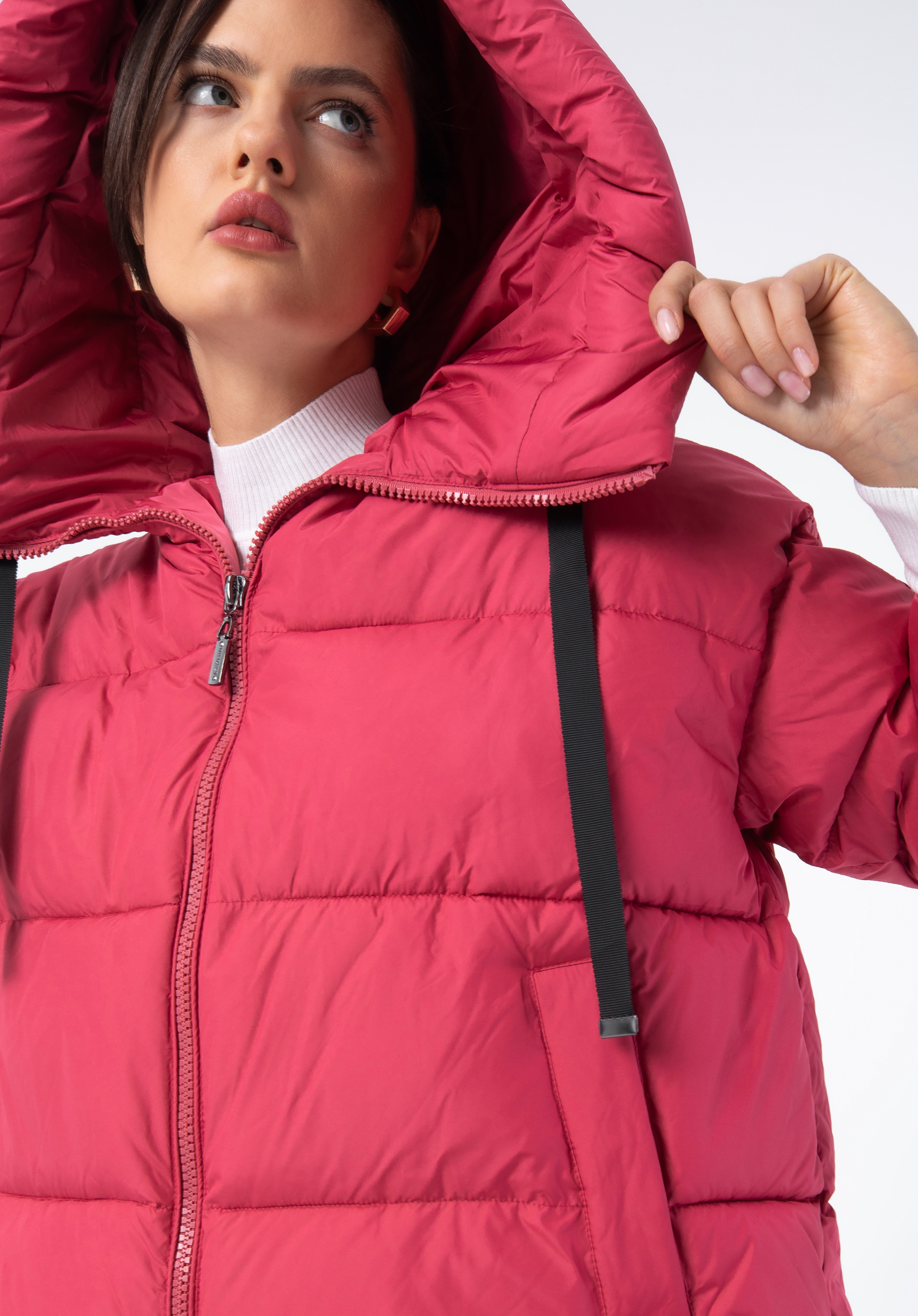 Dámska nadrozmerná prešívaná bunda s rebrovanými manžetami vo vyblednutej ružovej