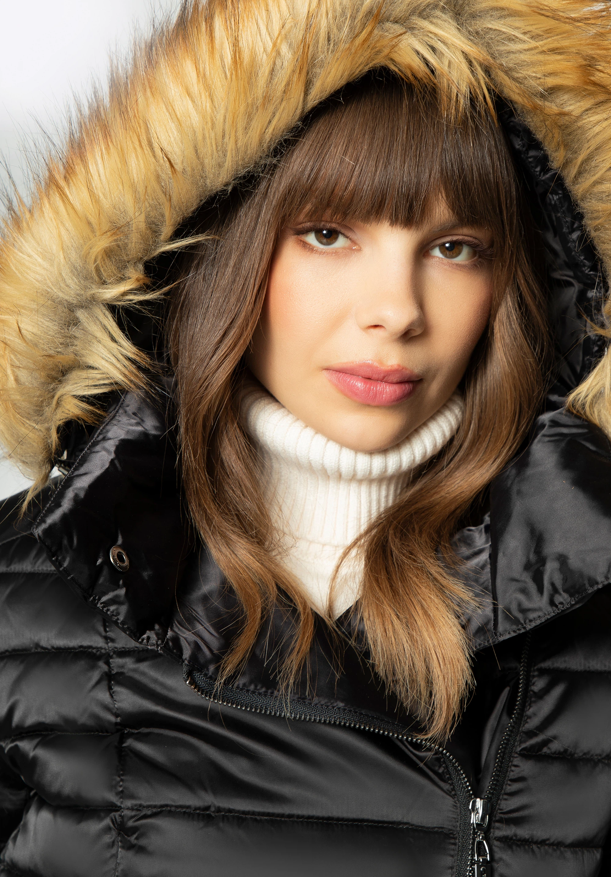 vyrobená z príjemného na dotyk, jemne lesklého nylonu. Kapucňa je lemovaná umelou kožušinou.
