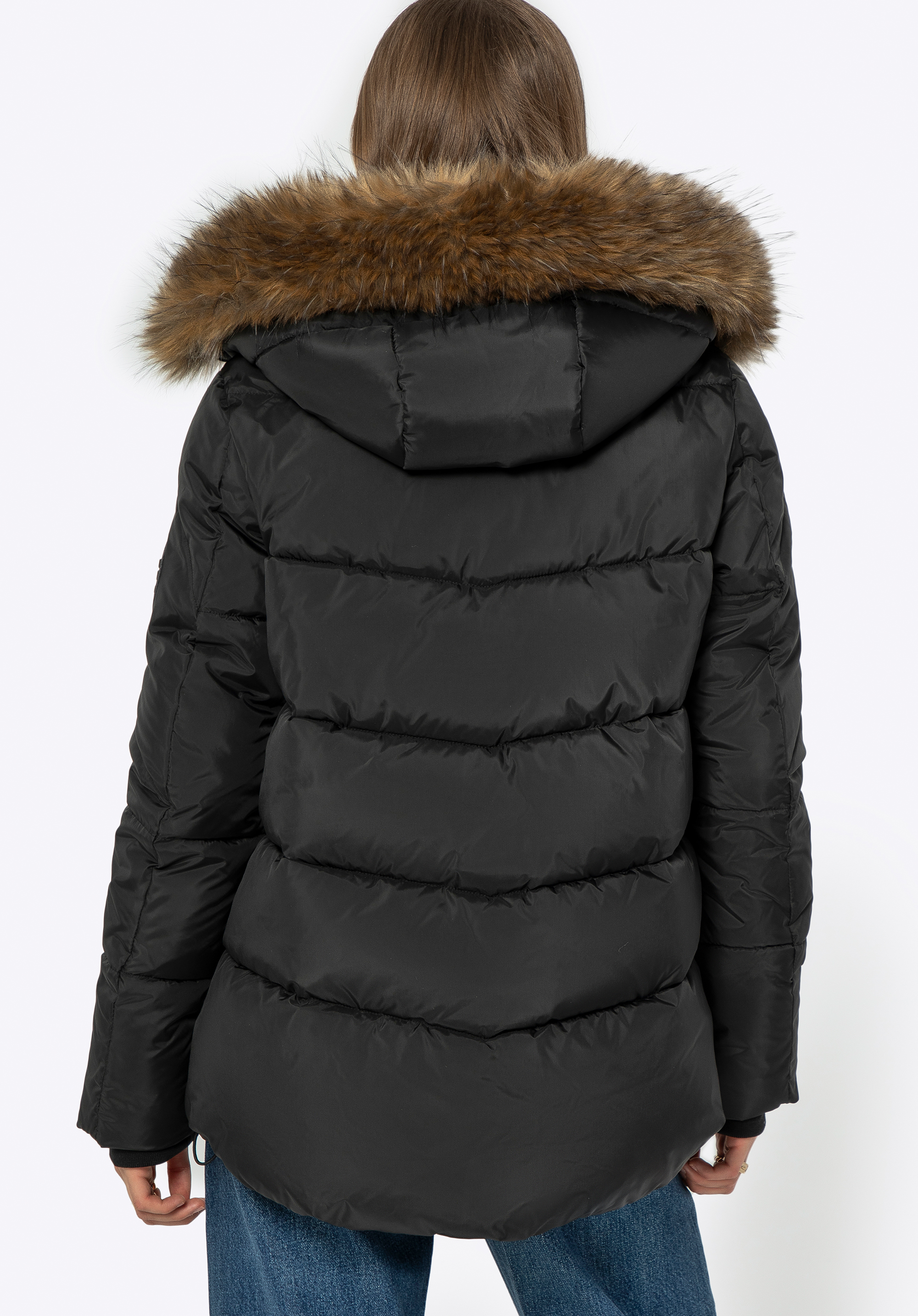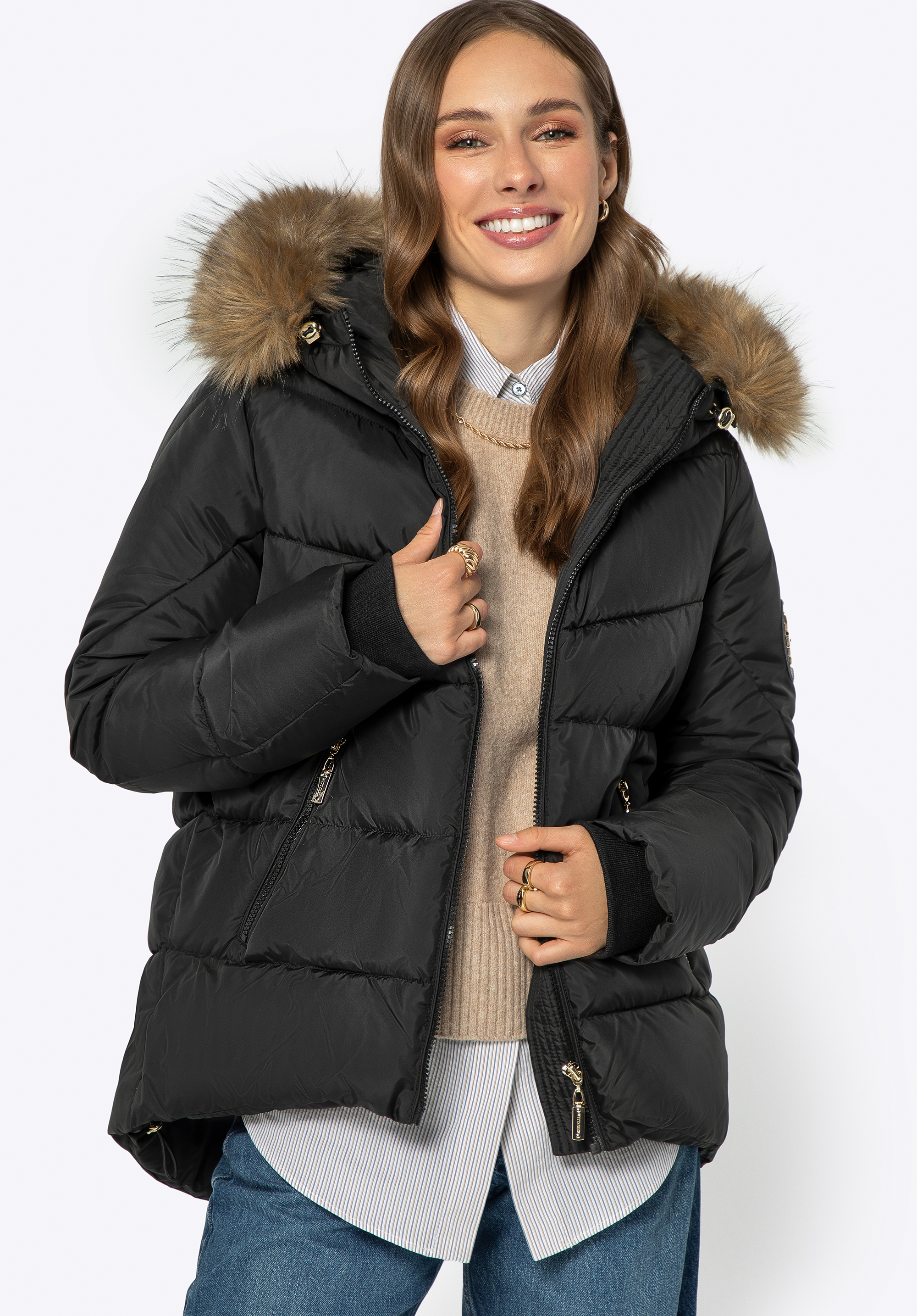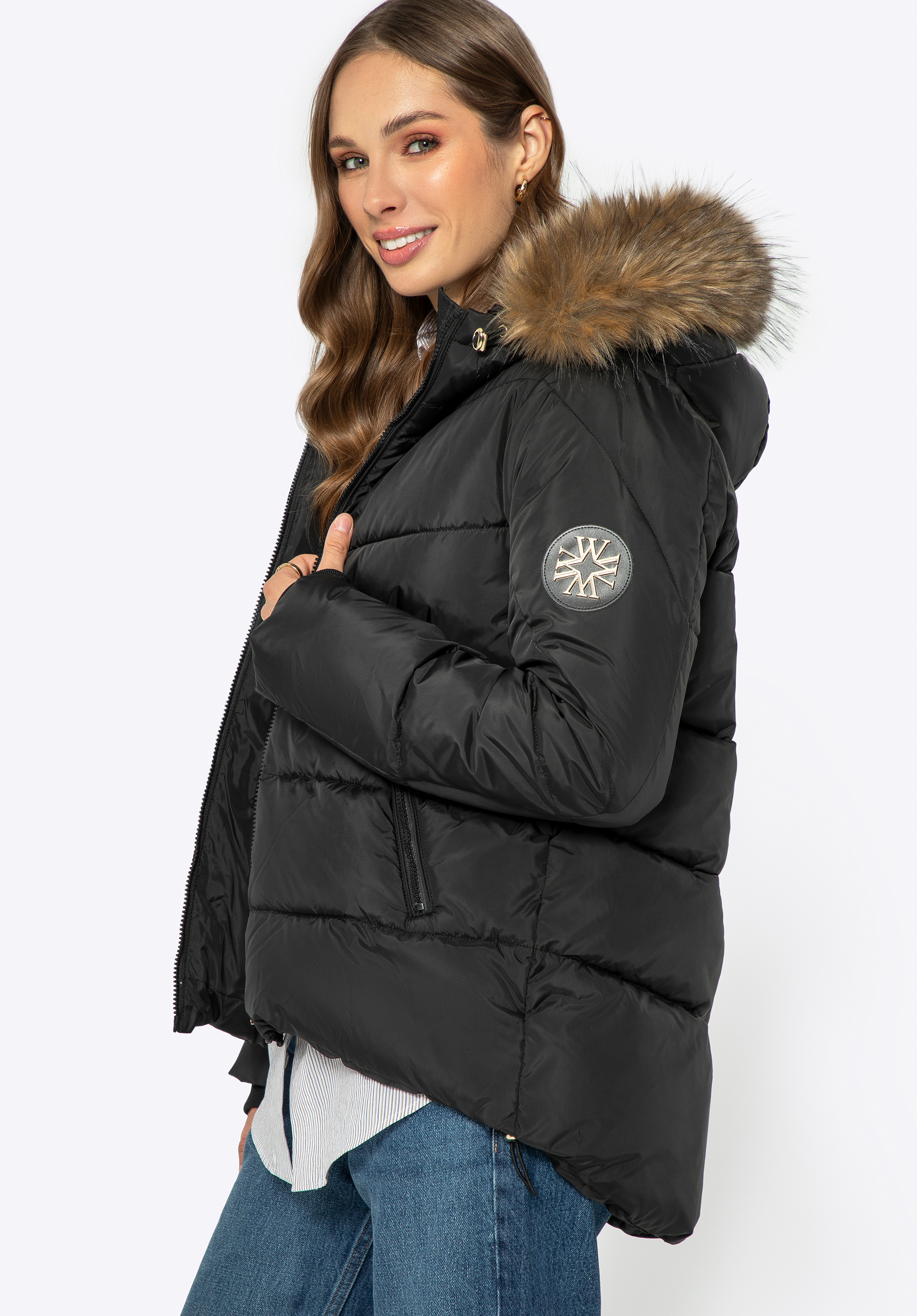 Dámska páperová bunda s odnímateľnou kapucňou z umelej kožušiny