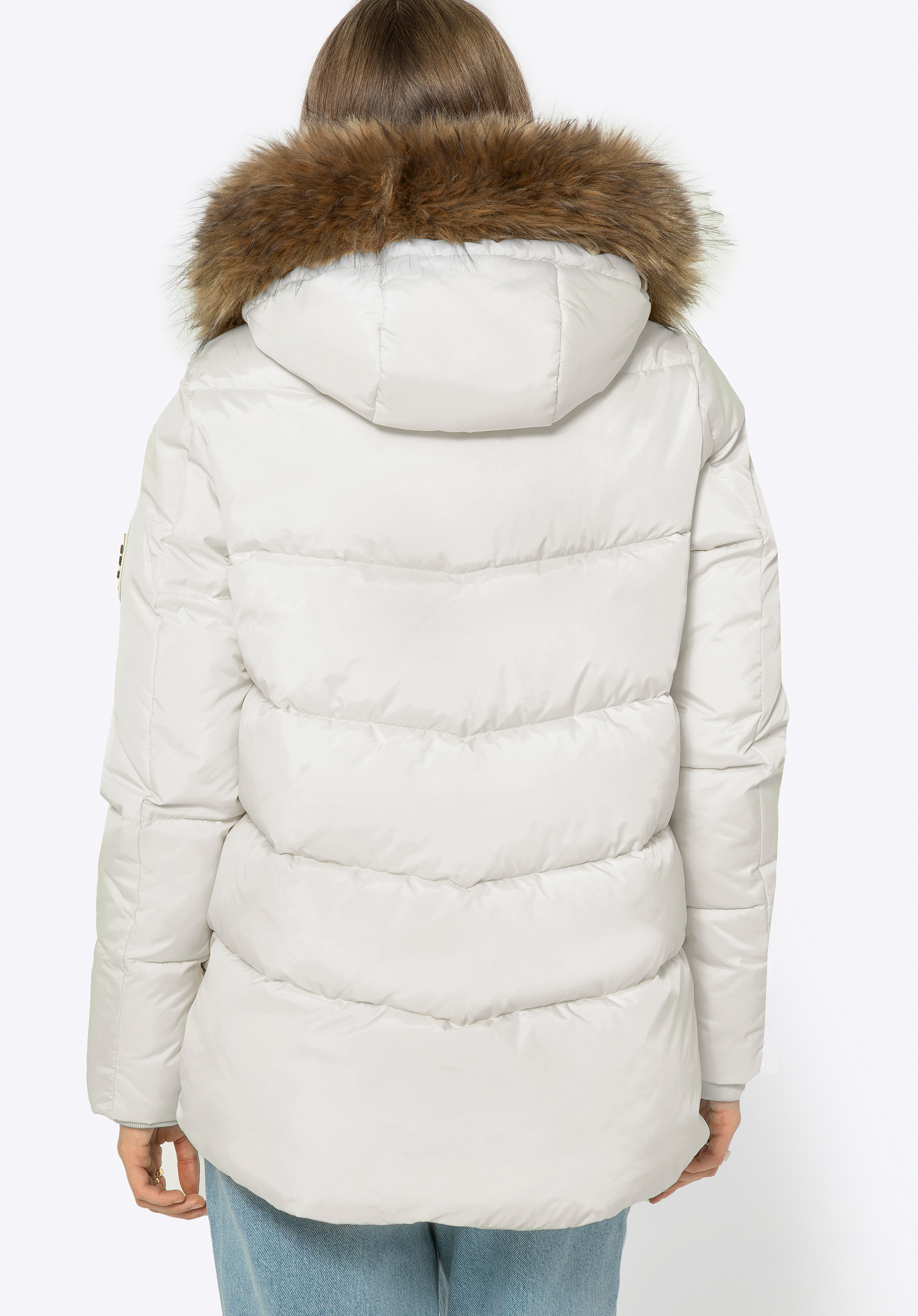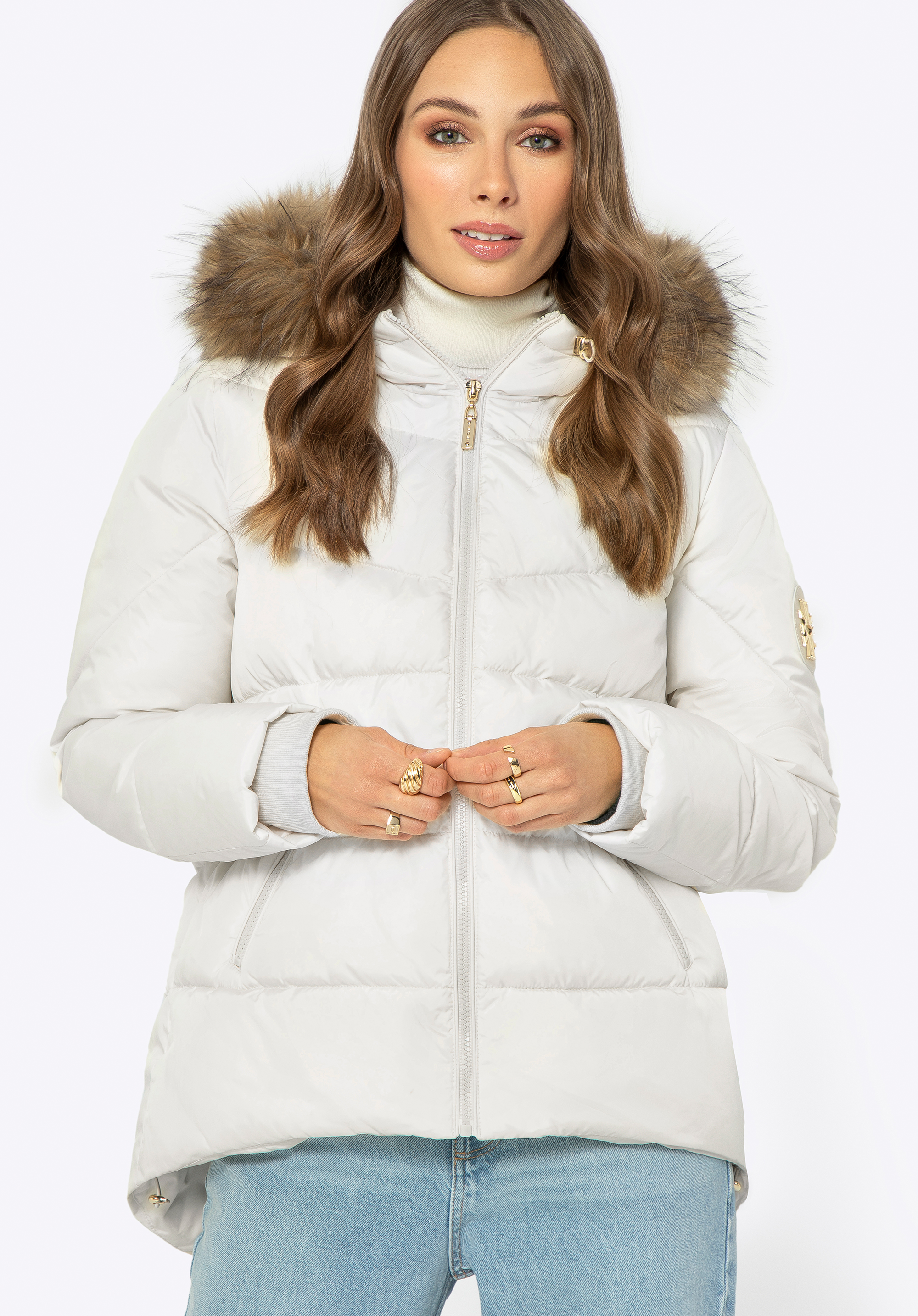 Dámska páperová bunda s odnímateľnou kapucňou z umelej kožušiny
