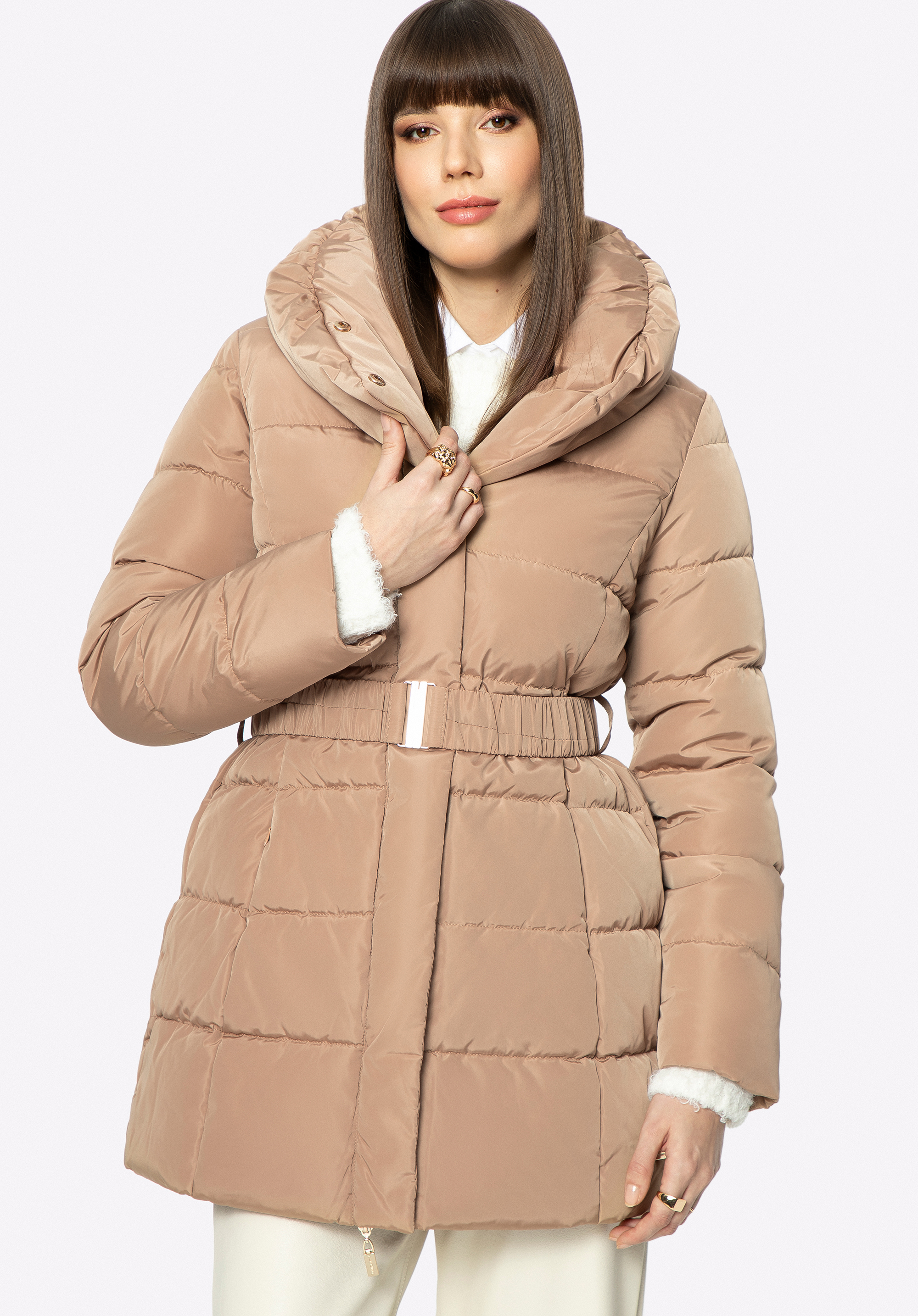 Dámska páperová bunda s opaskom a vysokým golierom je skvelou voľbou do práce aj po práci. Môžete ho nosiť k obľúbeným šatám a elegantným členkovým topánkam na podpätkoch, rovnako ako k džínsom, svetru a traperom na hrubej podrážke.