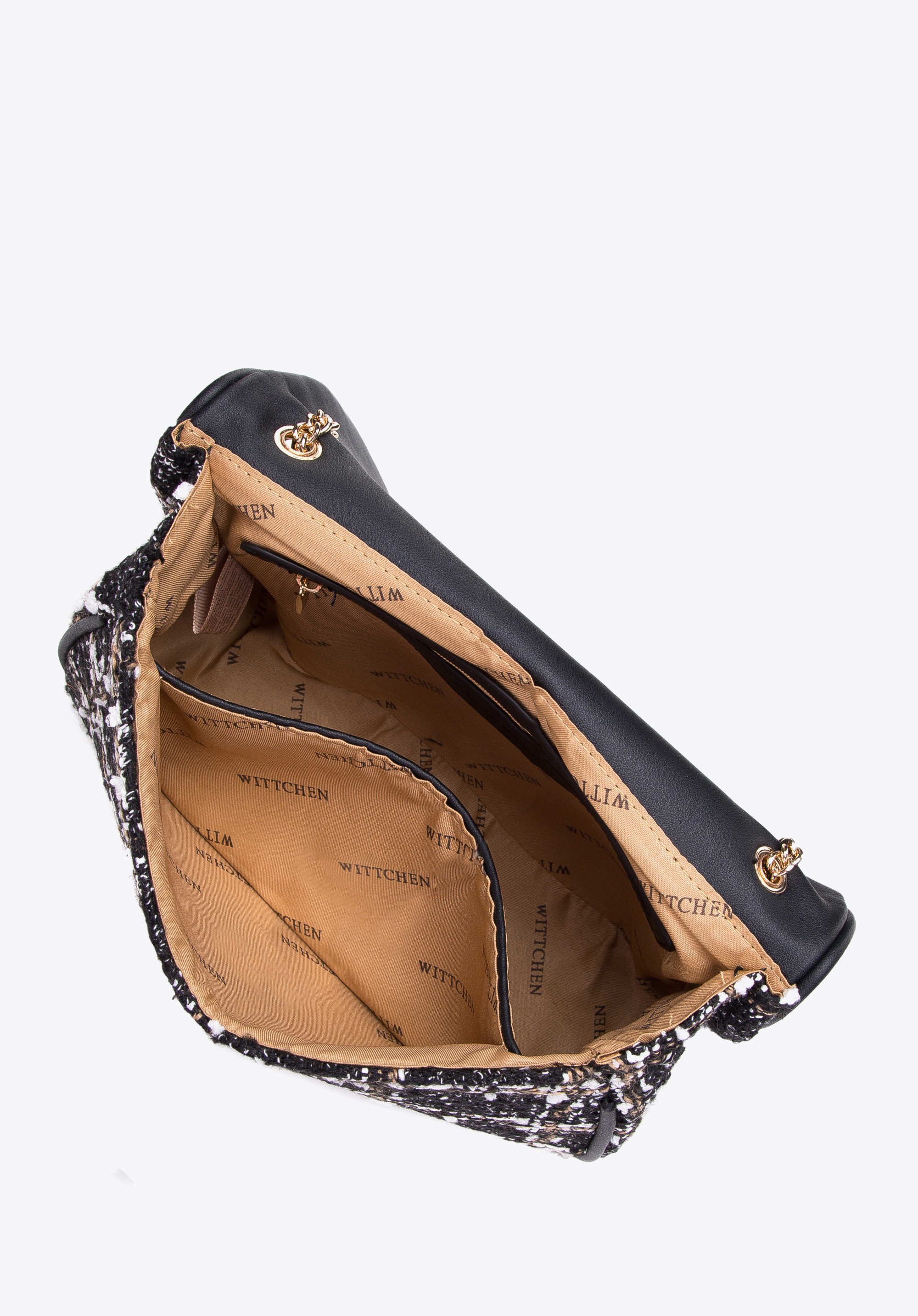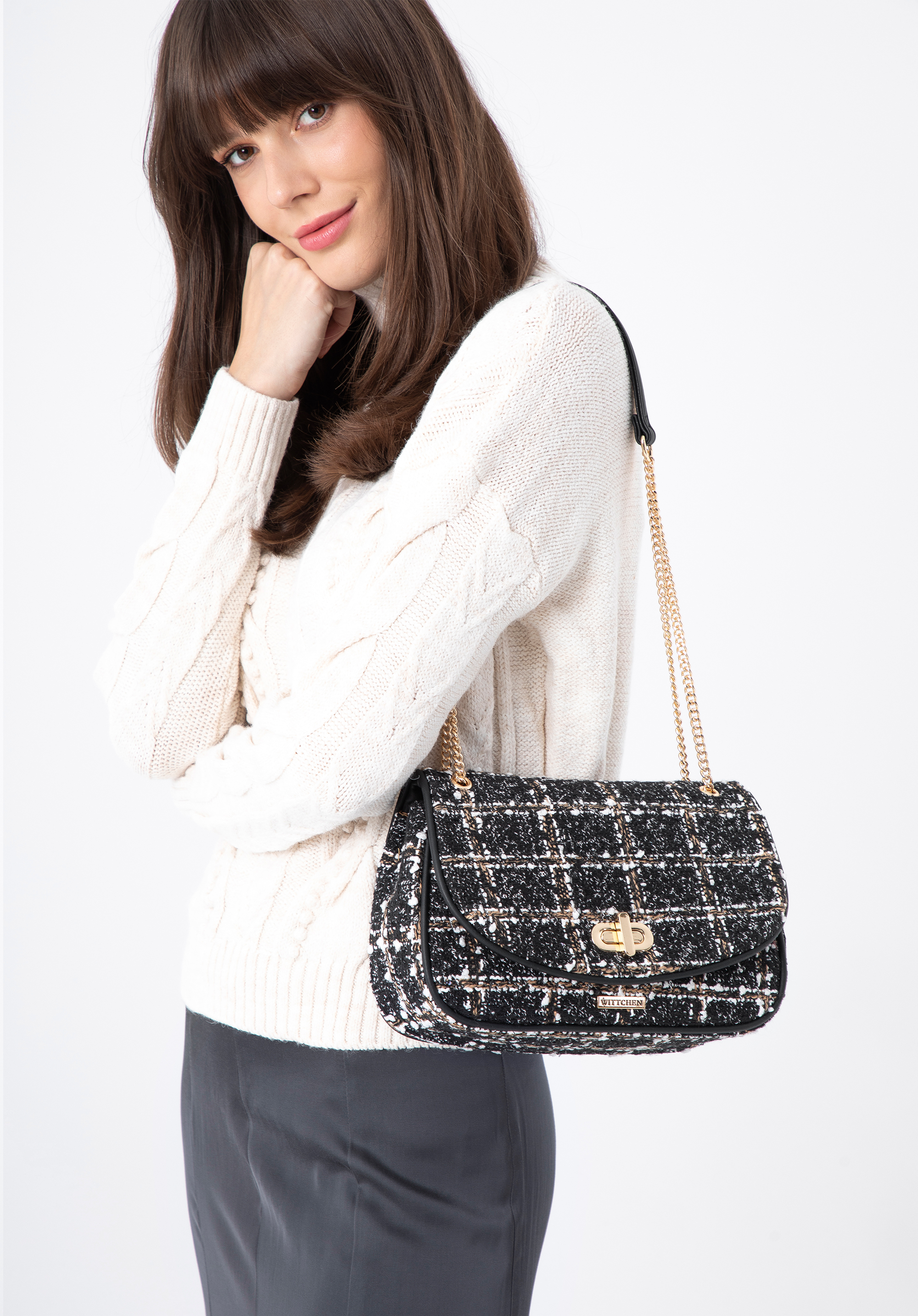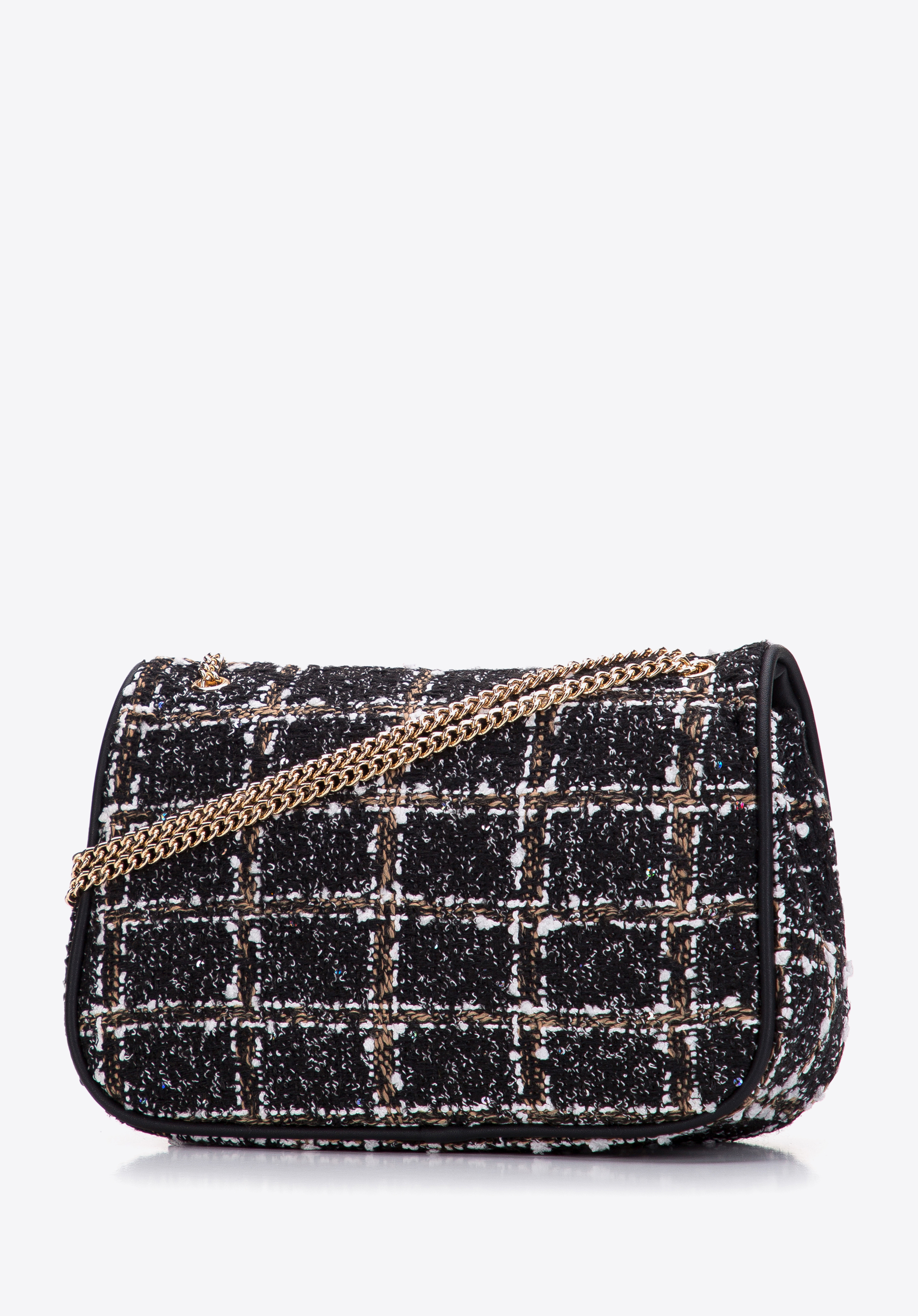Dámska poštová kabelka z látky boucle na retiazke je skvelou voľbou pre milovníčky doplnkov s charakterom.