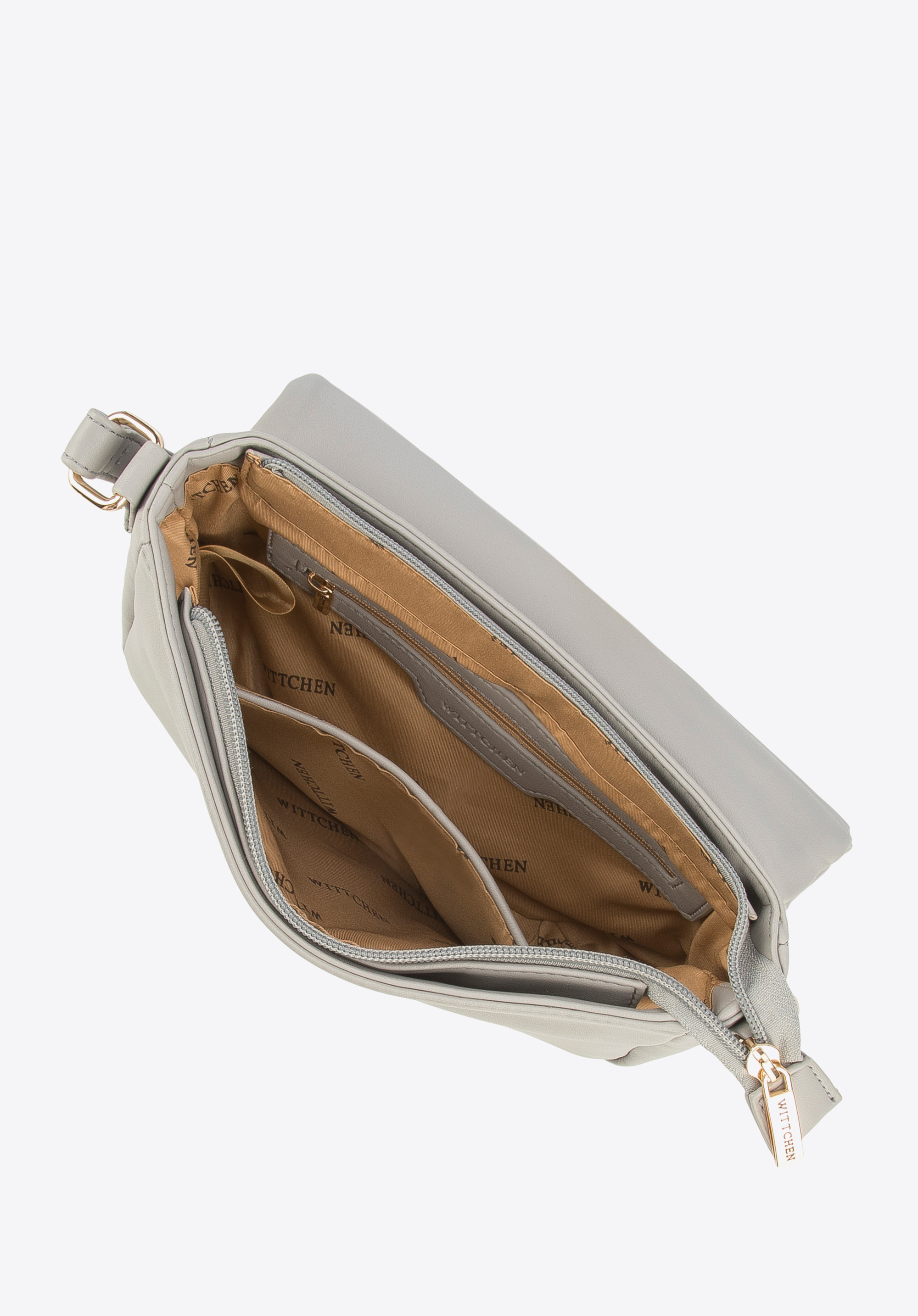 Hladkú obdĺžnikovú chlopňu zdobí lesklé logo WITTCHEN. Do tejto