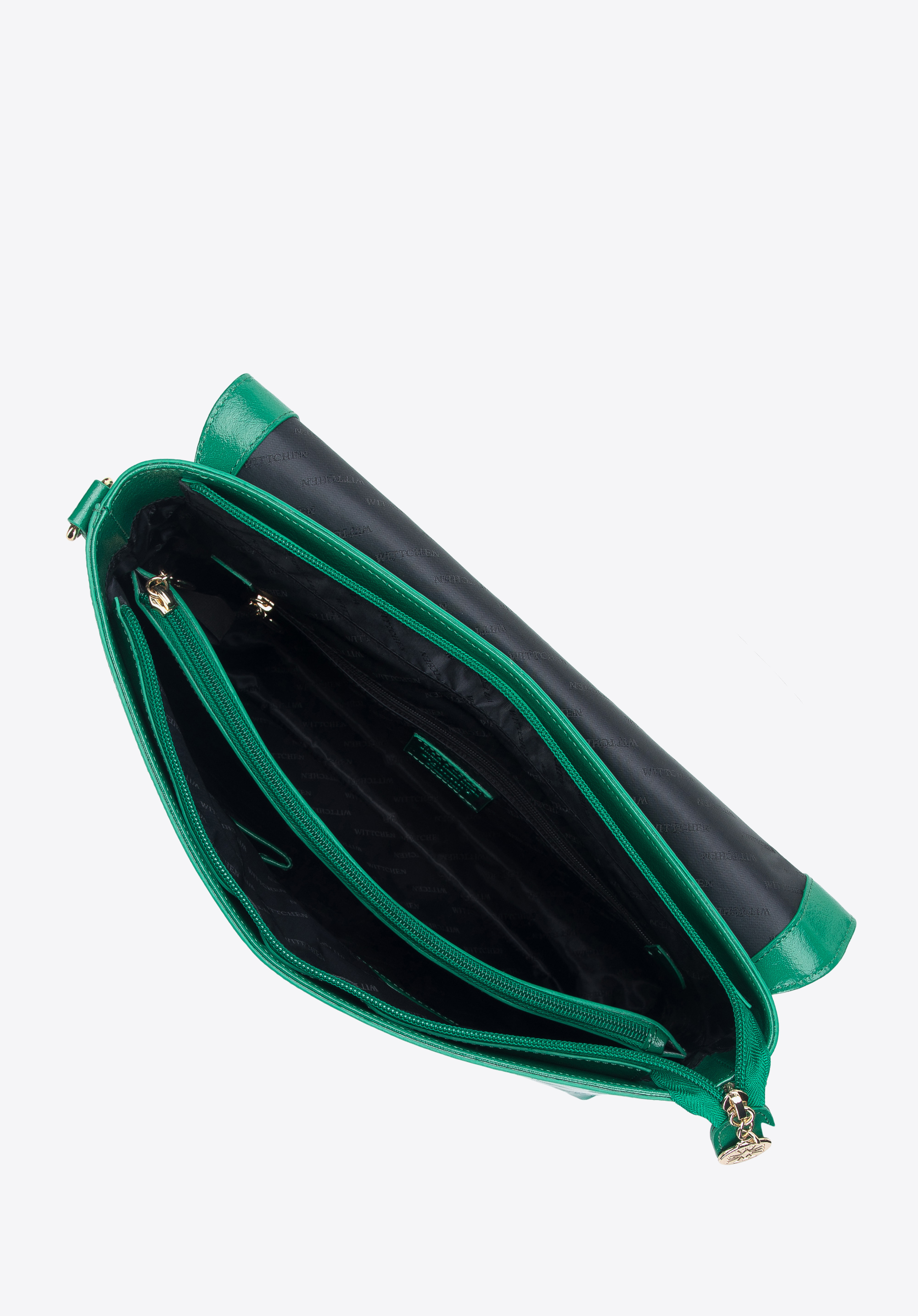 dámsku poštovú kabelku z metalickej lakovanej kože môžete si vziať na univerzitu, do kancelárie alebo na prechádzku – v každej situácii budete vyzerať originálne.