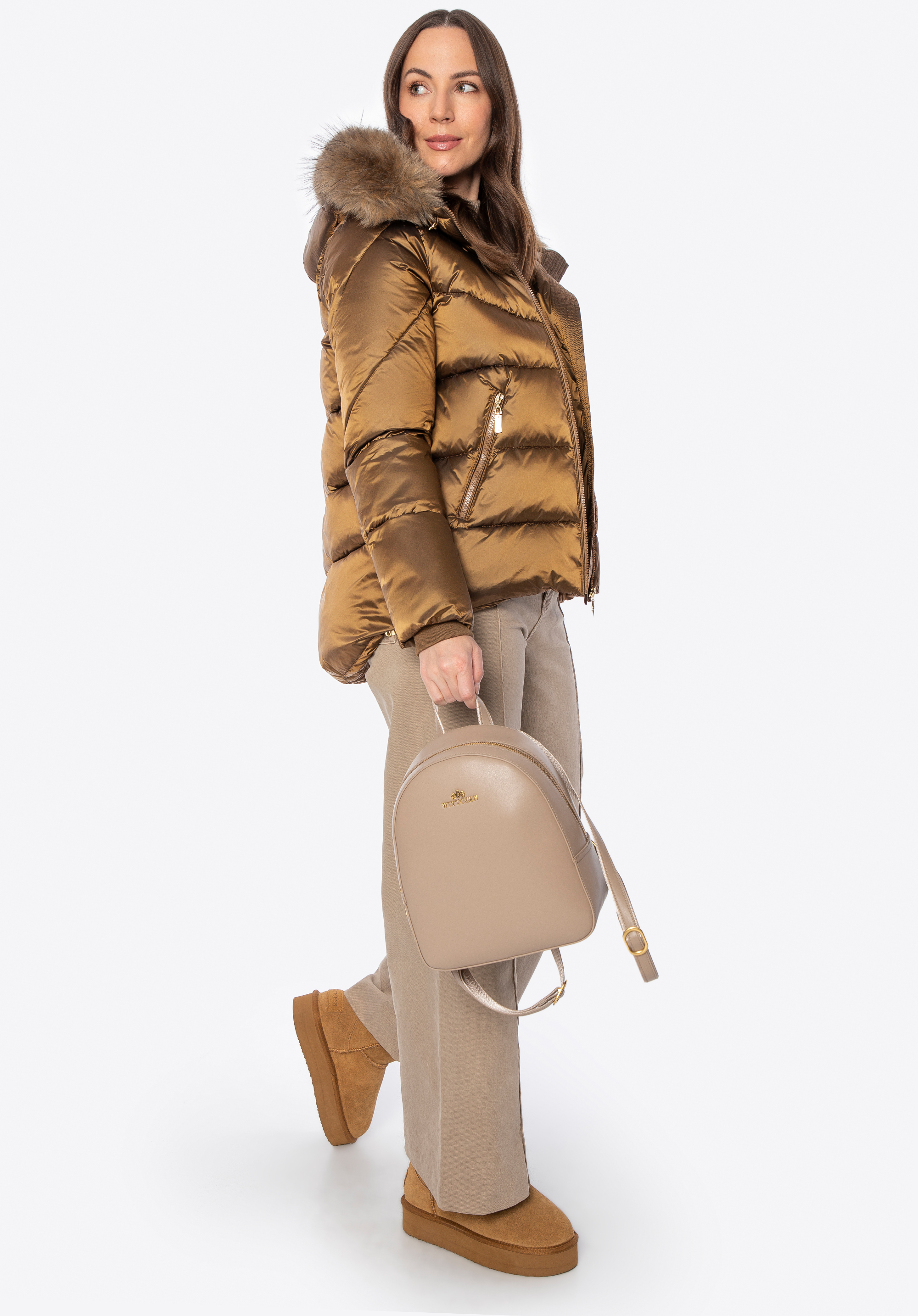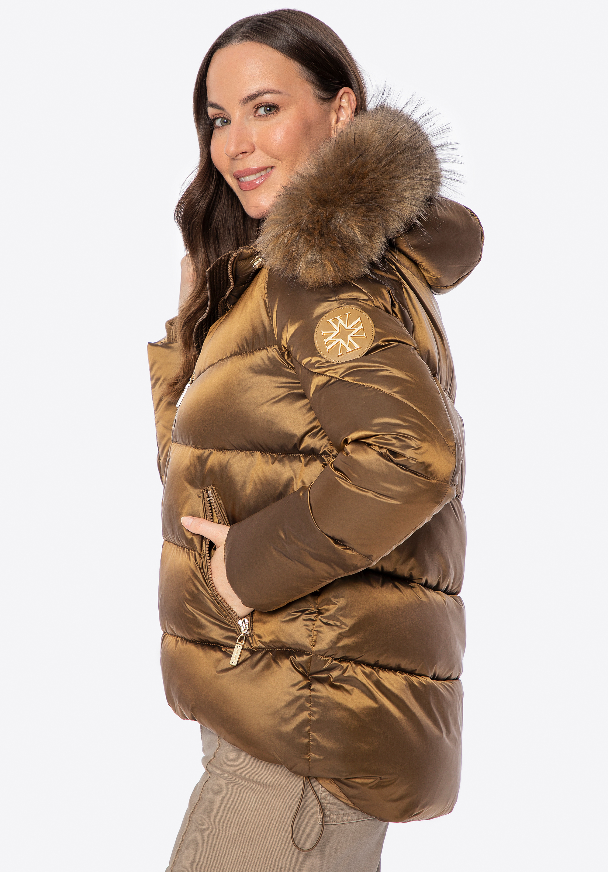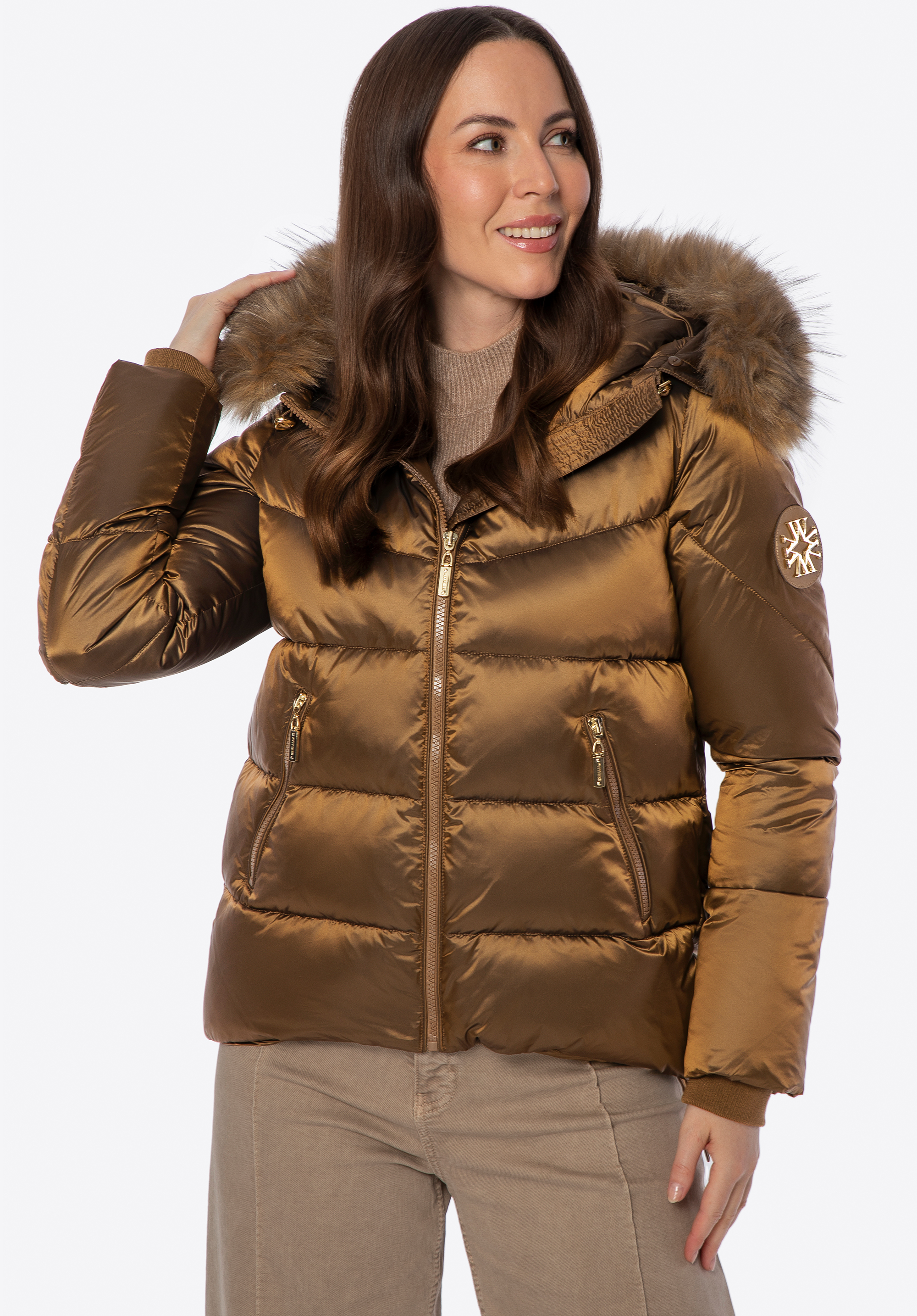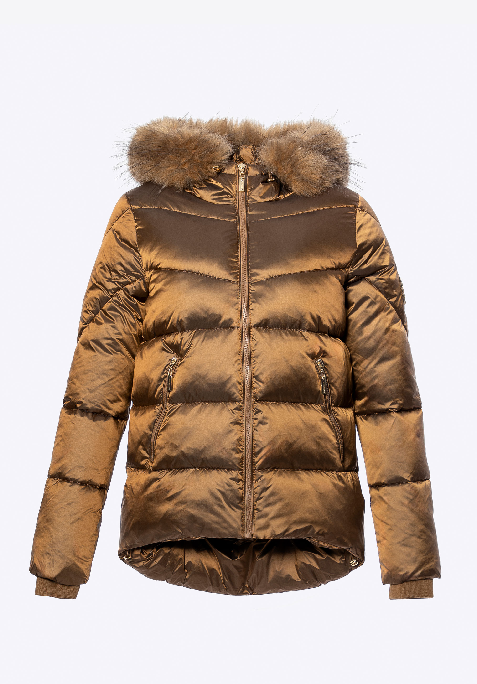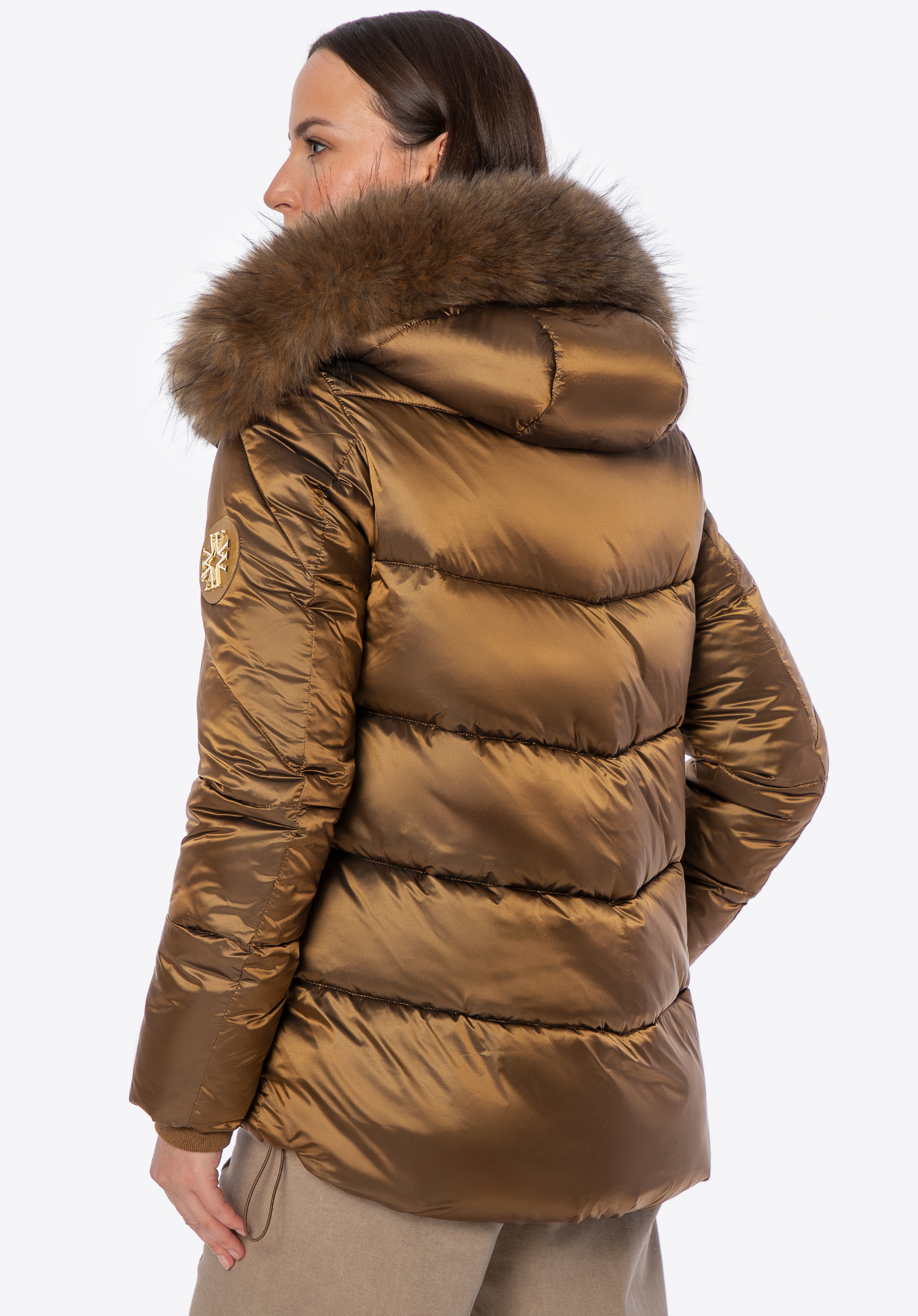 - Odnímateľná kapucňa s lemom z umelej kožušiny: Štýlový detail, ktorý chráni pred chladom a umožňuje prispôsobiť vzhľad bundy počasiu.