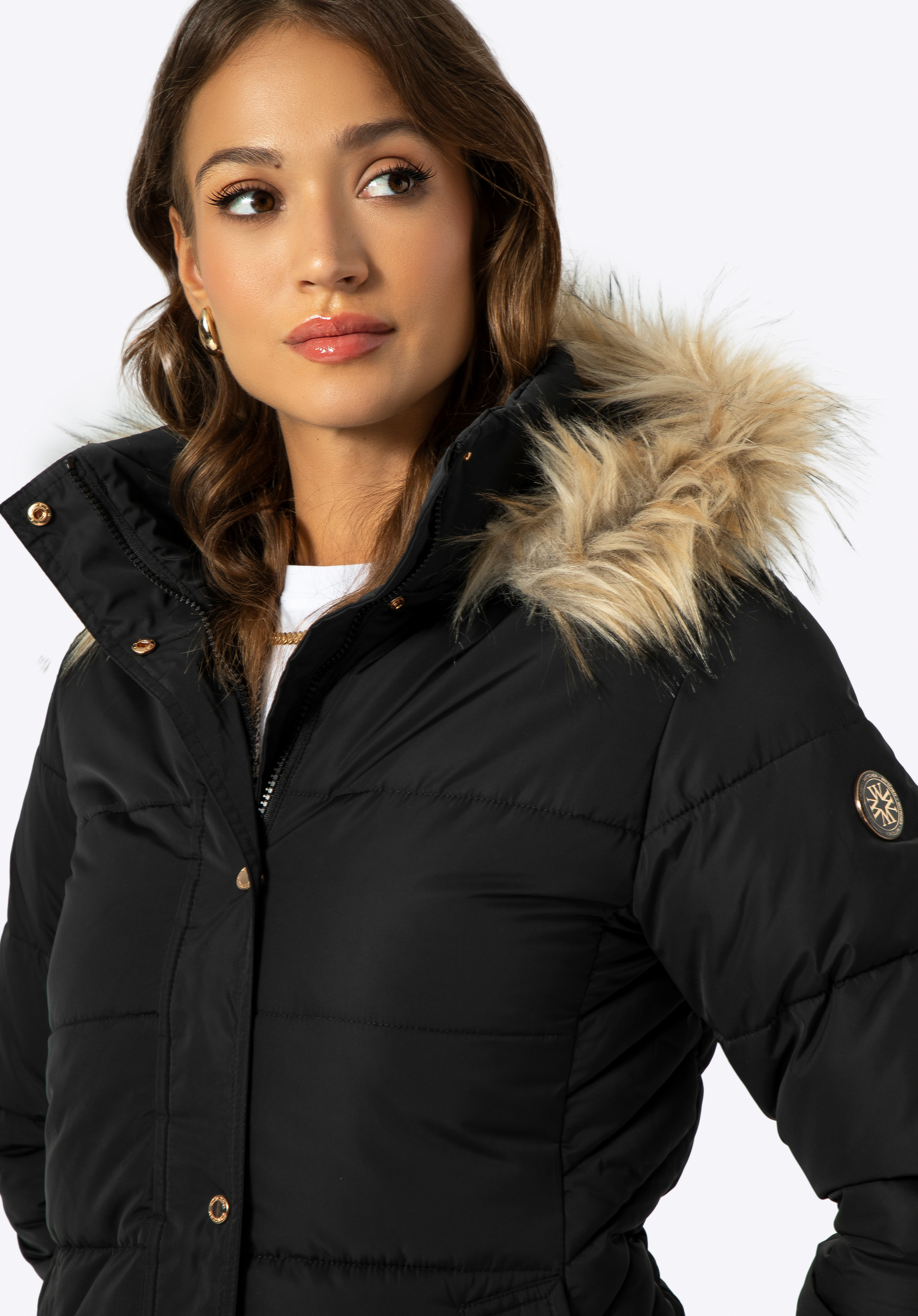 - Praktickosť: Odnímateľná kapucňa je lemovaná umelou kožušinou, ktorá dodáva eleganciu a teplo. Nastaviteľná šnúrka vám umožní prispôsobiť kapucňu pre lepšiu ochranu pred vetrom a dažďom.