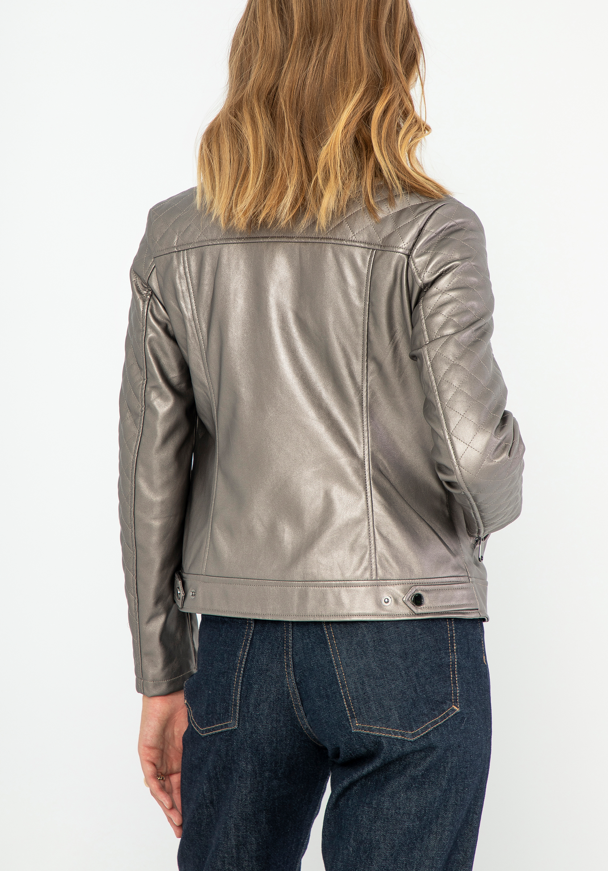- Materiál: Bunda vyrobená z ekokože je odolná, ľahko sa udržiava a je odolná voči atmosférickým podmienkam.