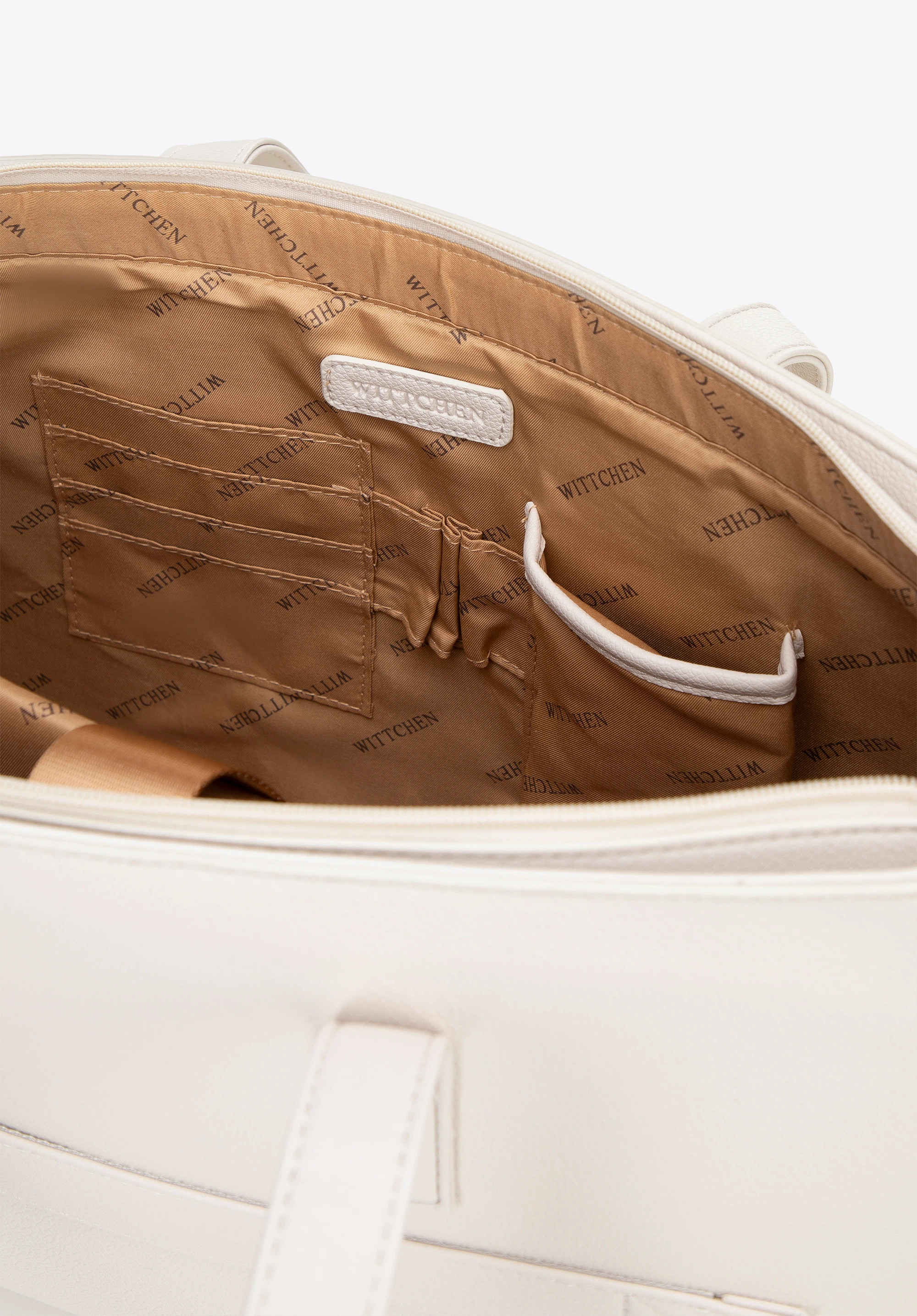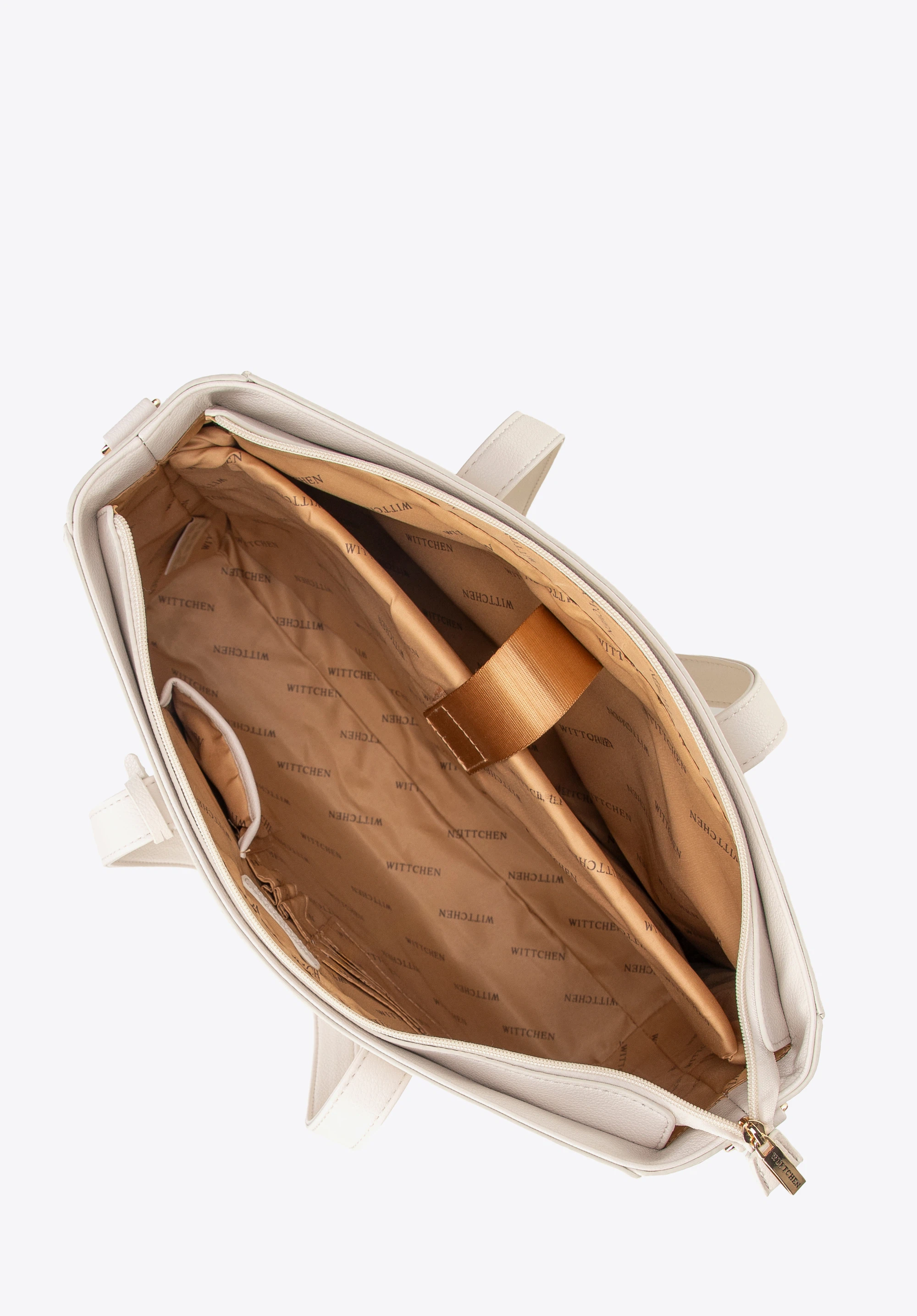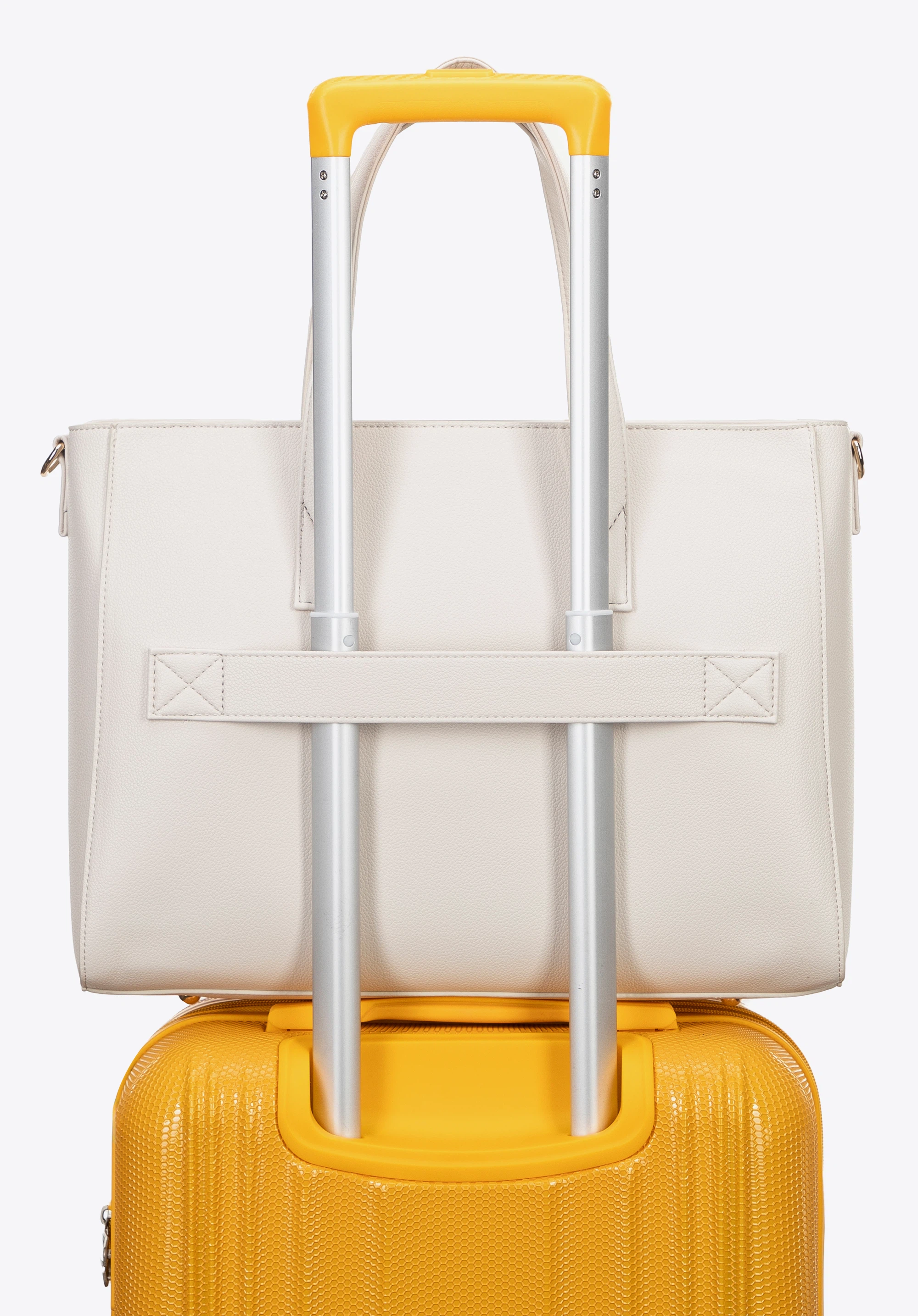Naša taška na 16-palcový notebook dokonale spája klasický dizajn s ženskou eleganciou. Je vyrobená z umelej kože , pýši sa rafinovanou siluetou a decentnými akcentmi, ako je odnímateľný strapec na rukoväti. Zapína sa na zips a má praktický interiér s polstrovanou priehradkou na 16-palcový notebook (23 × 38 cm) a vyhradenými priehradkami na drobnosti a dokumenty – všetko na svojom mieste, vždy po ruke.