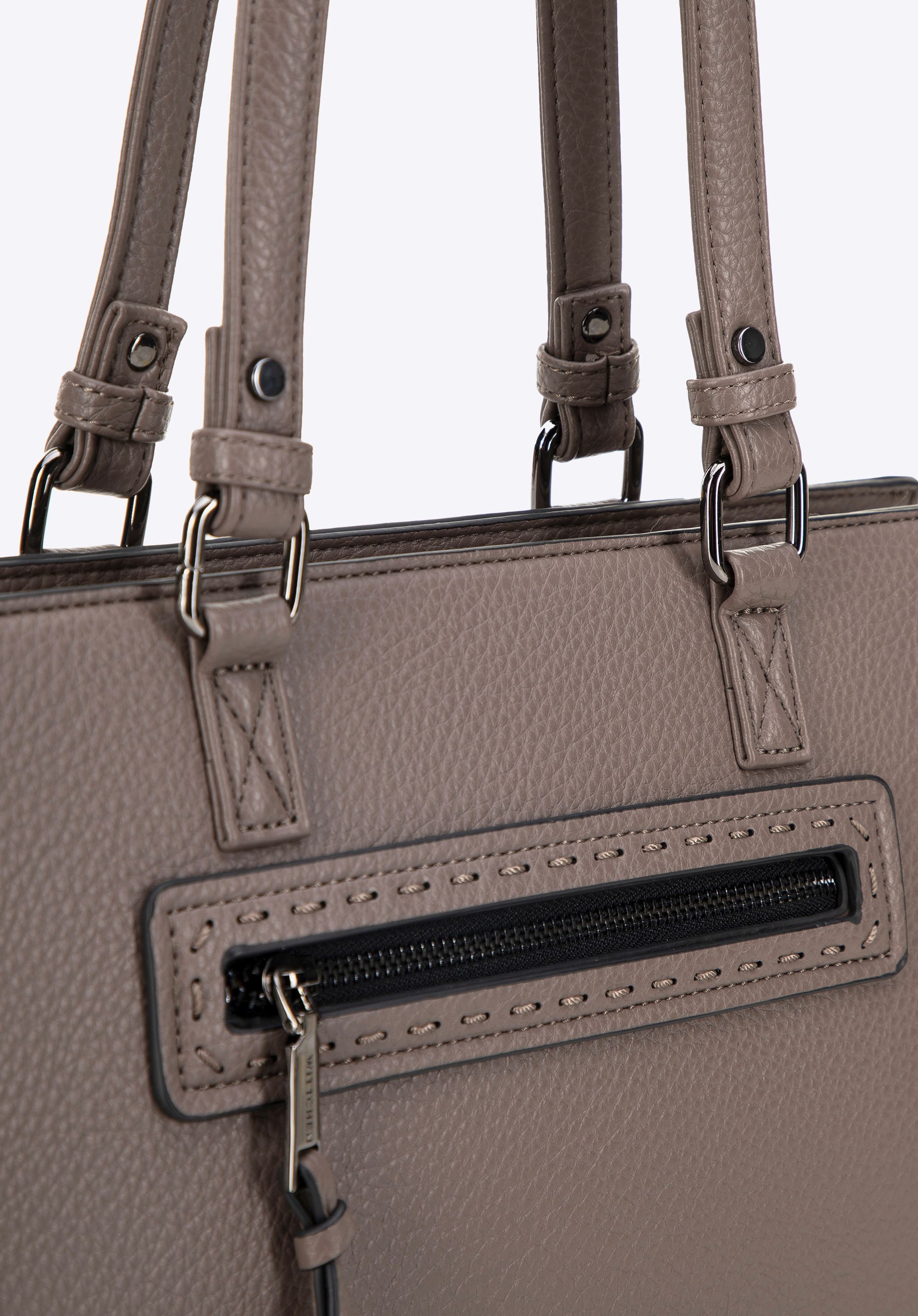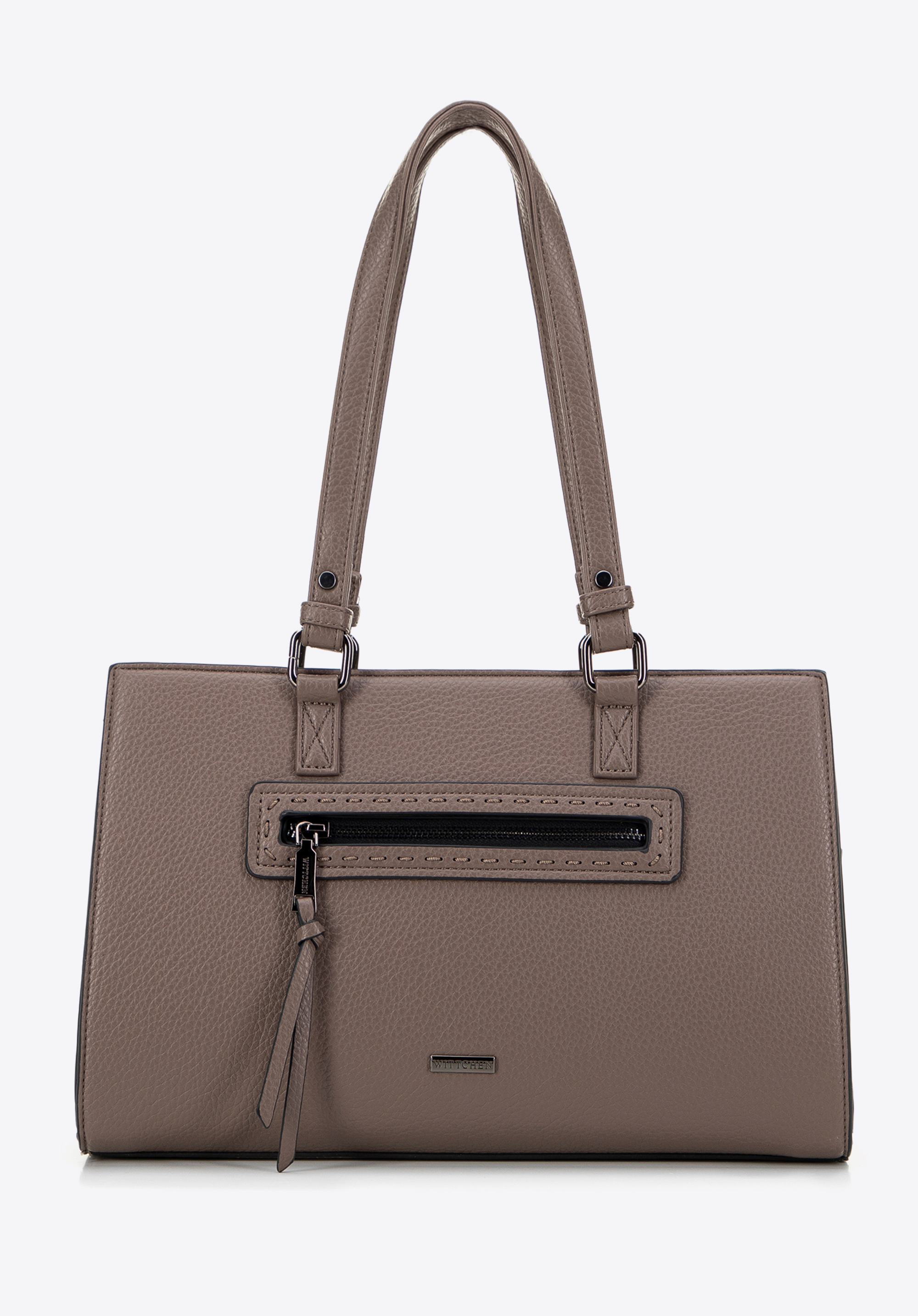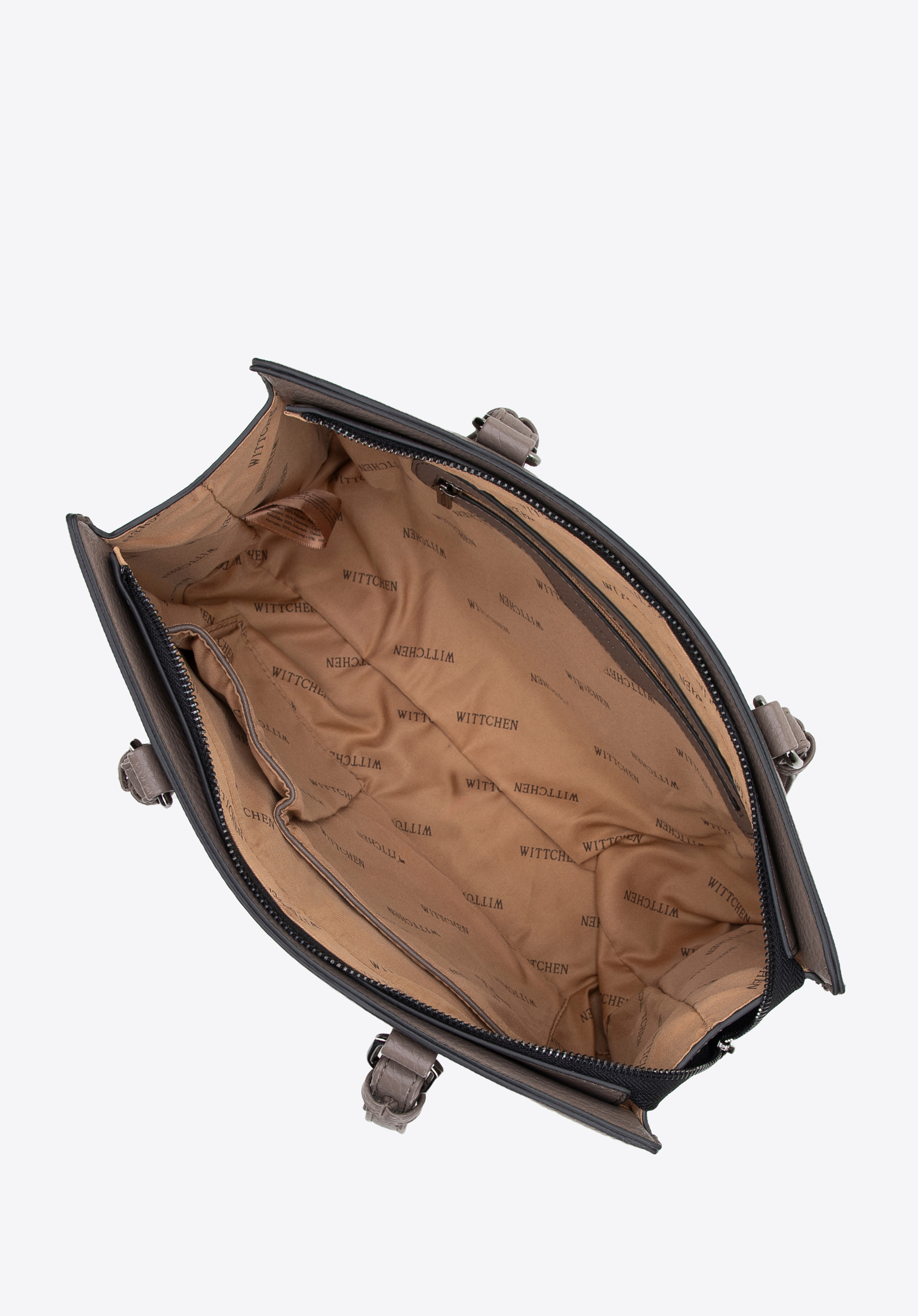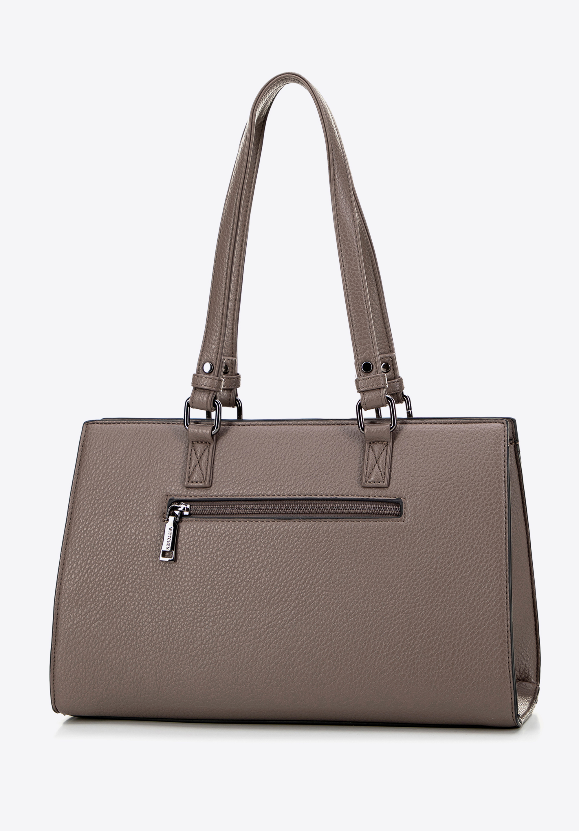 Naša jedinečná dámska kabelka z ekokože je esenciou elegancie a funkčnosti. Vystužené dno a dve elegantné rukoväte zaručujú nielen pohodlie, ale aj spoľahlivosť pri každodennom používaní. Vďaka jednokomorovému interiéru bude usporiadanie vašich vecí mimoriadne jednoduché a efektívne. Tu nájdete všetko, čo potrebujete pre vašu organizáciu: dve malé otvorené vrecká a vrecko na zips, ktoré zaručujú dodatočný priestor pre malé predmety. Vonkajšie vrecká na zips umiestnené na oboch stranách tašky poskytujú rýchly prístup ku kľúčovým položkám. Vrecko na prednej strane zdobené ozdobným švom dodáva eleganciu a noblesu. Logo WITTCHEN, viditeľné na prednej a vnútornej strane tašky, zdôrazňuje jedinečný charakter výrobku a jeho vysokú kvalitu.