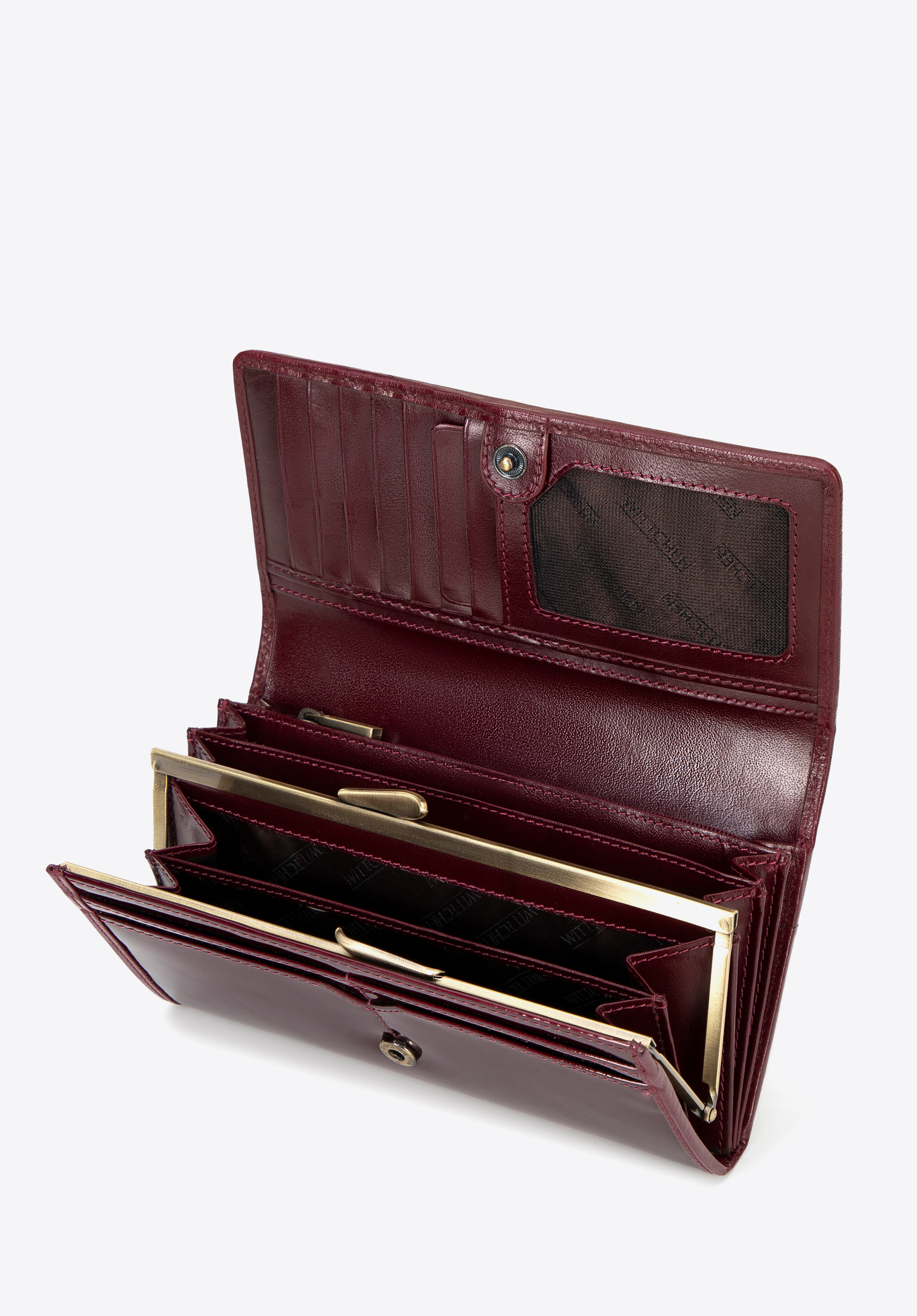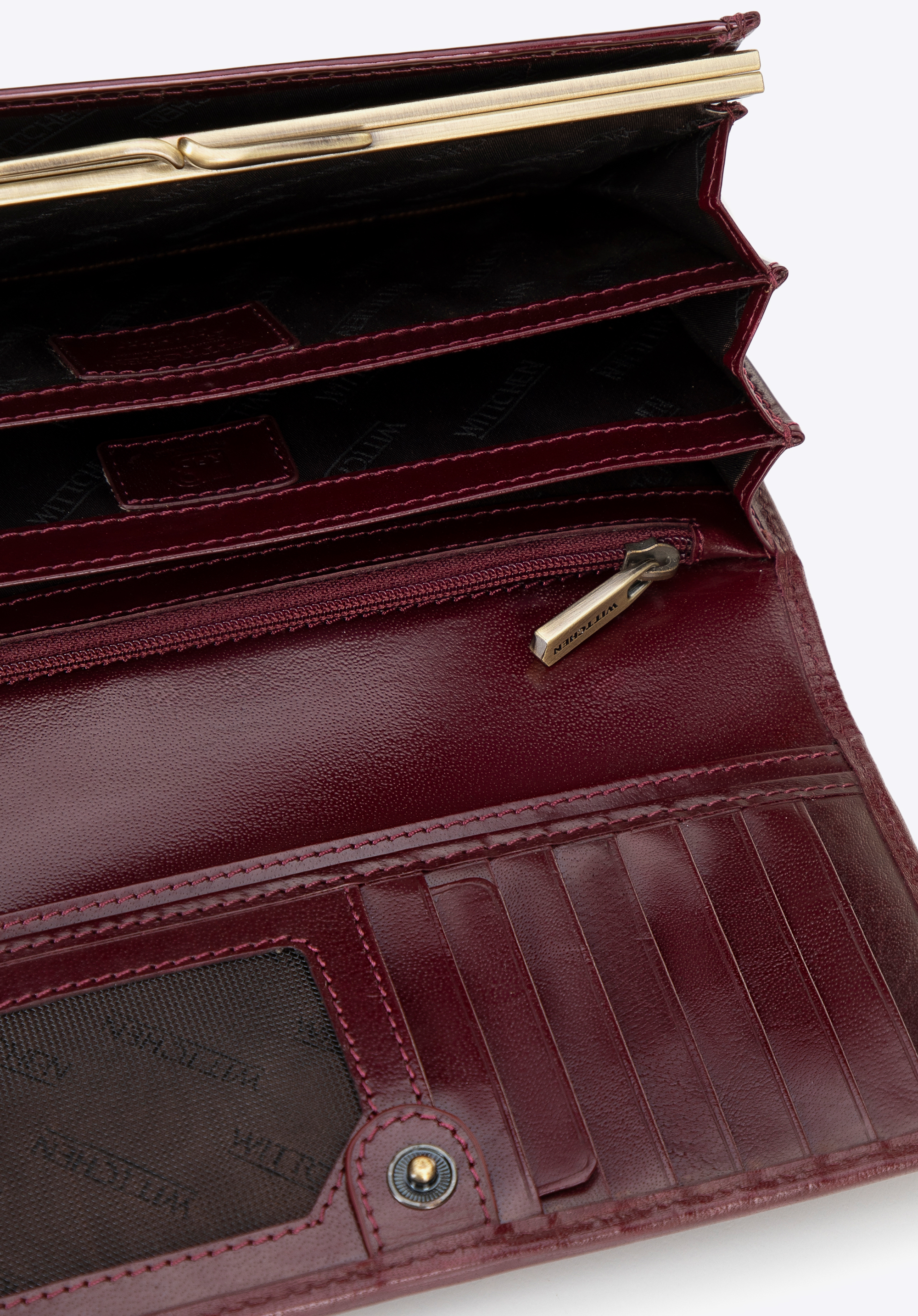 - Premyslená organizácia: Peňaženka obsahuje 3 priehradky na bankovky, 12 priehradiek na karty a 6 vreciek, vrátane 2 priehradiek na zips a priehradky na mince zaistené elegantnou sponou.