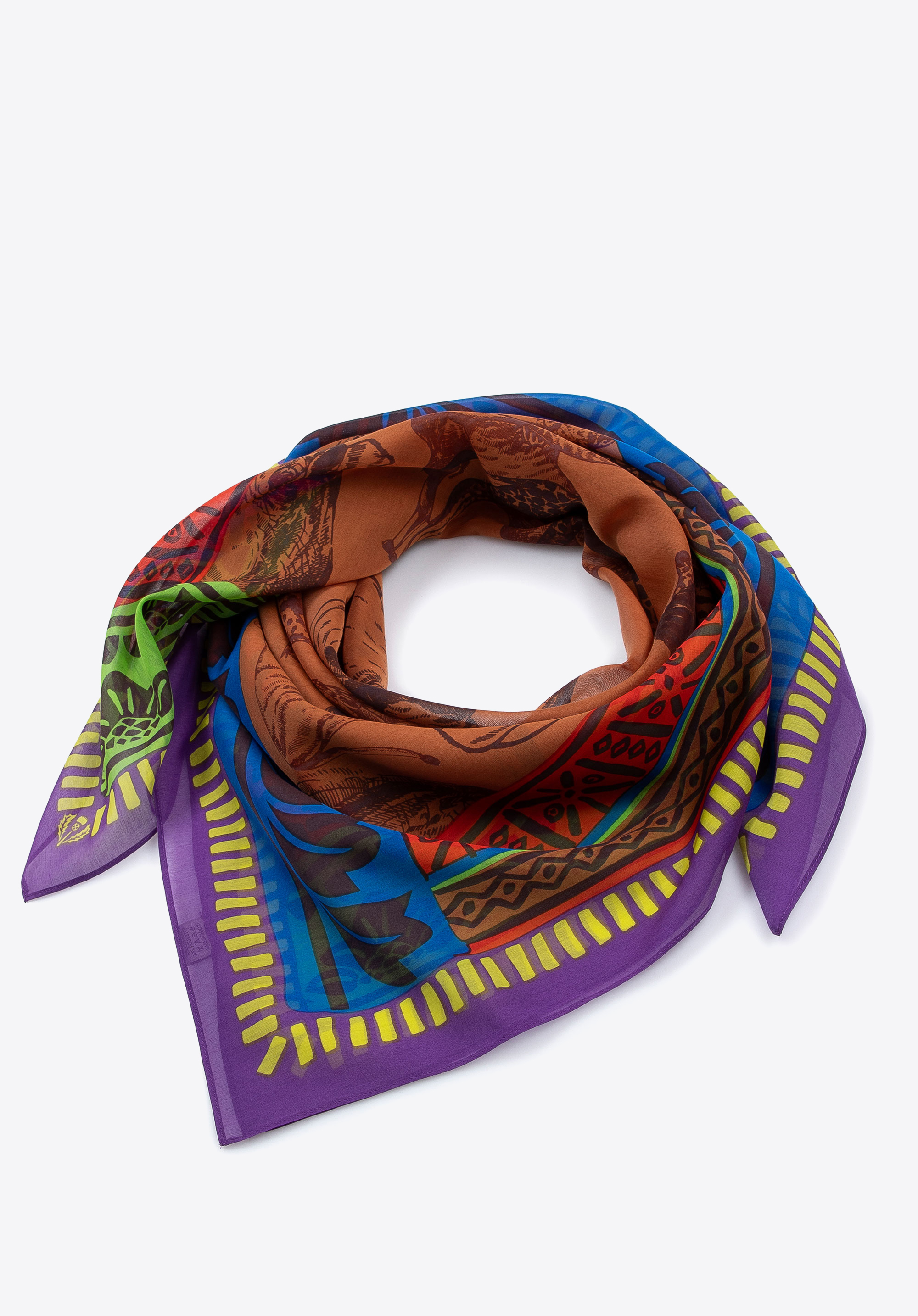 Dámska šatka je ideálnym doplnkom pre každú štylizáciu. Šatka je ľahká, vyrobená zo vzdušnej látky a jej veľkosť umožňuje nosiť ju mnohými spôsobmi: ako šál, pelerínu alebo čelenku. Atraktívny vzor určite spestrí váš outfit. Dámska šatka je viacsezónna: môže chrániť pred slnkom, vetrom a chladom v závislosti od ročného obdobia. Je to praktický a elegantný doplnok vášho šatníka.