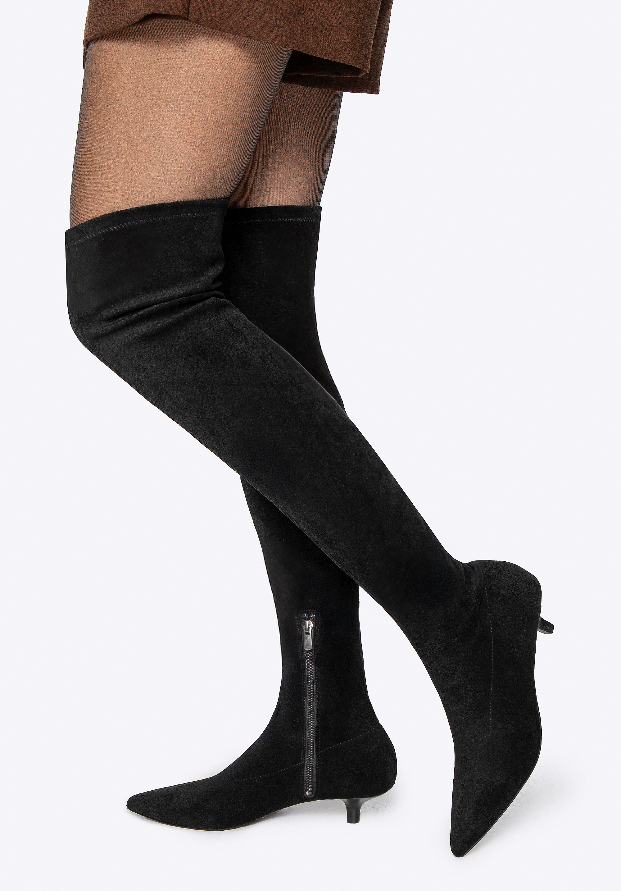 Tieto módne čižmy kombinujú klasickú siluetu s modernými detailmi. Priliehavý strih krásne tvaruje nohu, zatiaľ čo špicatá špička chodidlo zoštíhľuje a dodáva celkovej siluete ľahkosť. Nízky podpätok zaisťuje stabilitu a pohodlie po celý deň a ozdobné šitie dodáva čižmám elegantný a štýlový charakter. Ideálne pre ženy, ktoré si cenia kombináciu elegancie a pohodlia – čižmy, ktoré doplnia každodenné aj sofistikovanejšie outfity.