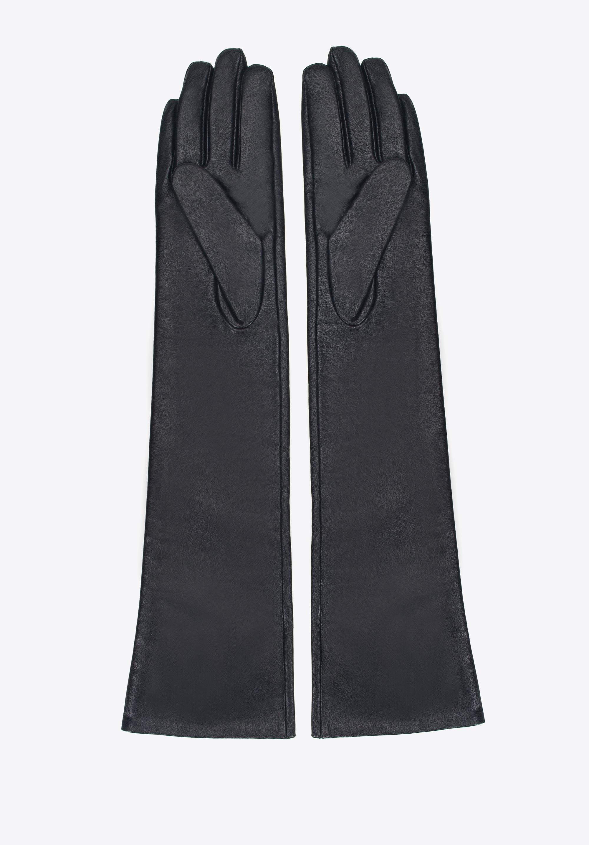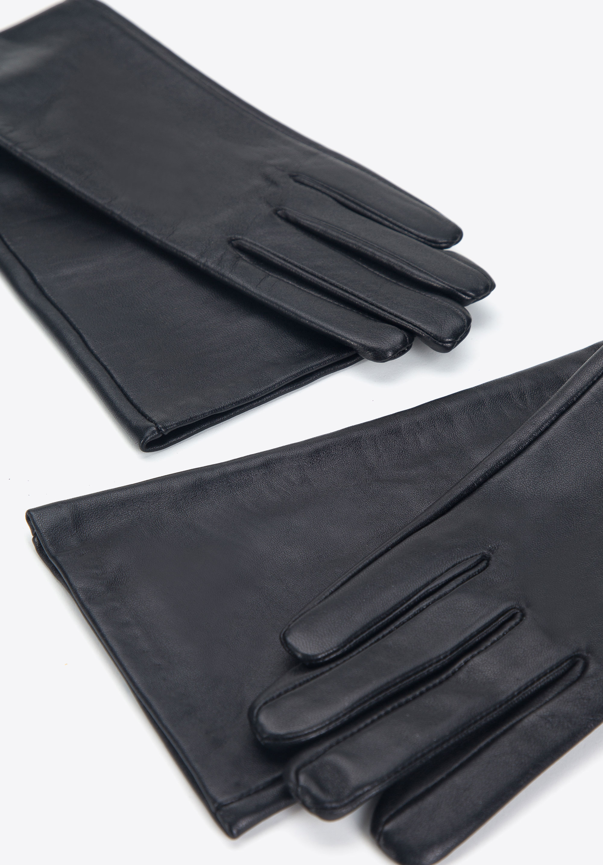 dámske rukavice vyrobené z prírodnej kože. Ich dĺžka sa perfektne hodí ku všetkým večerným outfitom, budú dobre vyzerať aj s kabátom s 3/4 rukávom.