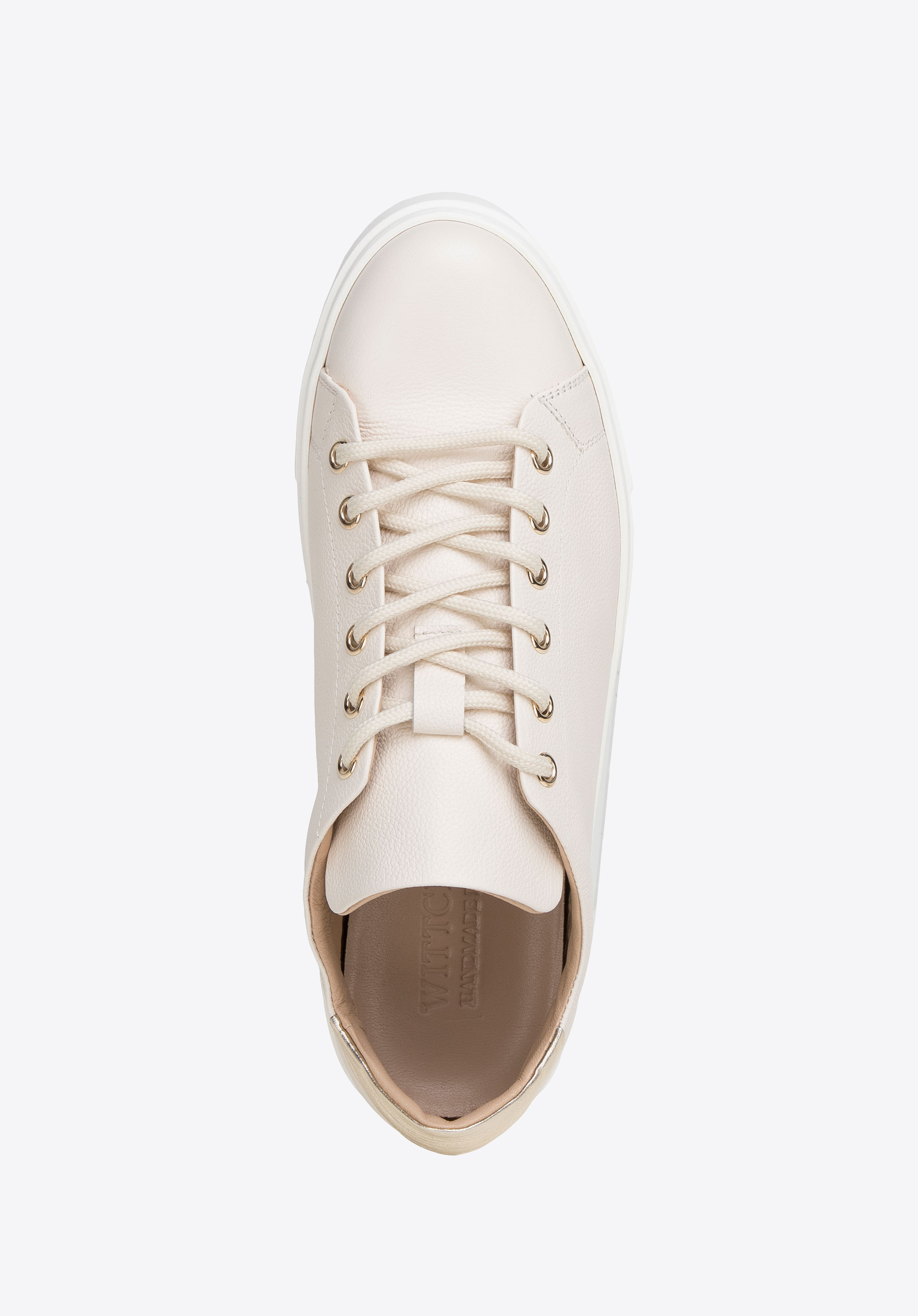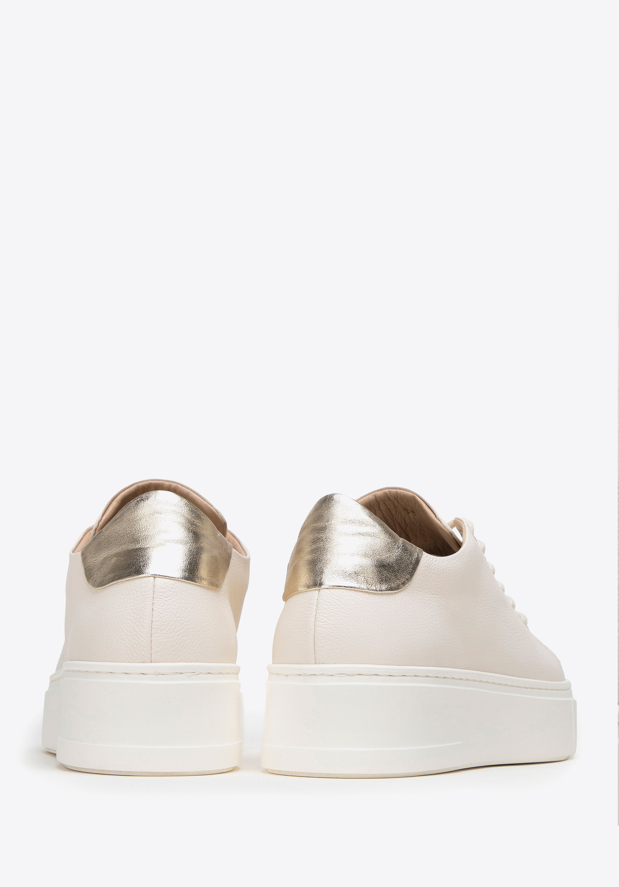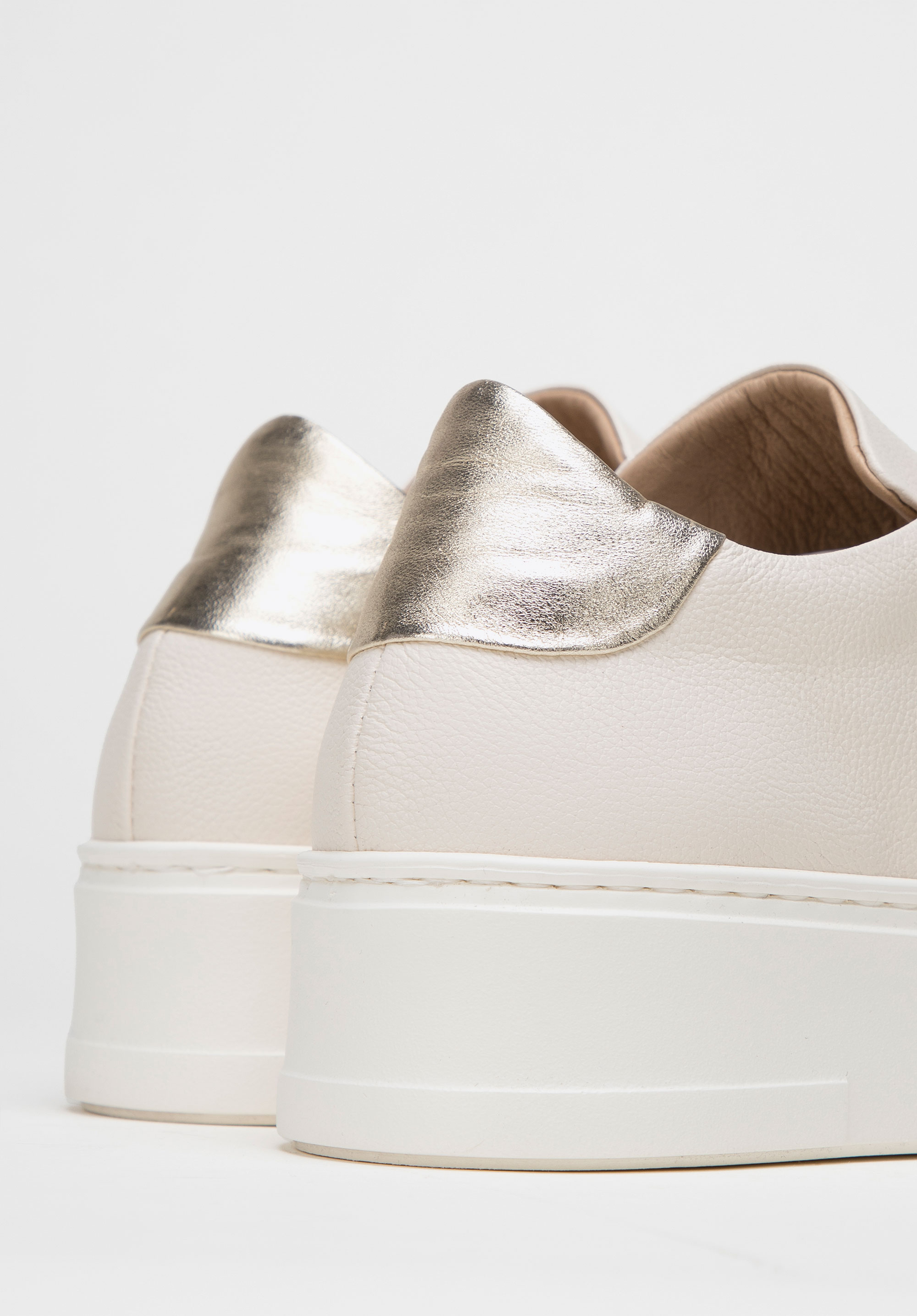 Svetlá farebná schéma je obohatená o lesklú zlatú aplikáciu vo výške päty.