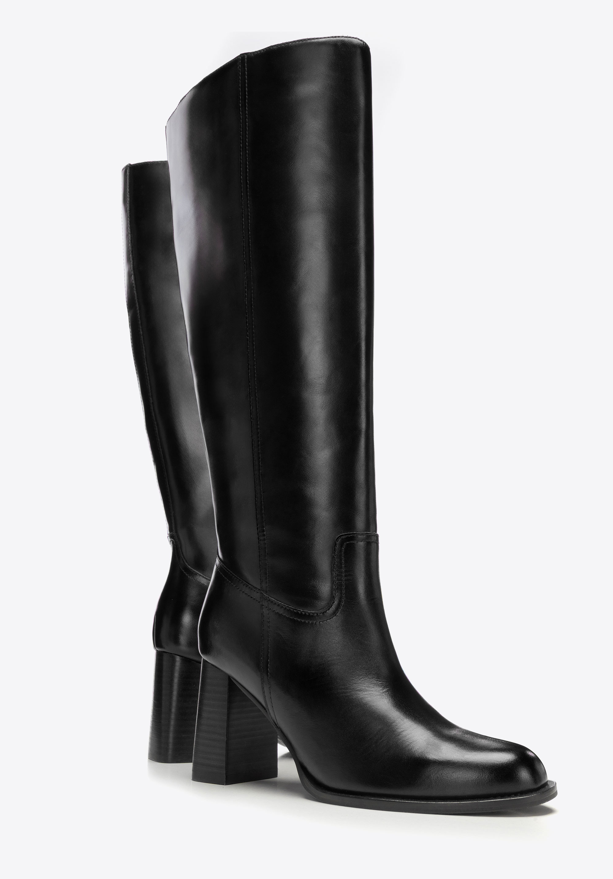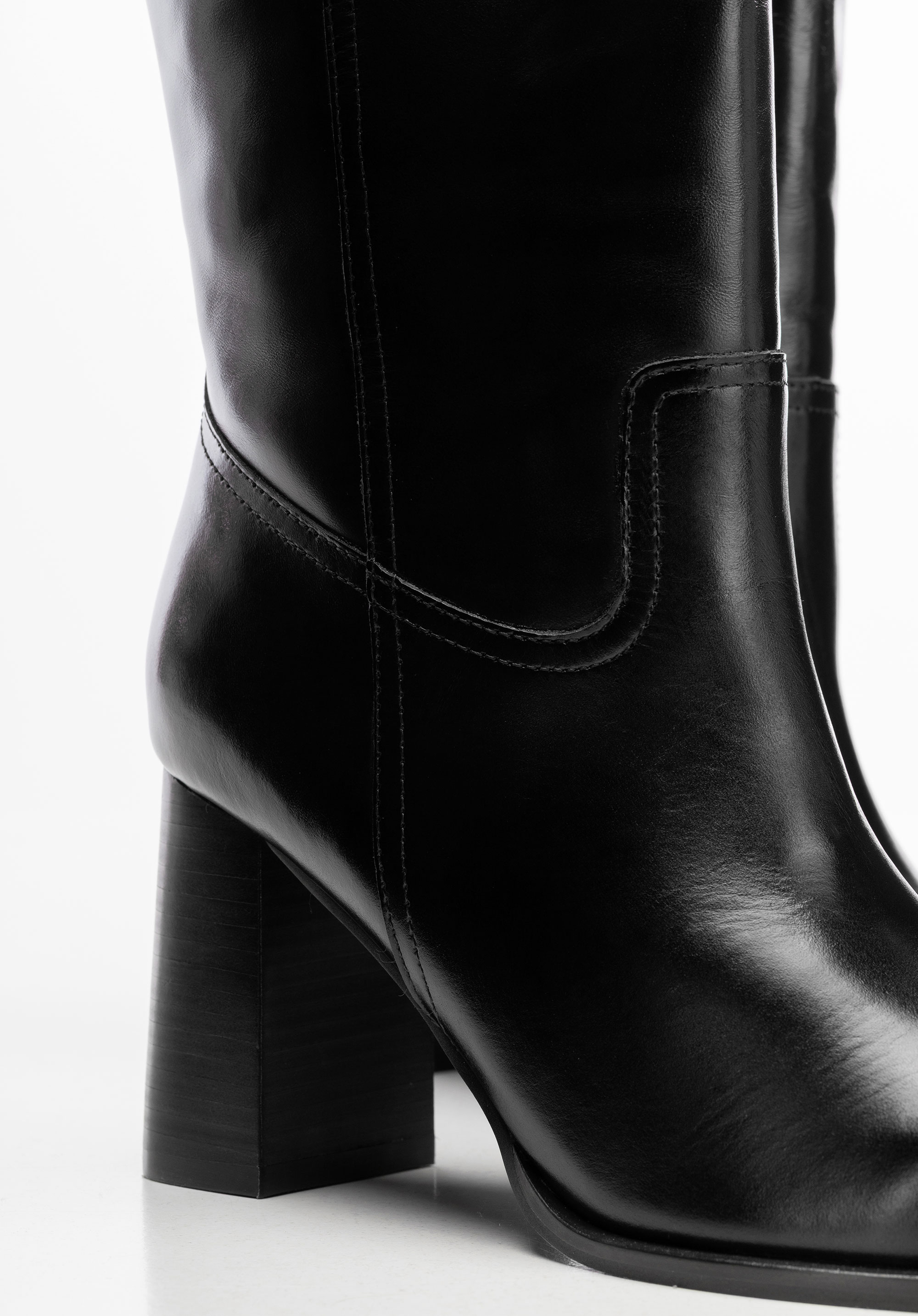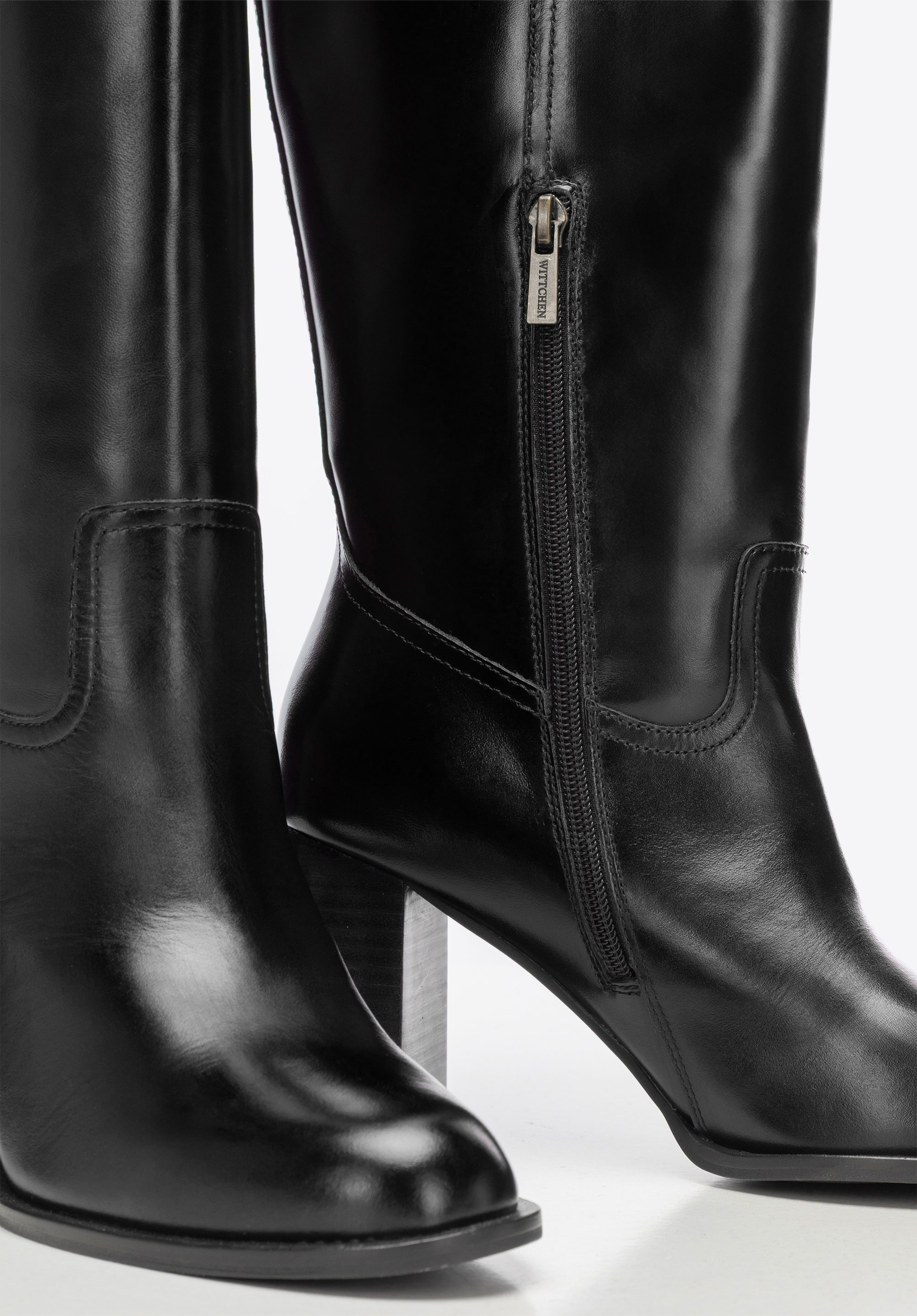 Dámske kožené čižmy na rovnom podpätku Farba: čierna