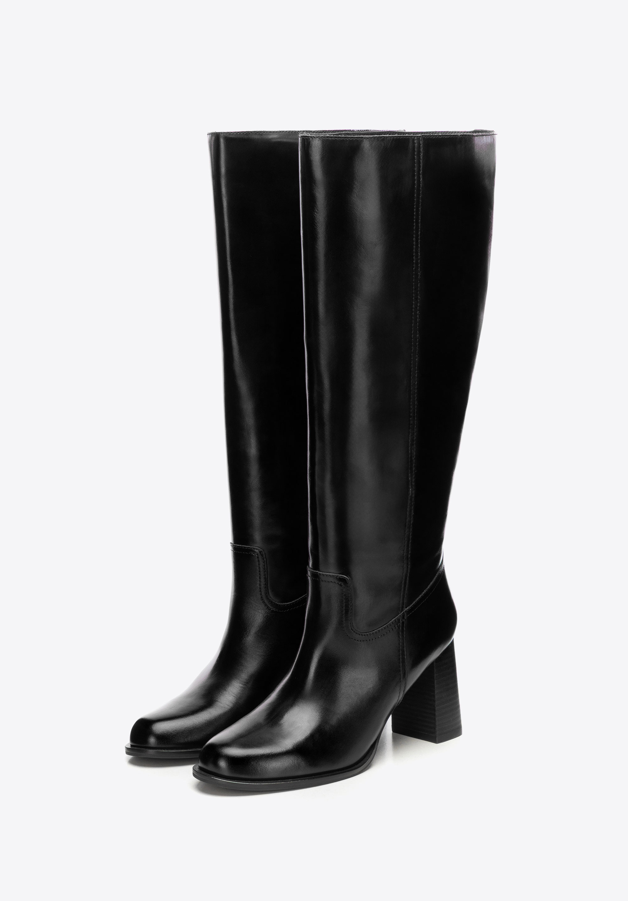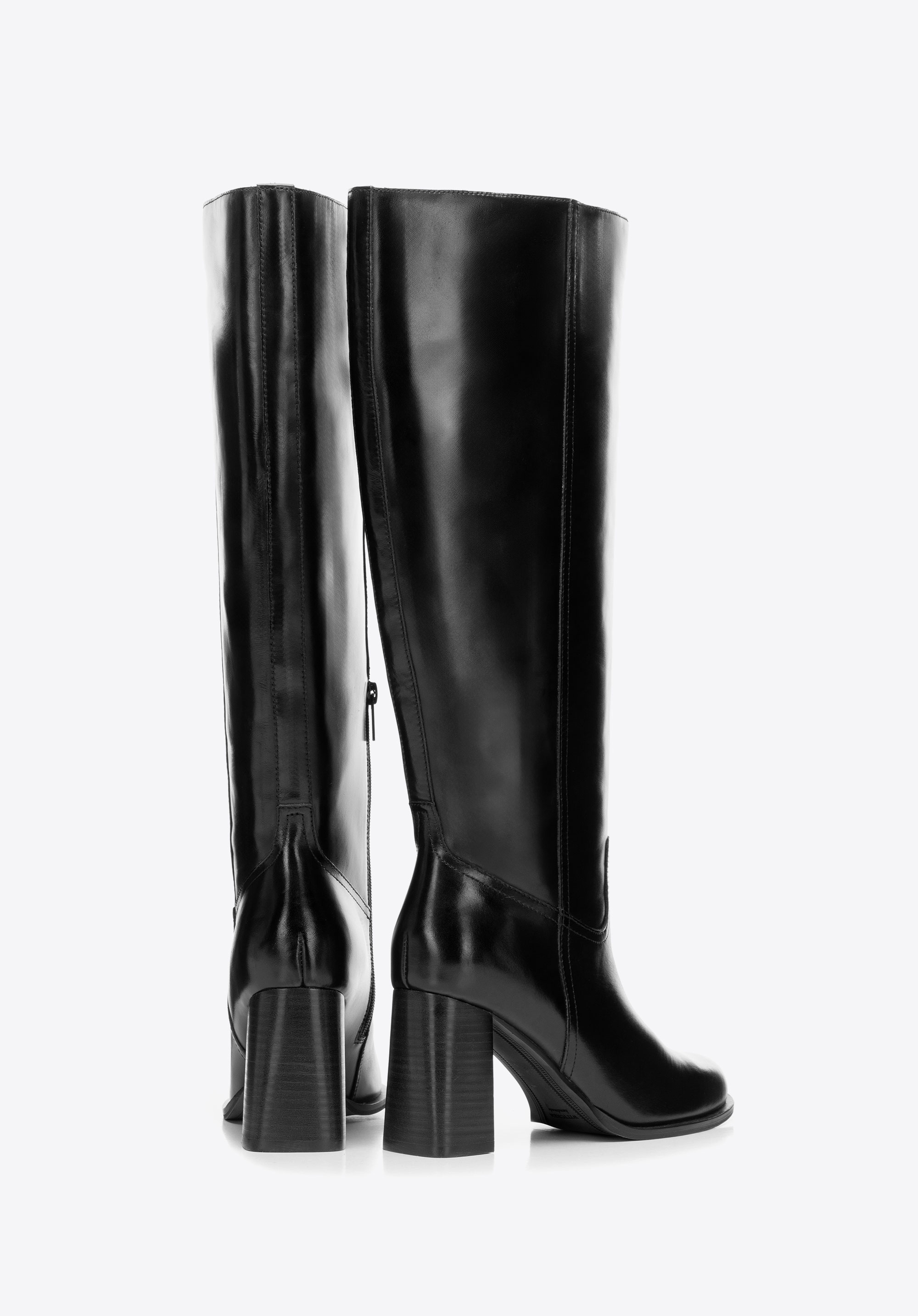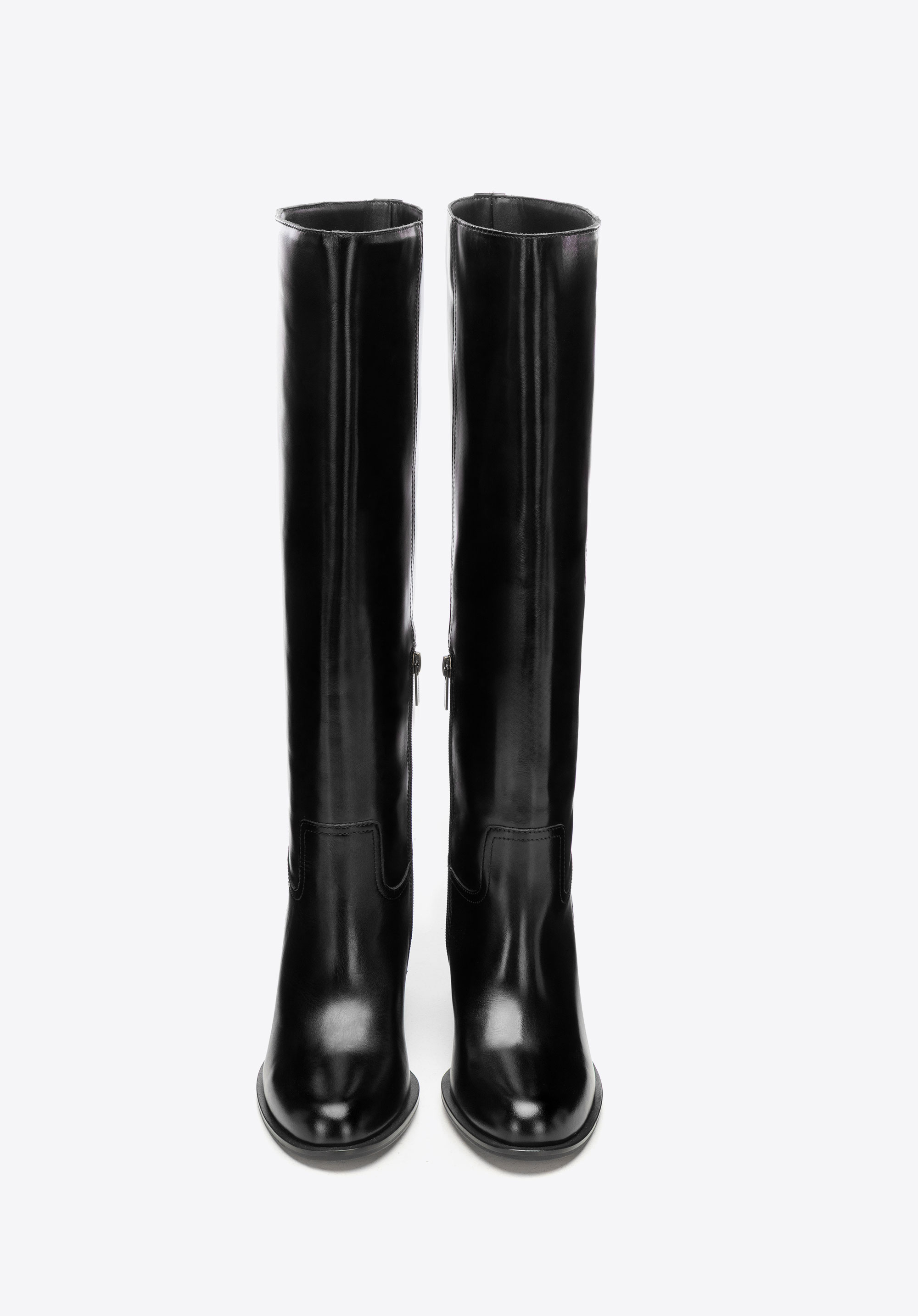 Dámske kožené čižmy na rovnom podpätku Farba: čierna