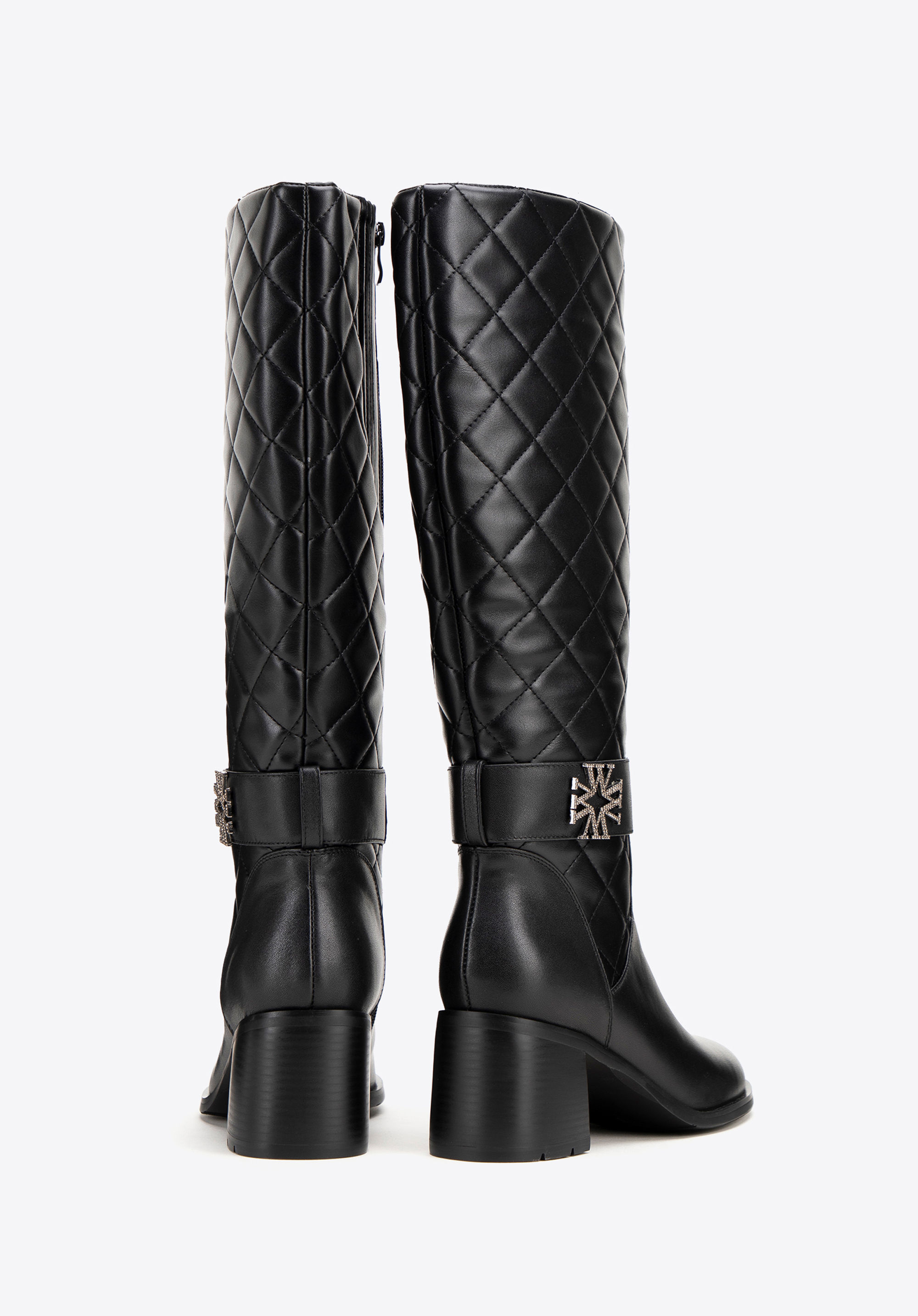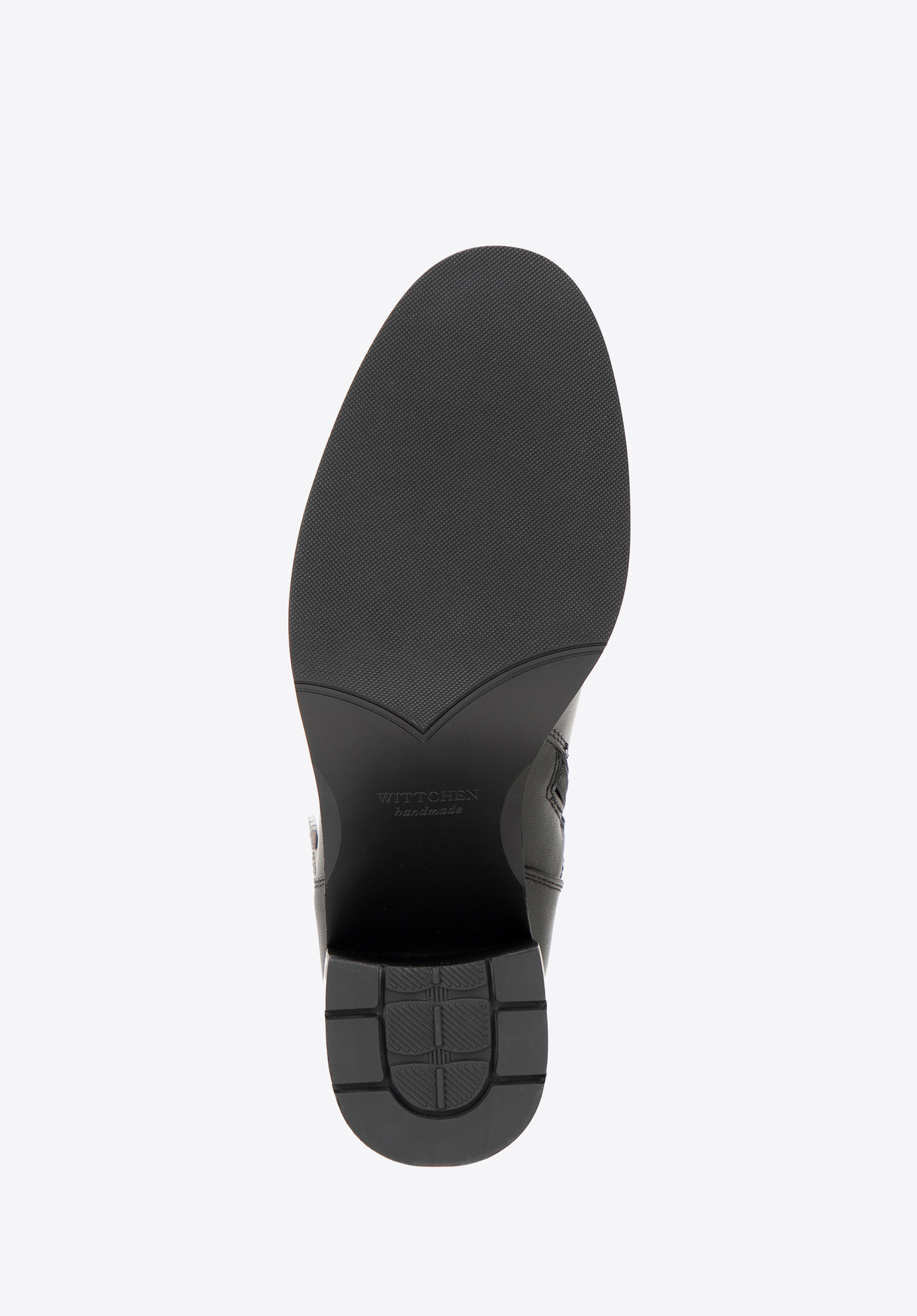 vysoko lesklý remienok s monogramom WITTCHEN na členku , mandľovú špičku a pohodlný blokový podpätok pre väčšiu výšku. S bočným