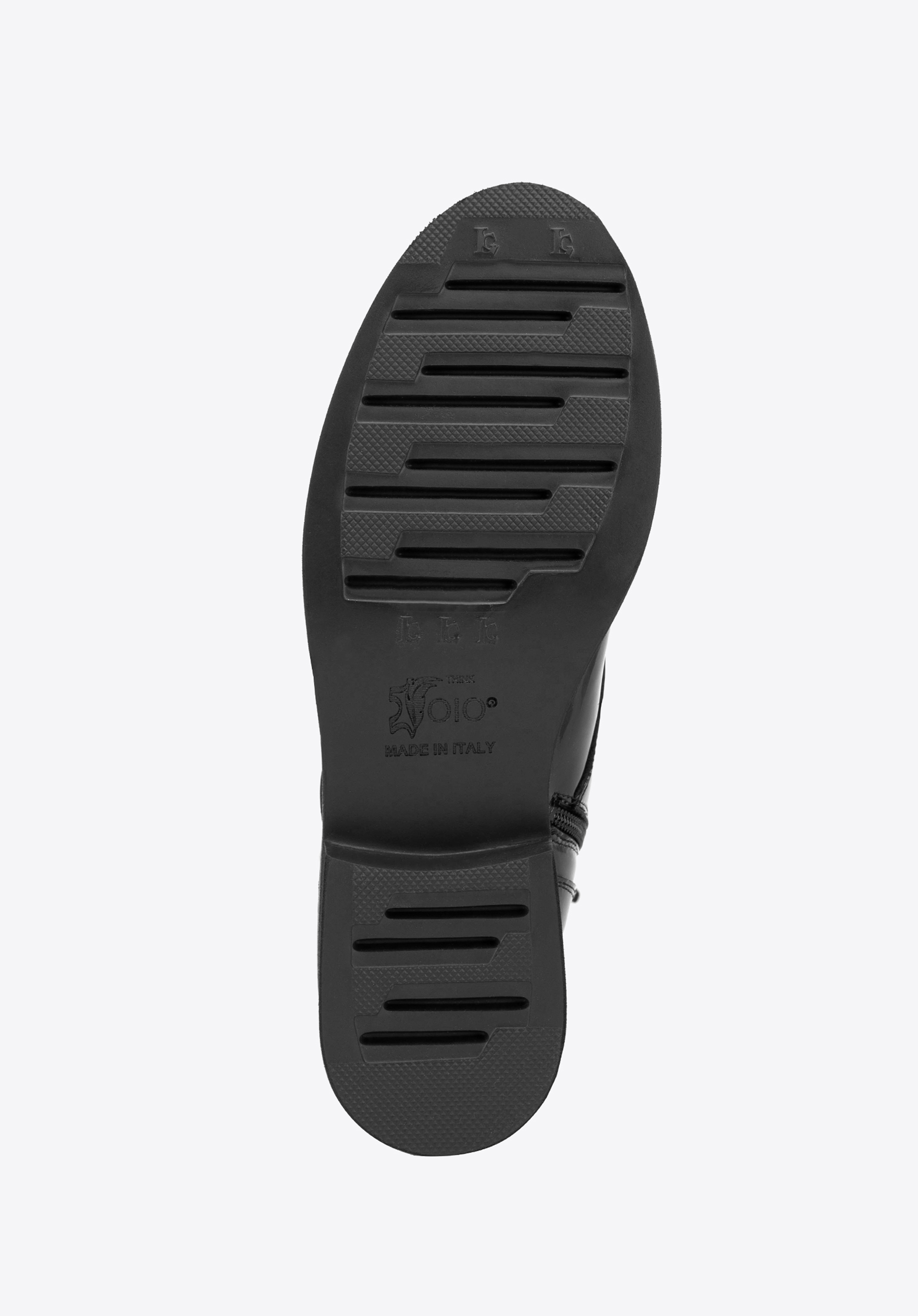- Zapínanie: Zips umiestnený na boku topánky uľahčuje vyzúvanie a rýchle obúvanie, čo je praktické najmä v rýchlom životnom zhone.
