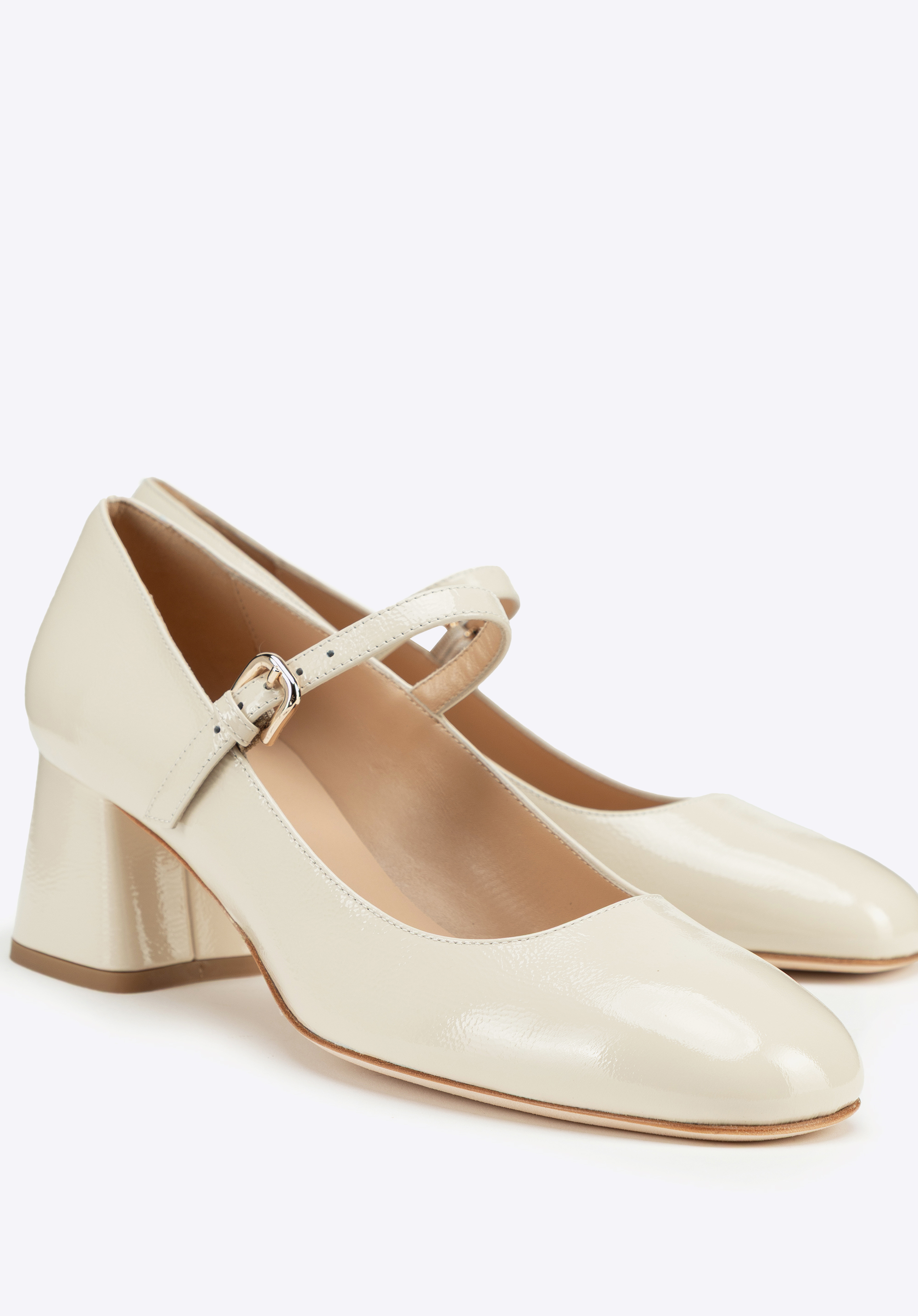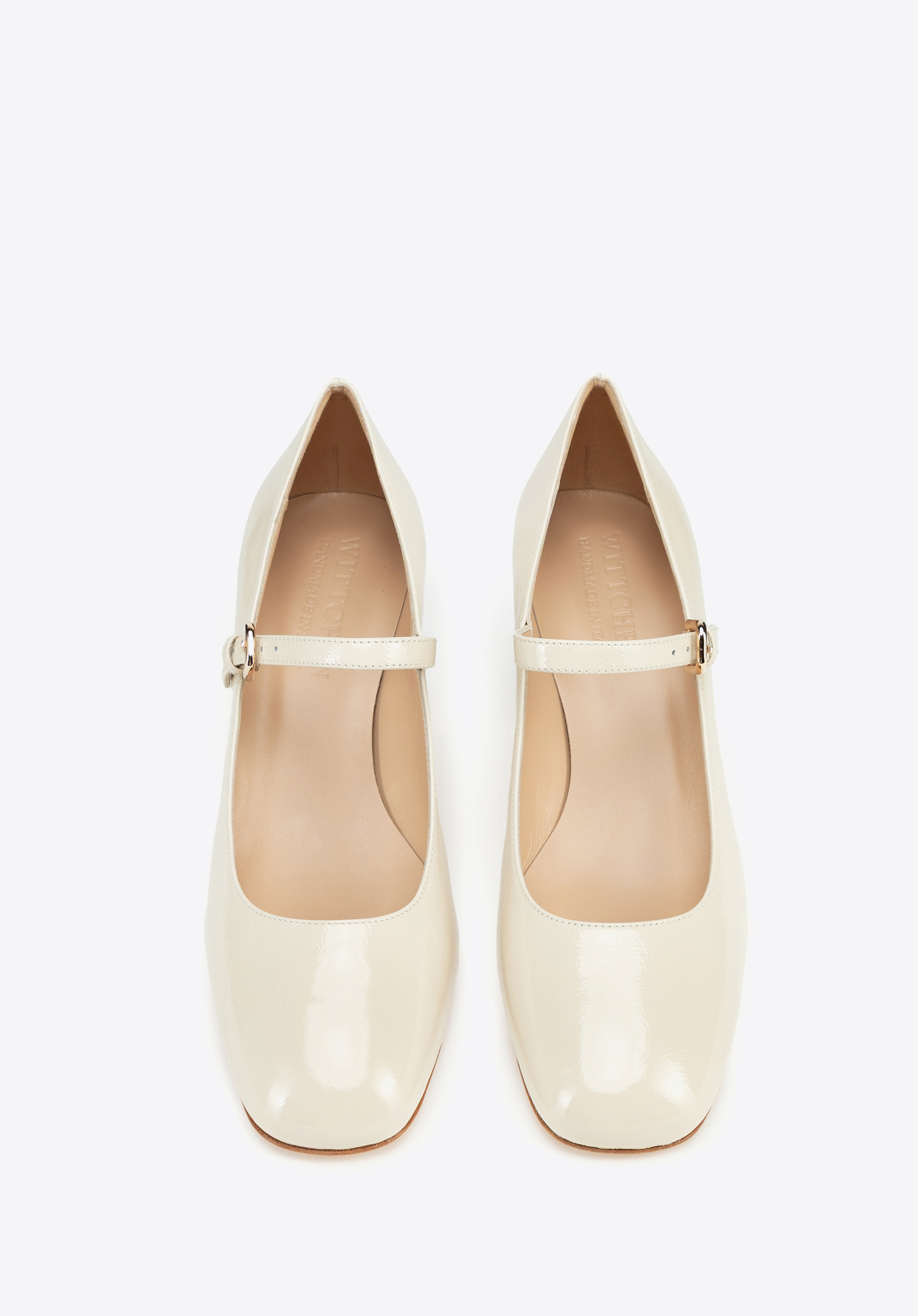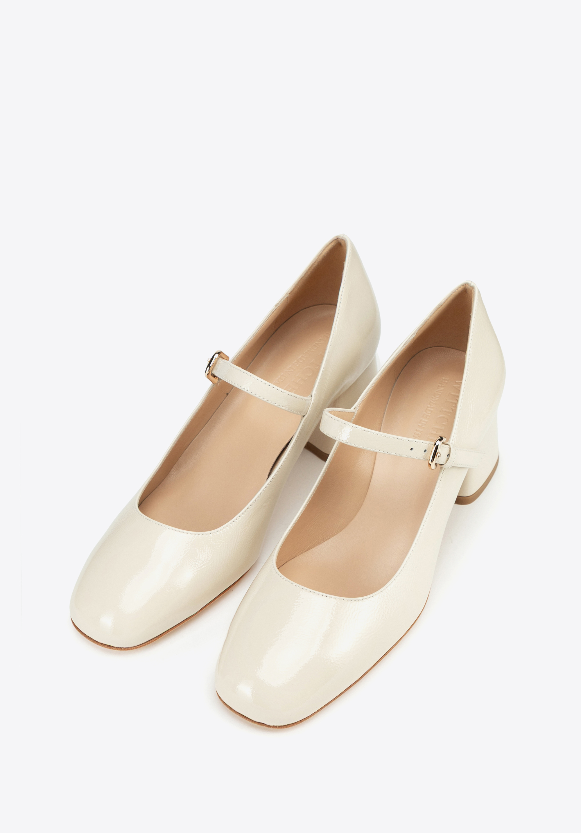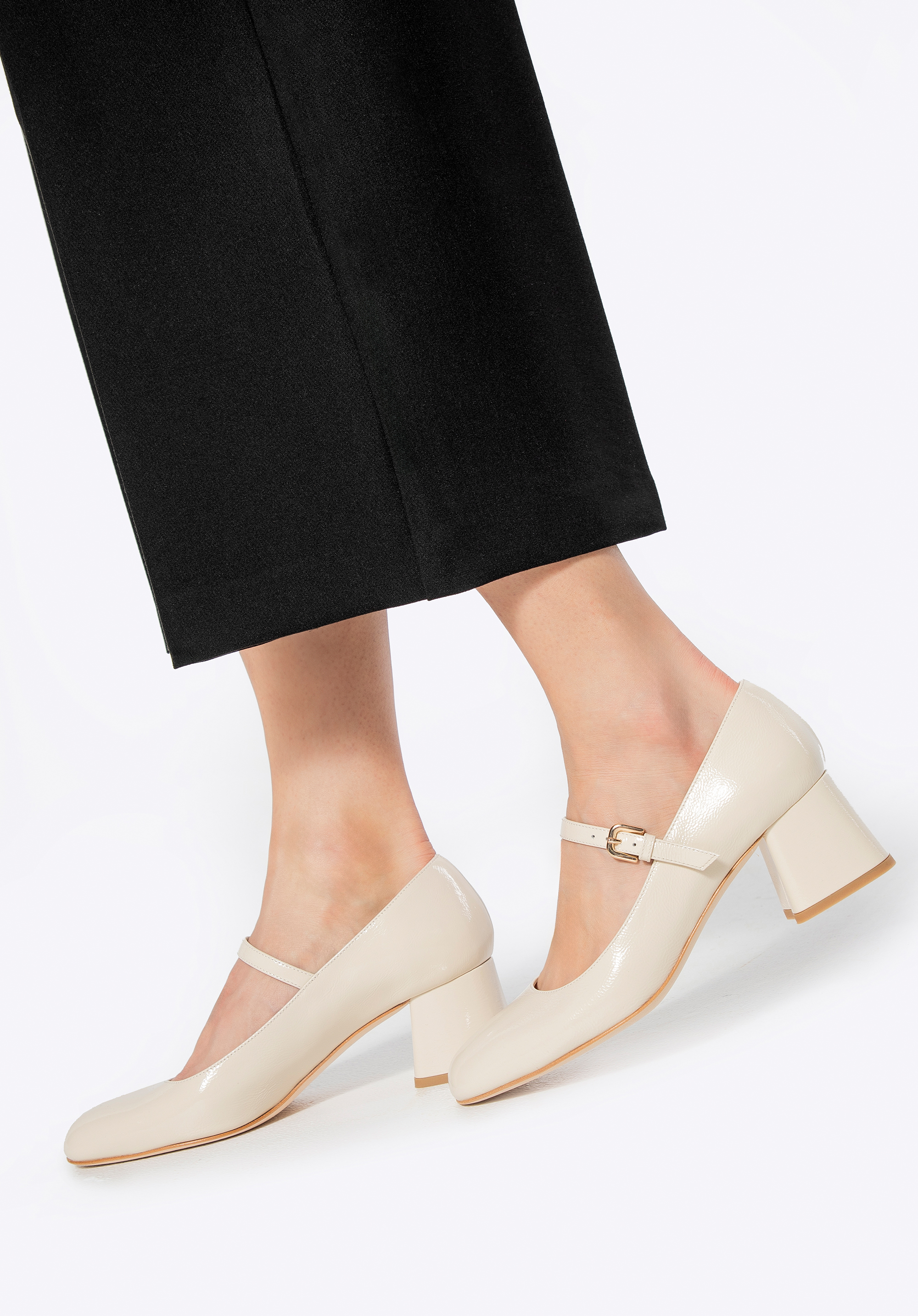 Dámske kožené kurty s remienkovým detailom Farba: krémová