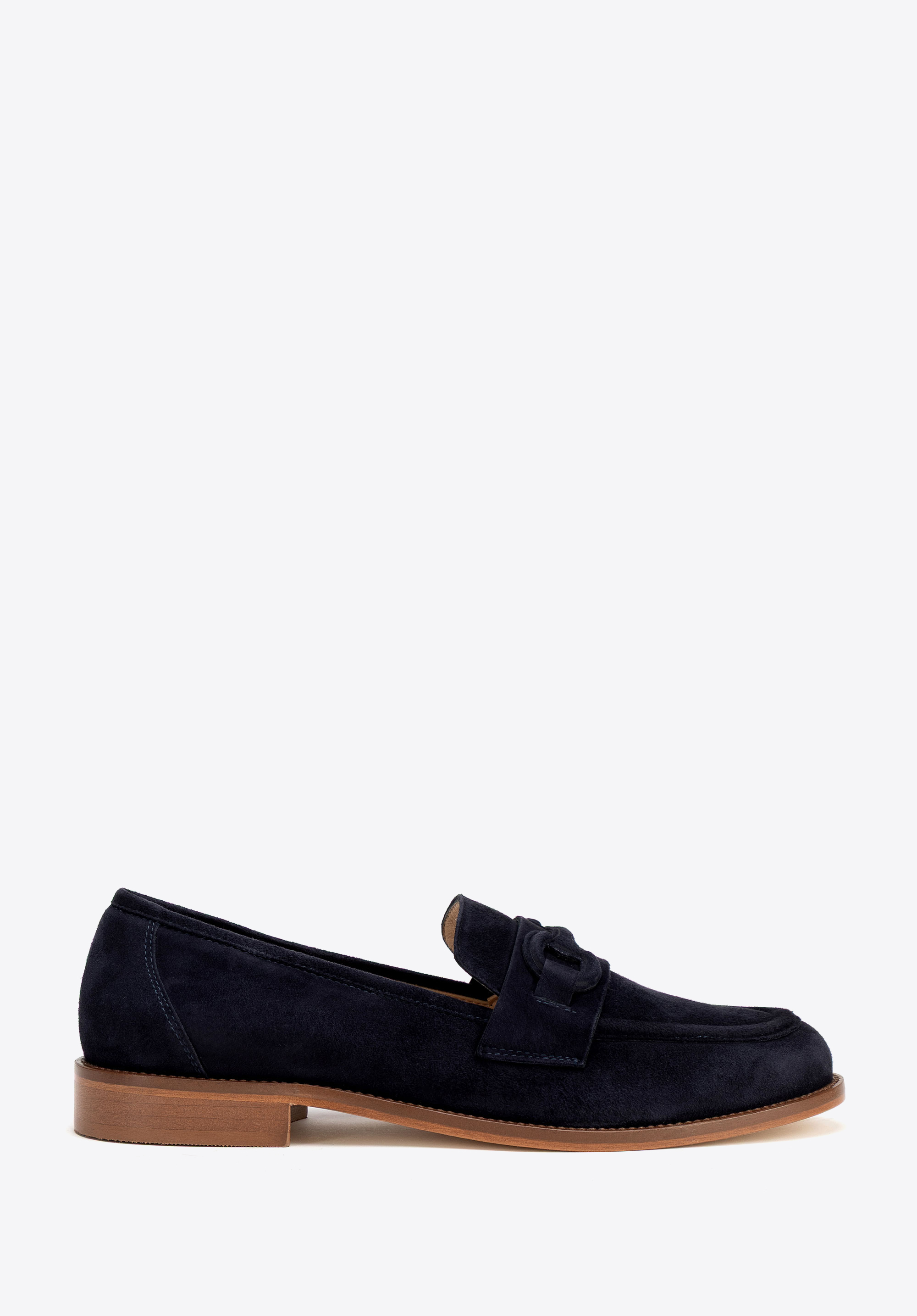 Dámske kožené mokasíny s decentnou prackou Farba: tmavomodrá